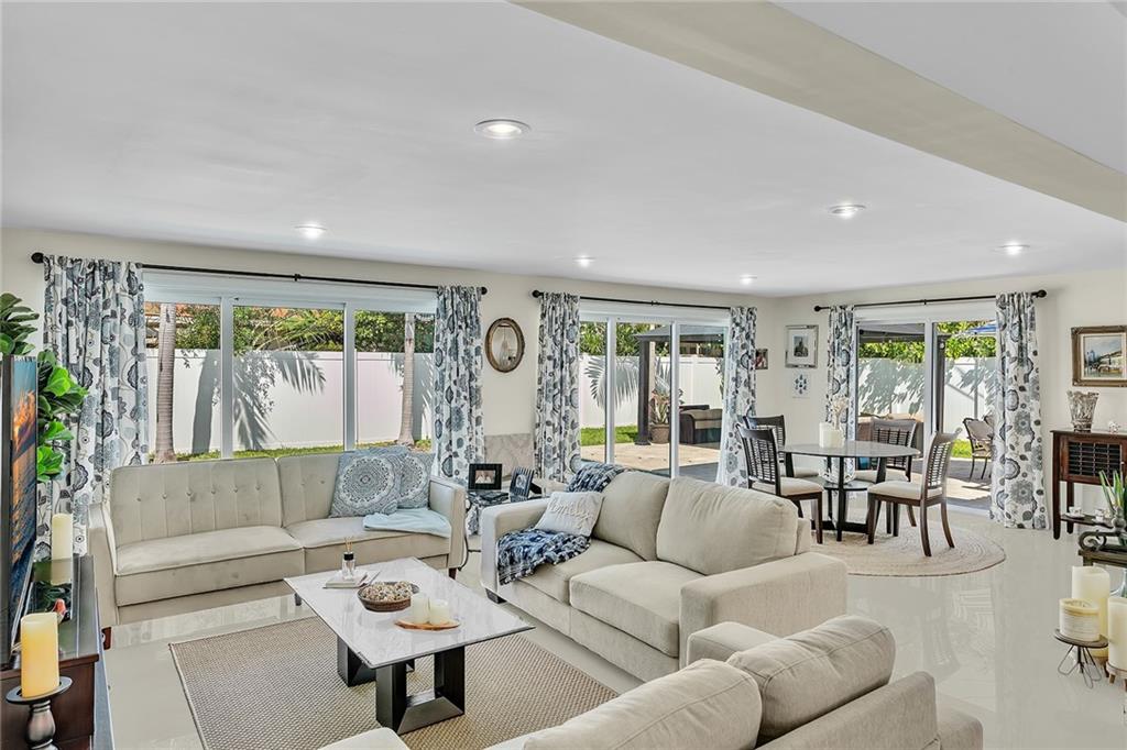 Completely and tastefully upgraded home on quiet corner lot. Beach House feel with some rare palms trees throughout. New Landscaping, brand new Sprinkler System. New Barrel Tile Roof, New Impact Windows & Doors, New heated salt water pool with cabana. Perfect for entertaining. Turkish Marble deck surrounded by white PVC Privacy fence. Complete privacy. New A/C (inside & out), new a/c ducts. New insulation system. New Electrical Panels (inside & out), New Gourmet Kitchen with Marble Countertops. New Baths, including a cabana bath. 24x24 Italian Porcelain Tiles throughout. Turkish Marble Circular Driveway. Formal Dining Room, Formal Living Room, and GIANT 16x42 Family Room with sliding glass doors gives this home a pleasant Indoor/Outdoor feel. Paradise.