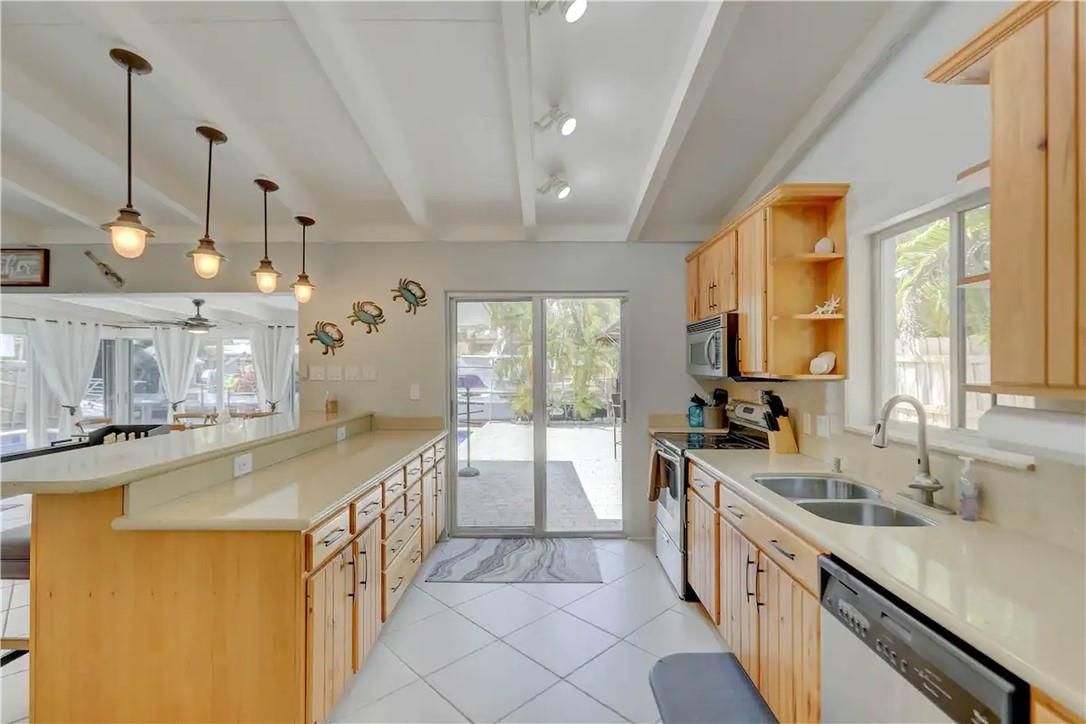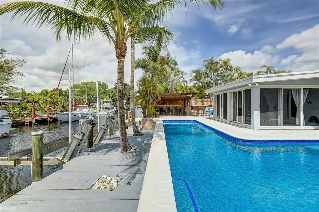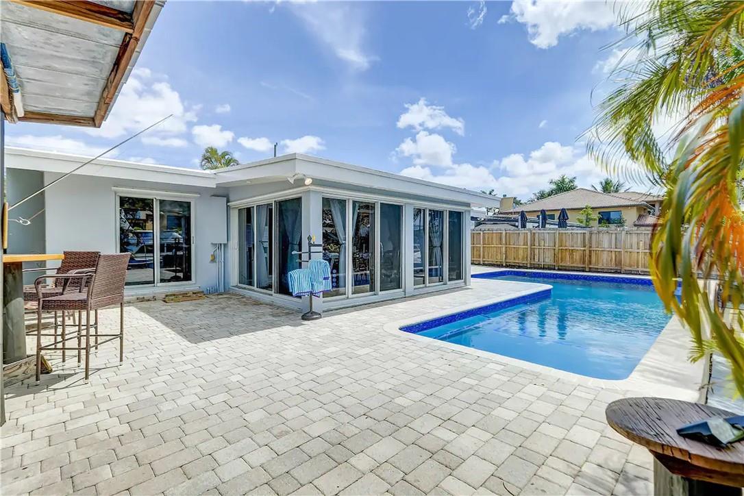 Stunning Lauderdale Isles Oasis-3B/2ba SF homew/65' dock & boat lift on ocean access canal with no fixed bridges and no HOA,renovated open concept,perfect for entertaining inside & out. Oversized resurfaced salt water pool with updated tile,LED lighthing,built-in seating & sunshelf. Paver patio w/ outdoor shower & Tiki Bar w/sink,ice machine & fridge,storage shed & fenced yard w/ cabana bath,natural light, plantation shutters & high ceilings provides spacious feel. Kitchen has granite countertops, bar seating, 8' pantries w/ rollouts, stainless appliances, freezerless fridge & matching upright freezer. Great room & sunroom overlook water. New roof (2022), new pool pump & new pool heater. Move in ready OR vacation rental. Near Airport, Las Olas & Hard Rock. Furnishings negotiable.