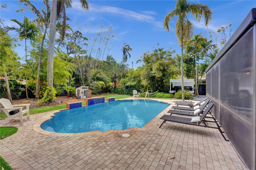 Outstanding property, perfectly positioned on a corner DOUBLE LOT of 13,000sq ft in the desirable neighborhood of Victoria Park. this home is moving in ready, approved for vacation rentals, with lots of sunshine. Edgy kitchen has european-style cabinetry, quartz countertop & stainless steel appliance package. Guest bathroom is newly renovated and the master suite has custom closets with upgraded bathroom. Third bedroom can be converted in a den, with fireplace and access to the yard, with a beautiful pool & pool deck, pudding green for golf lovers, new metal roof, one car garage. If you're in the construction business this lot gives the opportunity to built two houses. Possibilities are endless!