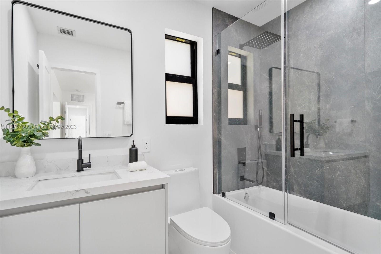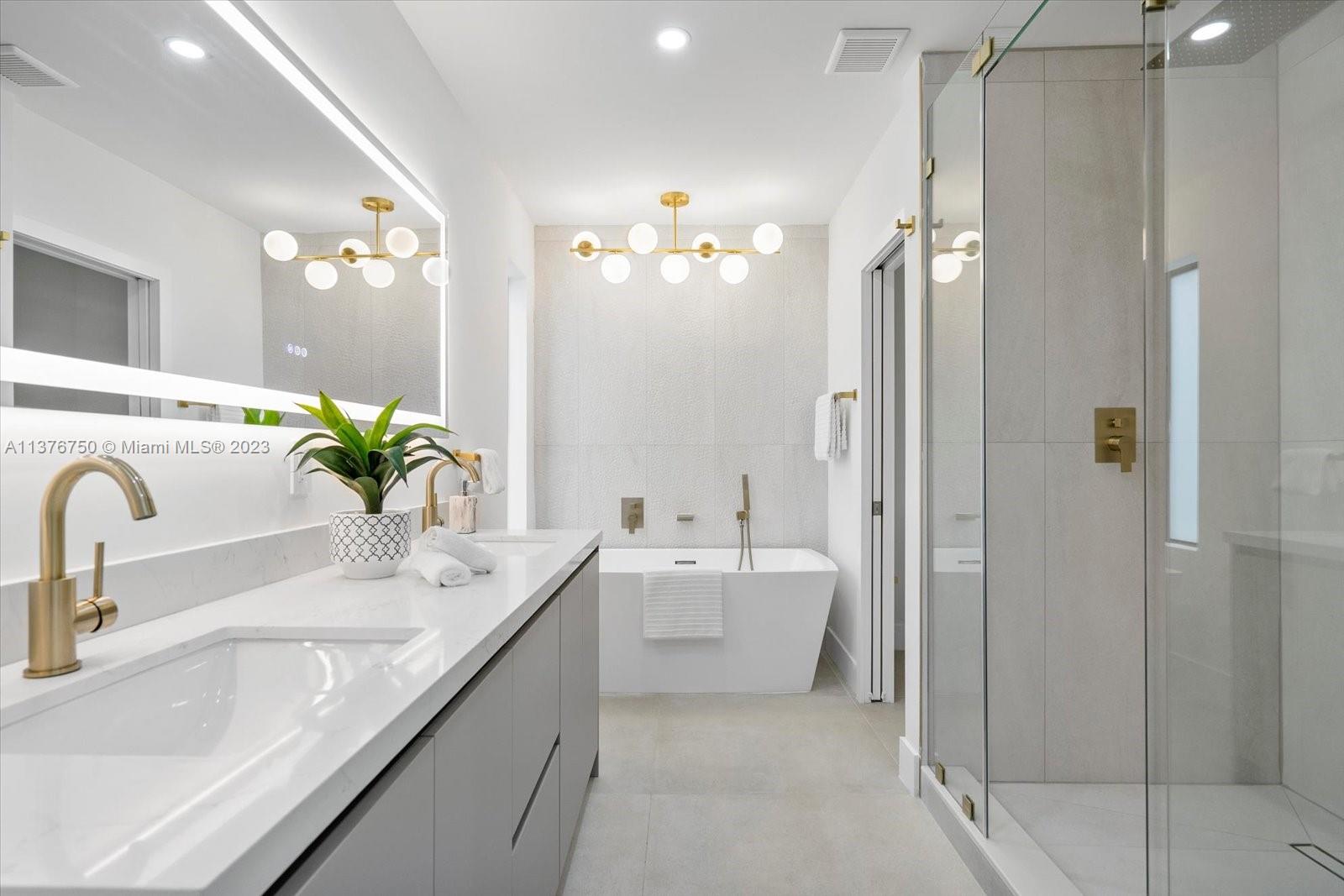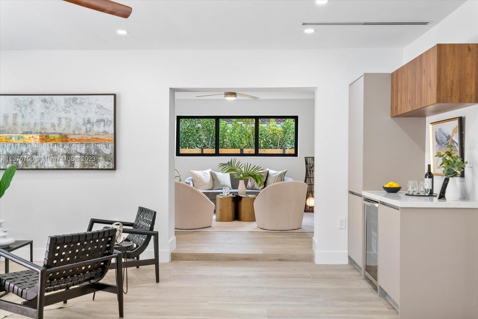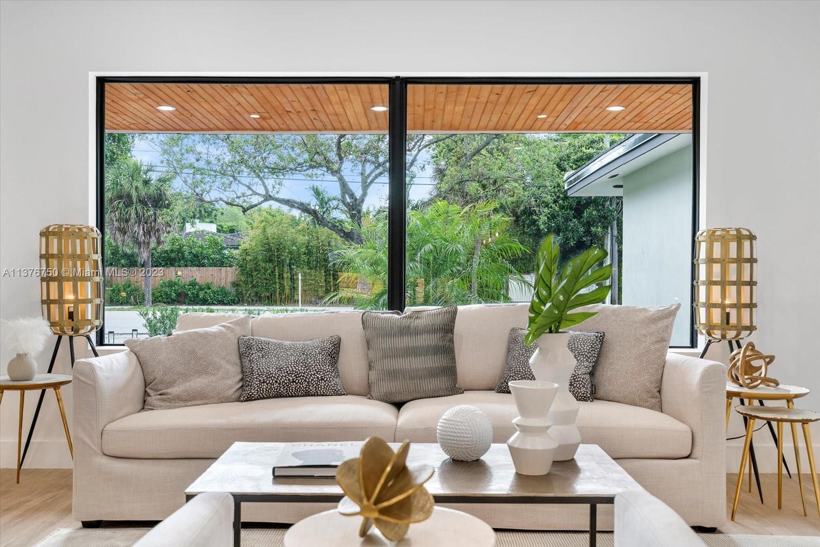 Welcome to this stunning contemporary masterpiece located in the desirable Miami Shores neighborhood. This modern retreat features exceptional design, clean lines & luxurious accommodations. Step inside & be greeted by a sprawling open floor plan offering spacious living areas, gourmet kitchen w/quartz counter tops, custom cabinetry, top-of-the-line appliances & a wet bar. Spacious master suite w/walk in closet. Luxurious master bath w/rain shower & bathtub. Lush & inviting outdoor space w/ room for a pool. Impact windows & doors. Everything is brand new, roof plumbing, HVAC, and electricity. House was completely gutted. Designed in mind for most discerning buyers.