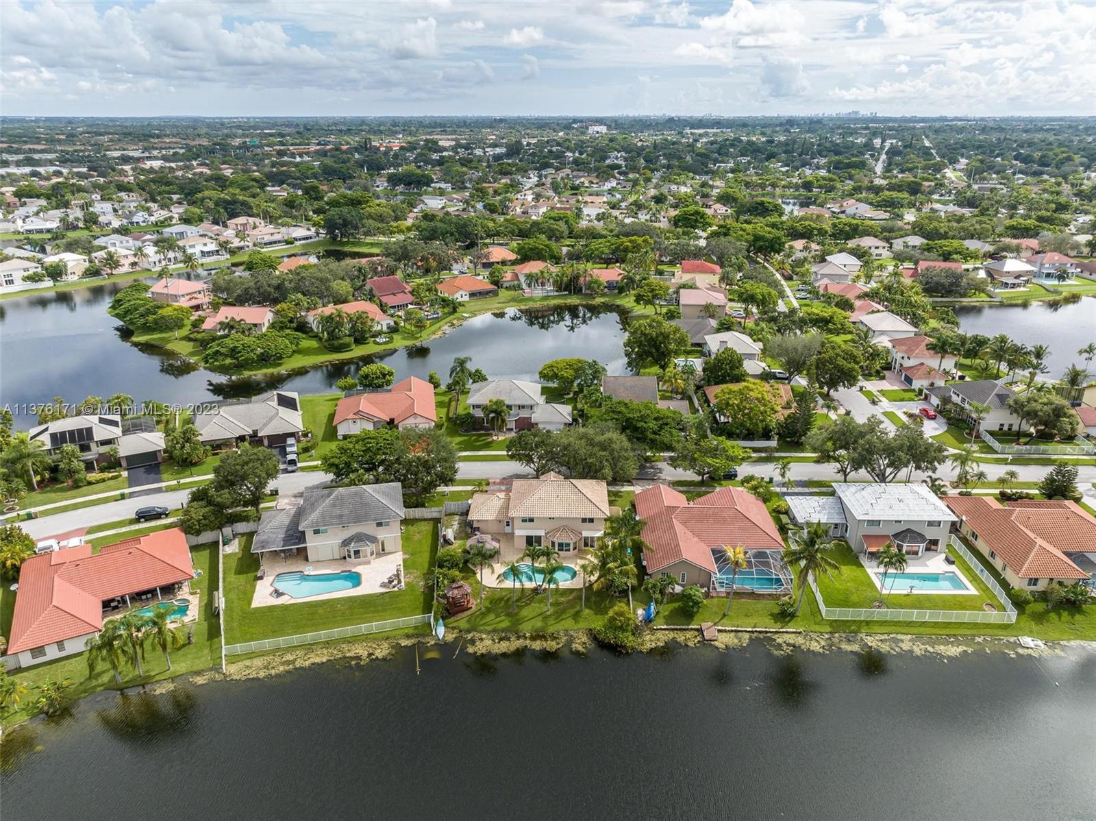 One of the prettiest views in Shenandoah! Enjoy breathtaking sunset & tropical breezes from the wide lake. Canoe or fish from your own yard. Sparkling pool, big patio & built in BBQ to splash & entertain. Big side yard has room for your boat or garden. Step inside to this large Harrisburg model complete with 4 bedrooms, 2.5 baths. Kitchen has been upgraded with wood cabinets, granite & stainless package and opens to the substantial family room. Bedrooms are large. Handy interior laundry room. Home is light & bright from the many high grade impact windows & doors. Rated garage door & 2008 tile roof for deep insurance discounts. Walk to Shenandoah Park with play area & splash pad. Walking path along parkway. Friendly, established development close to highways, shopping & TERRIFIC schools.