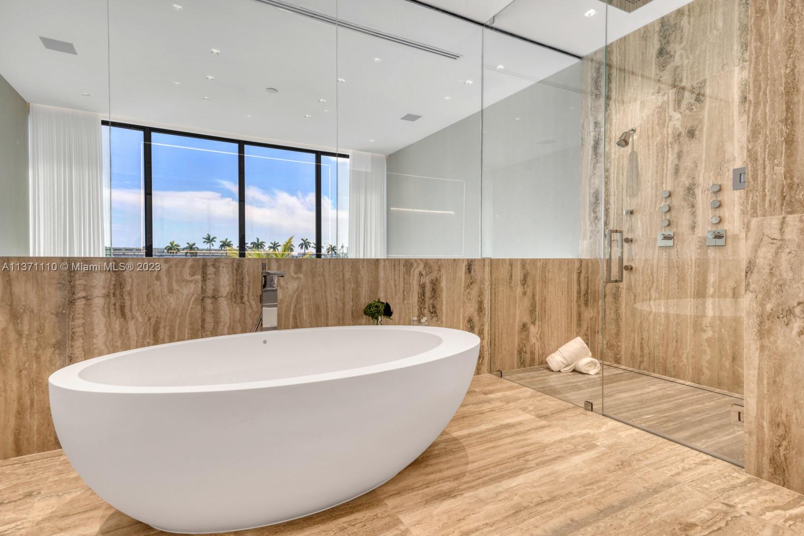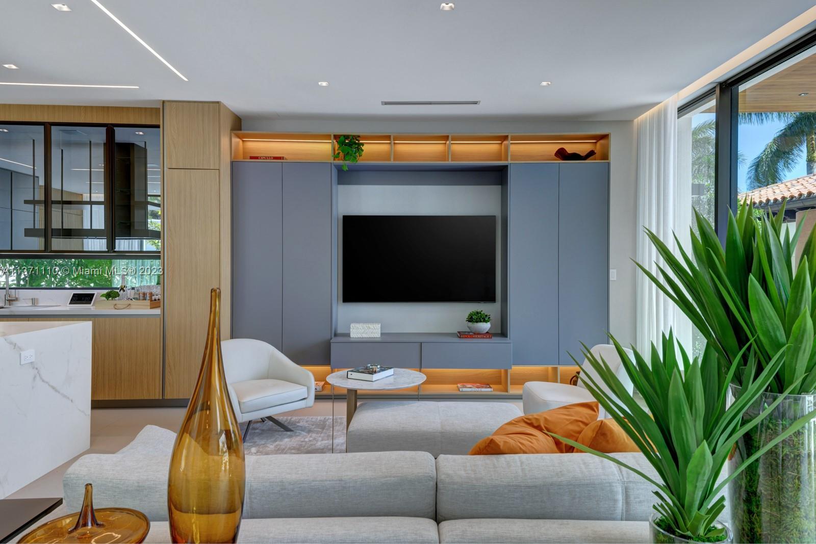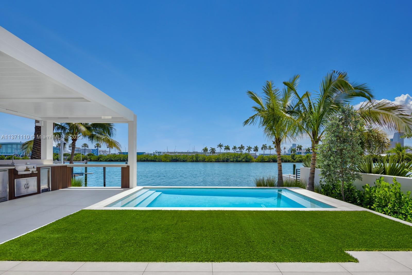 Recently completed and perfectly set on one of the most private waterfront lots in Palm Island, this modern gem is the epitome of Miami Beach living. Boasting 6 beds & 6/1 baths perfectly spread over almost 5,000 SF of living area. Features include glass elevator, floating staircase & ample natural light throughout. The chef’s kitchen is an epicurean delight w top-of-the-line appliances, gas stove & breathtaking water views. Entertaining areas abound indoors or out, by the pool/outdoor kitchen or on the rooftop terrace enjoying spectacular skyline views. With 24-hour police security & steps away from the park, community basketball & tennis courts, this masterpiece provides the utmost in location & privacy while being only minutes from S Beach, Downtown & Miami International Airport.