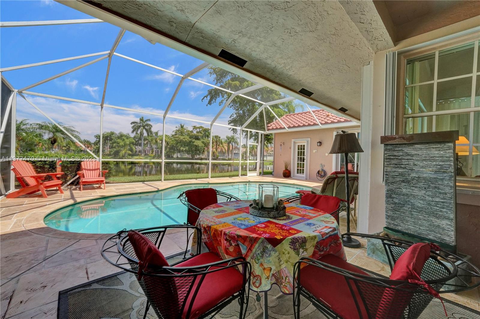 Situated in the small and quaint enclave of Laguna Springs II, this home's character exudes elegance and comfort. Popular Estancia model offering a comfortable layout & room to spare, features a bright interior, high ceilings, plenty of windows and sliding doors. Lower level primary suite with ample closet space and elegant ensuite bathroom with a view. Formal dining w/access to courtyard. Charming kitchen with stone counters and plenty of storage, flexible living/work space and laundry room. Meticulously kept, key updates including cosmetic, functional and structural components. Direct views of waterfront from the screened lanai & free form heated pool. Addl features incl accordion shutters and new breaker panel. Unbeatable location, within close proximity to schools, parks and shopping.