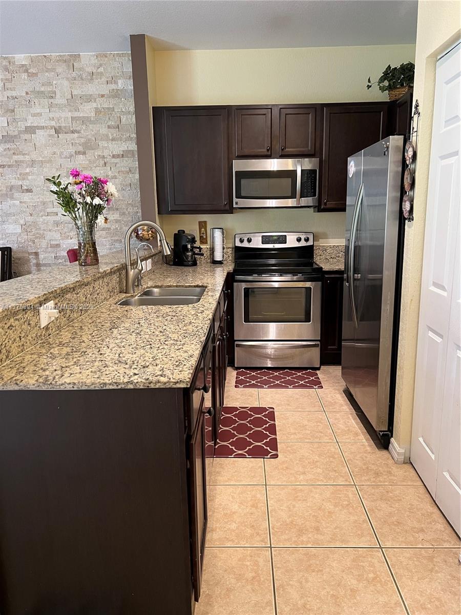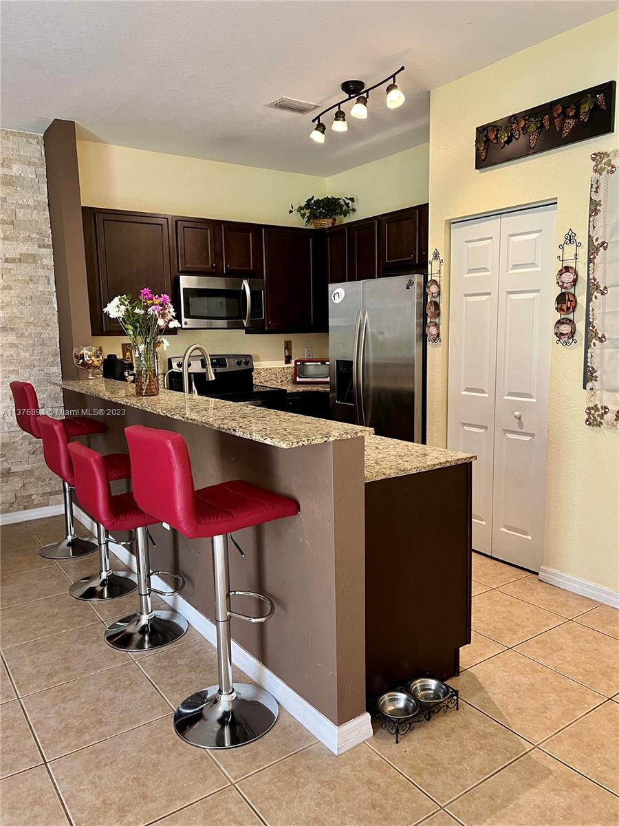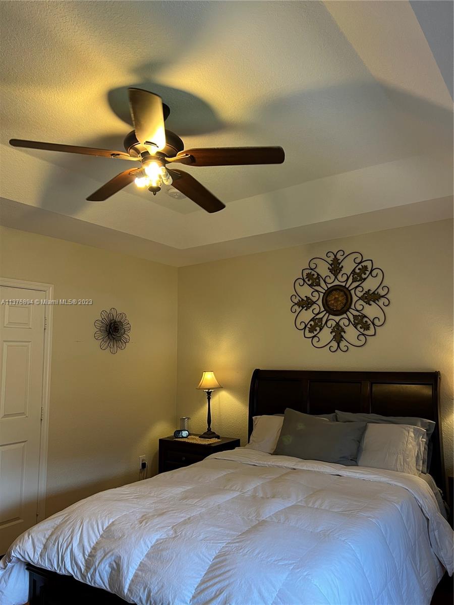 Make this beautiful gated community in Miramar your home. Drive through the manicured property to your 3/2 and half bathroom townhouse. This two-story townhouse is tiled throughout the first floor, with high ceilings and fans which open up to a spacious and flexible floor plan. The kitchen is has top of the line Kenmore, stainless steel appliances and solid wood cabinetry. There is plenty of storage space downstairs, as it has a pantry and two extra closets. Also, there is a half bath downstairs for your guests. The wood laminate stairs which are throughout the second floor, lead you to an office space, 2 bedrooms, a bathroom and the master room and master bath. The washer and dryer are upstairs as well. The large master bedroom has a tray ceiling and views to the courtyard. Hurry!!!