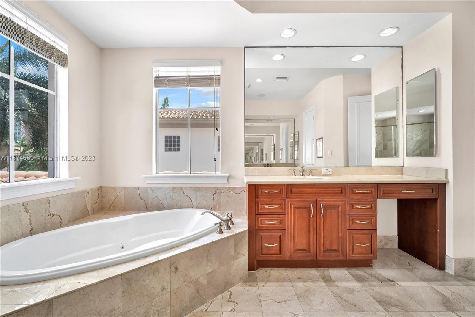 A BIT OF WONDERLAND! Experience luxury living in Harbor Islands w/ this stunning 6 bed, 5 bath home. Boasting 5,224 SQFT of living space w/ lots of natural light and situated on a spacious 8,310 SQFT lot. This 2-story home features a beautiful 24 x 24 diagonal marble floors, a chef’s kitchen w/ modern finishes, breakfast area, formal dining, living room, game/family room, 2 car garage, volume ceilings, recess lights, and IMPACT WINDOWS/DOORS. The master bed is very spacious, w/ 2 walk-in closets, dual sink, jacuzzi and shower. On the 2nd floor every room has its own bath as well. The pool area is fantastic w/ a covered patio, perfect for entertaining. Harbor Islands offers tennis, basket, pickle ball courts, gym, club house, and 24 hr security. A TRUE TESTAMENT TO YOUR ACHIEVEMENTS.