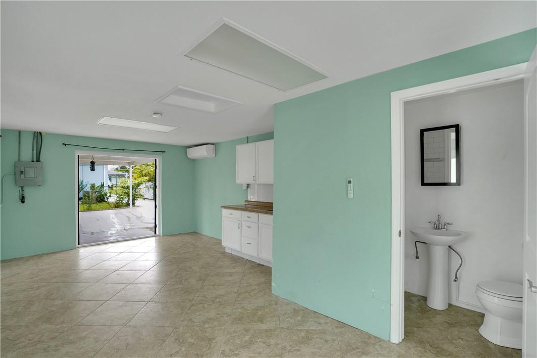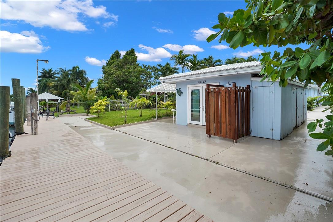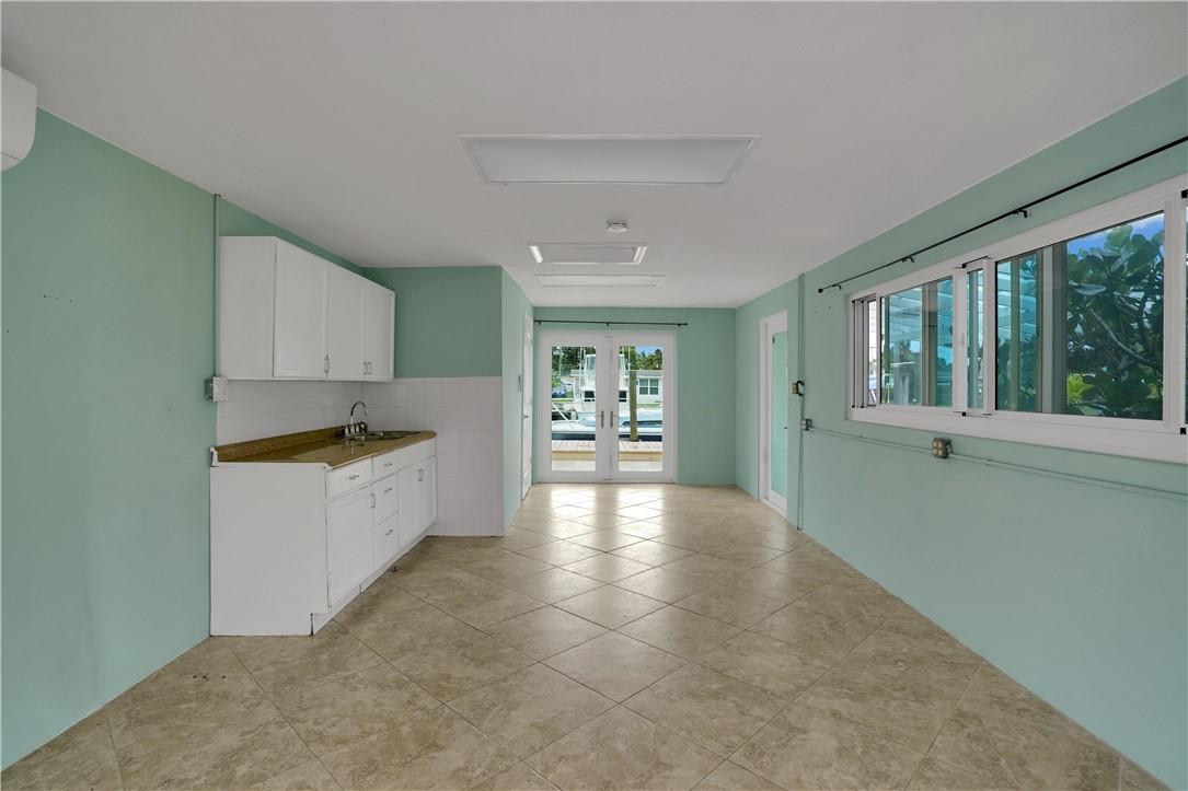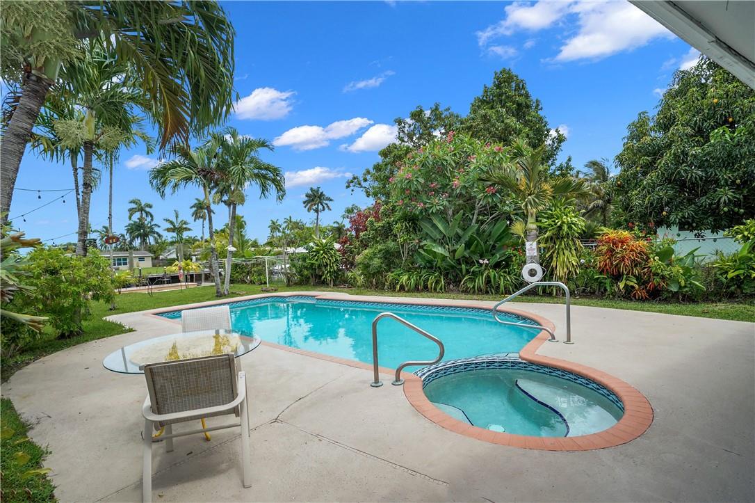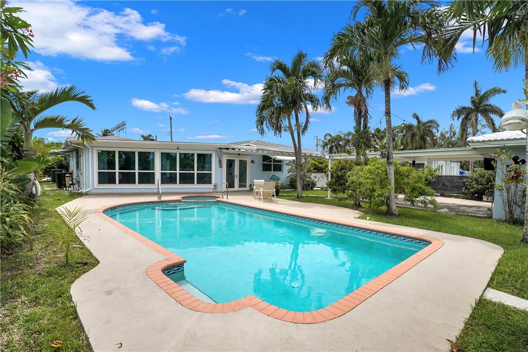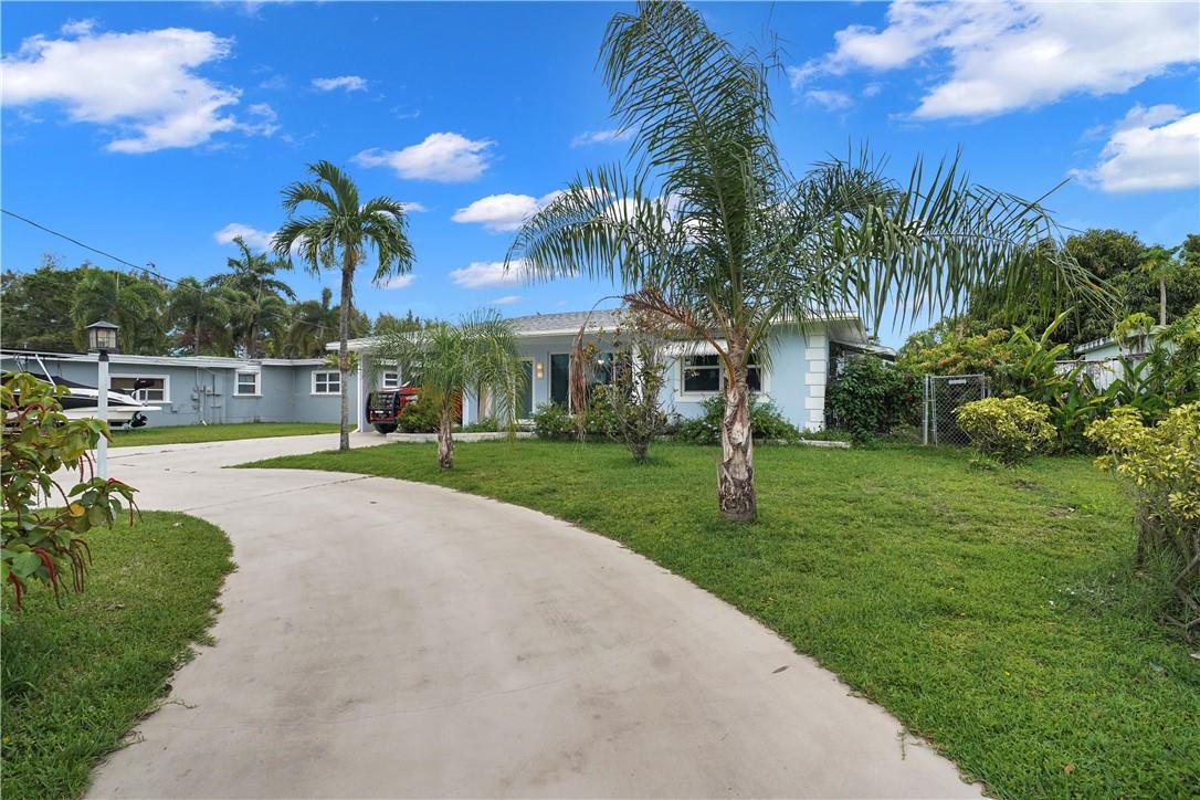 This lovely waterfront, pool home has 3-bedrooms/2 baths with circular drive and an open floor plan. Desirable Terrazzo floors compliment most of the house. There is a private master suite with 2 additional bedrooms. Active AirBnB permit for the 1-bedroom guest cottage. Covered patios for indoor/outdoor living. Heated pool with underwater pool light with multiple settings, a built in hot tub with aqua link pool automation on phone app is new in 2022. Blink camera system w remote monitoring. Sound proofing,insulation, impact windows & doors throughout in 2016. New 5 ton AC and AH ducting in 2016. New electrical permitted including mast, panel & power cable into property 2017. New washer w/warranty. New Roof in June 2023. By boat, 30 min to the ICW from new 80 ft dock one 20ft fixed bridge.