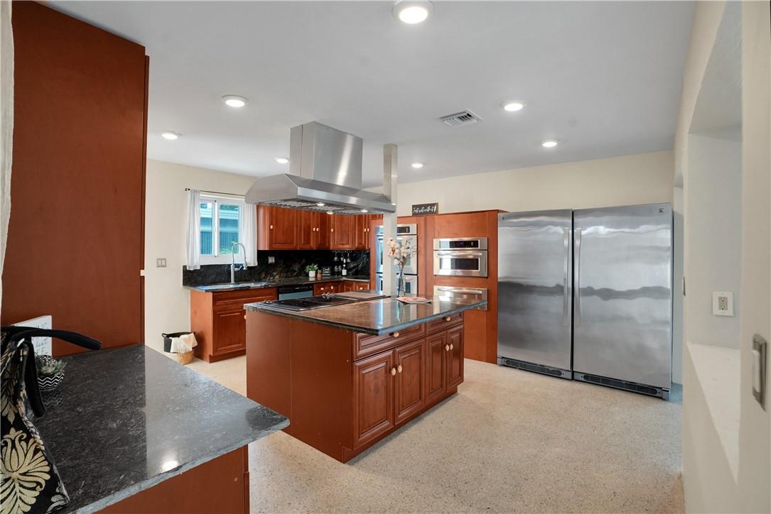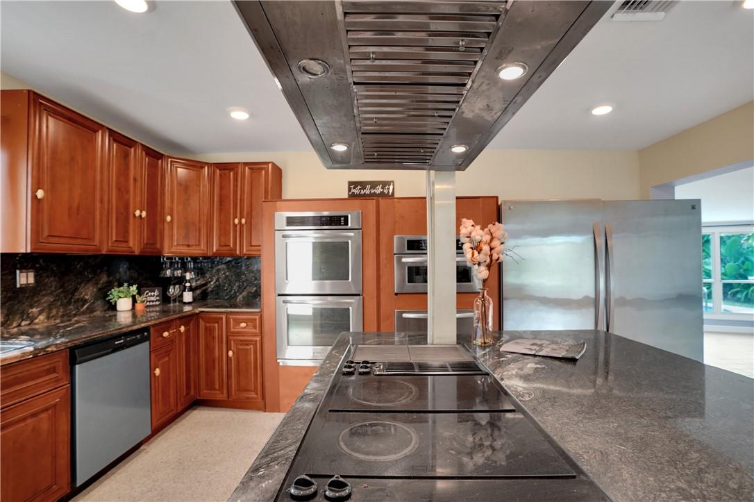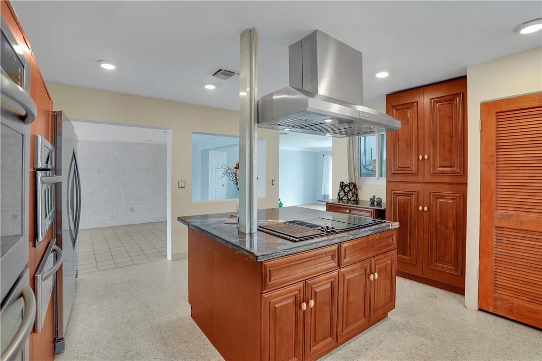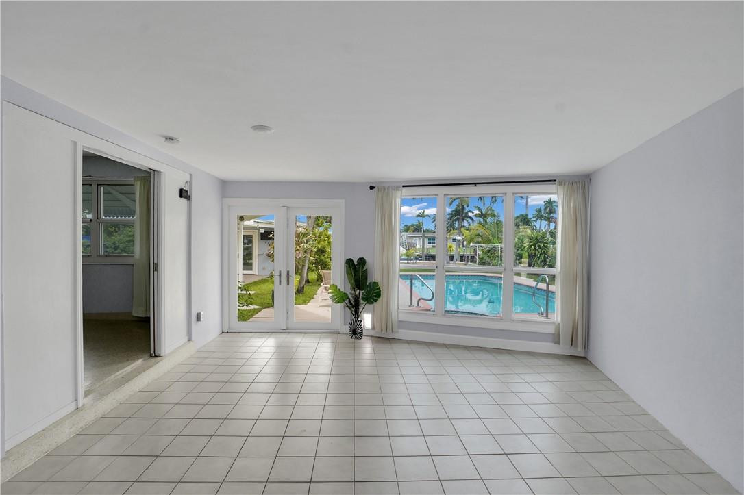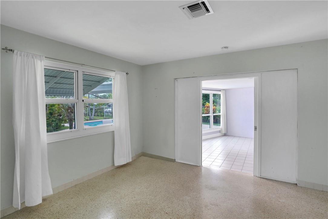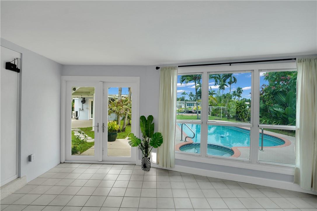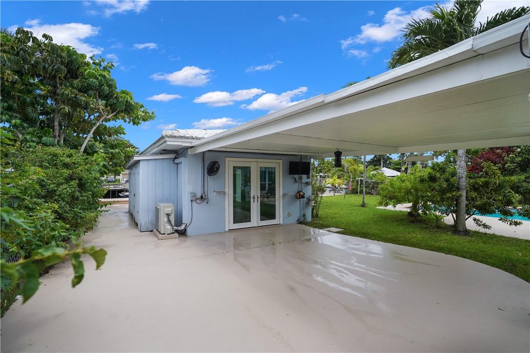 This lovely waterfront, pool home has 3-bedrooms/2 baths with circular drive and an open floor plan. Desirable Terrazzo floors compliment most of the house. There is a private master suite with 2 additional bedrooms. Active AirBnB permit for the 1-bedroom guest cottage. Covered patios for indoor/outdoor living. Heated pool with underwater pool light with multiple settings, a built in hot tub with aqua link pool automation on phone app is new in 2022. Blink camera system w remote monitoring. Sound proofing,insulation, impact windows & doors throughout in 2016. New 5 ton AC and AH ducting in 2016. New electrical permitted including mast, panel & power cable into property 2017. New washer w/warranty. New Roof in June 2023. By boat, 30 min to the ICW from new 80 ft dock one 20ft fixed bridge.