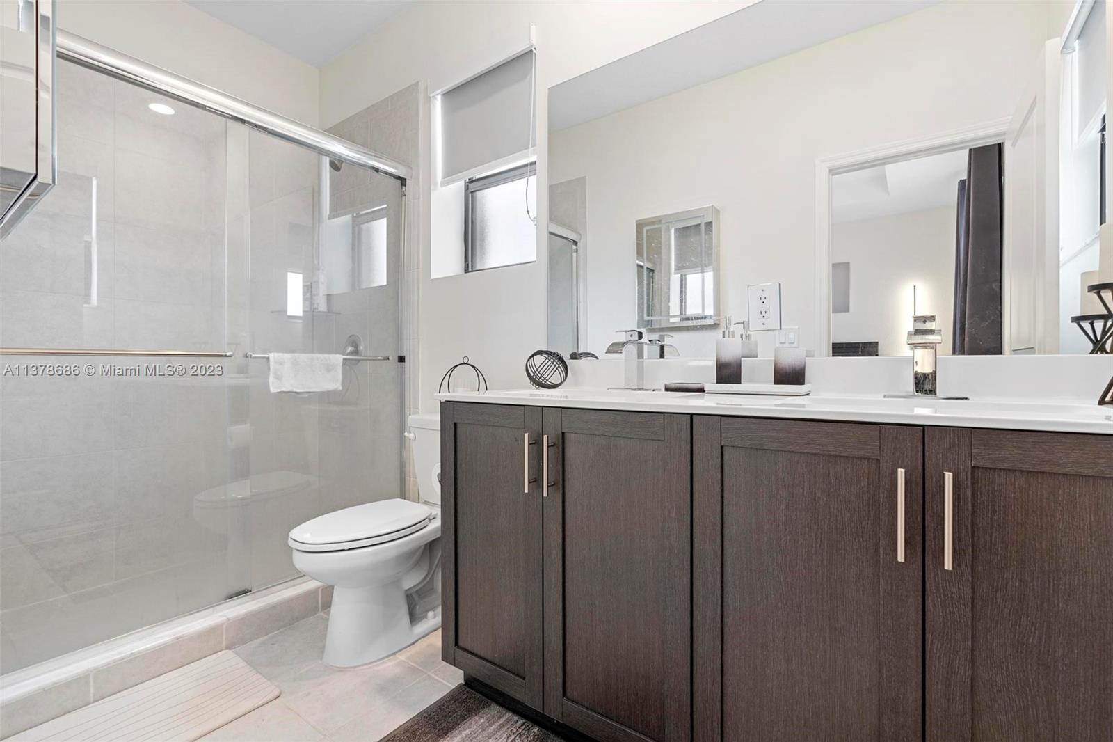 3 Bed, 3 Full bath townhouse in newly built community of Aquabella. This model features one full bed and bath on the first floor, and is completely tiled throughout. Premium location from the builder with extended lot, corner unit, and lake frontage. This home includes complete accordion shutters, zebra shades and elegant light fixtures installed. The patio features stone pavers and artificial turf, along with a gate to keep little ones and pets safe while enjoying the sunshine. This community has two clubhouses with huge pools, a large gym, on-site security and many other features- all in a wonderful location near several of Miami's major highways, shopping, dining and entertainment. Please feel encouraged to ask for more information! OPEN HOUSE 4/29 and 4/30!
