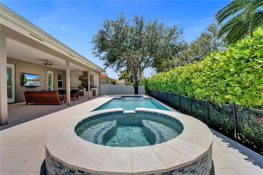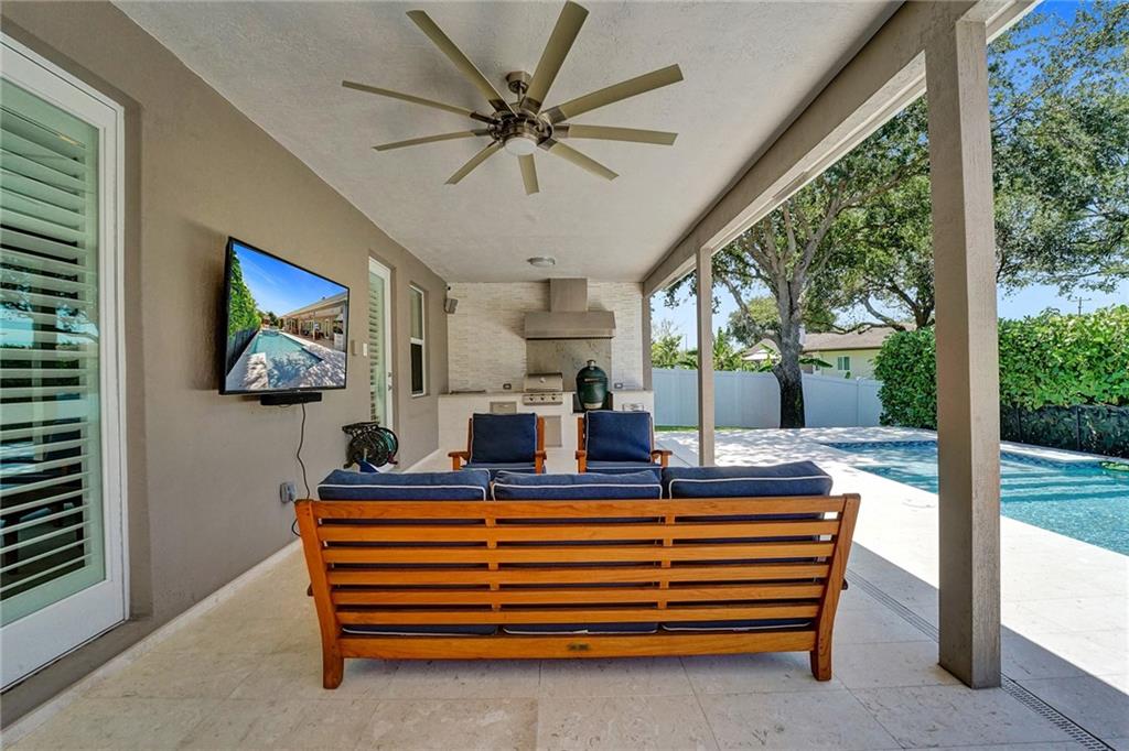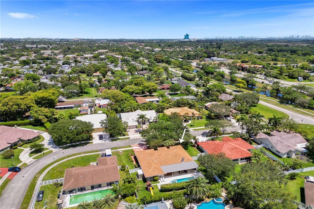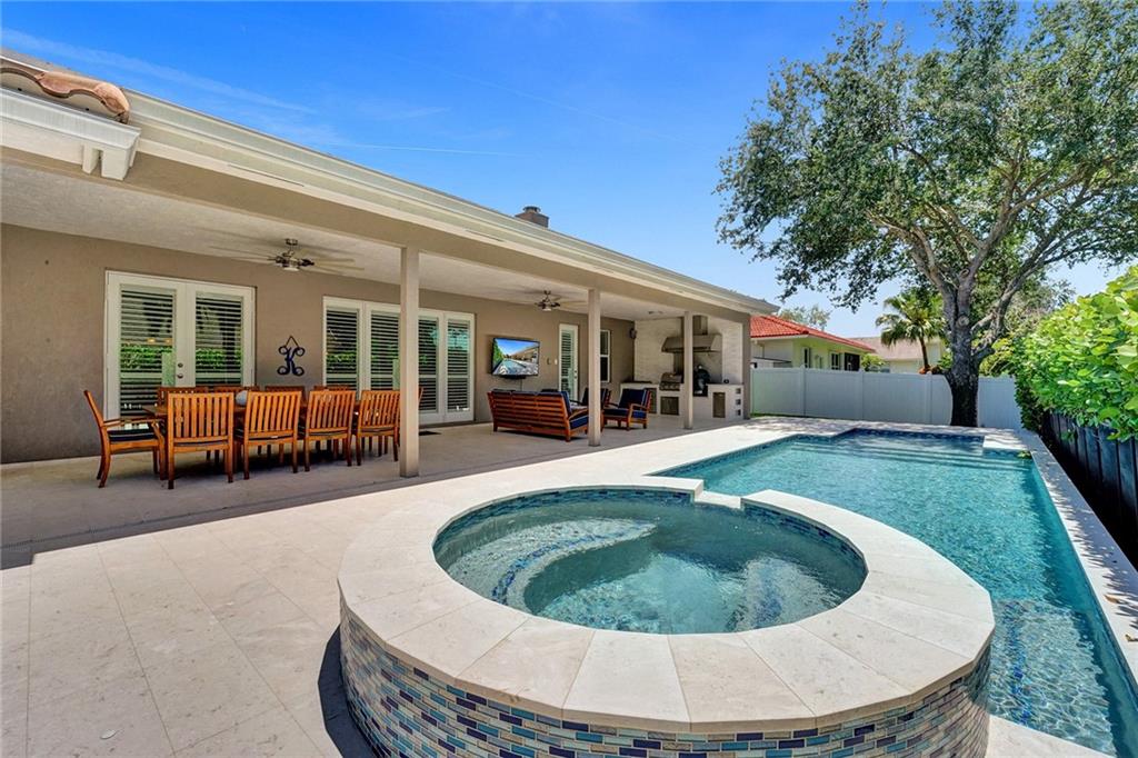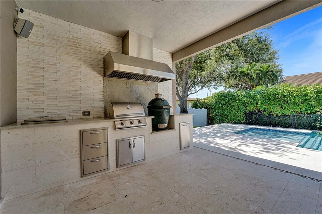 Come enjoy high-end finishes in this classic 4-bedroom, 3-bathroom one-story rancher in Davie Country Estates. Cross the threshold into an impressive entryway, plantation shutters throughout, and a gas fireplace in the living room. Fresh updates, two built-in ovens, and an attractive island layout make for an inspiring kitchen. The primary bedroom includes two walk-in closets and an ensuite bath. In this split floor plan, two bedrooms have large walk-in closets, and the fourth bedroom is currently an office. The piece de resistance is the backyard which boasts a heated pool with a hot tub, a beautiful outdoor kitchen with a built-in gas grill, and a charcoal egg. This home is a safe haven during storms with plumbed gas, impact windows, an impact garage door, and a new roof (2020).
