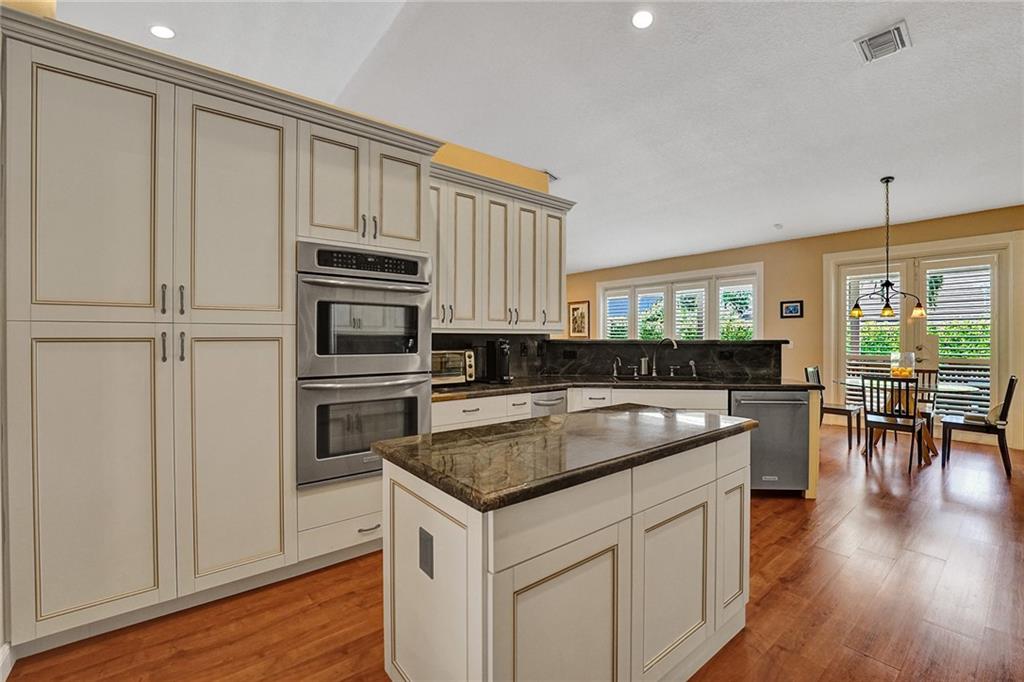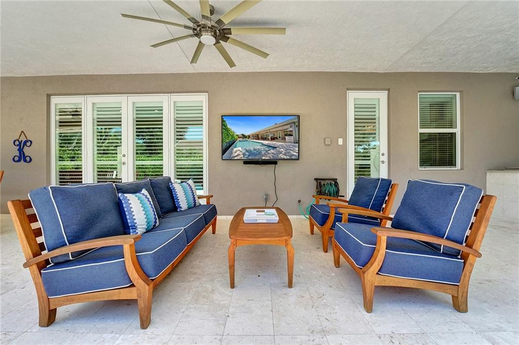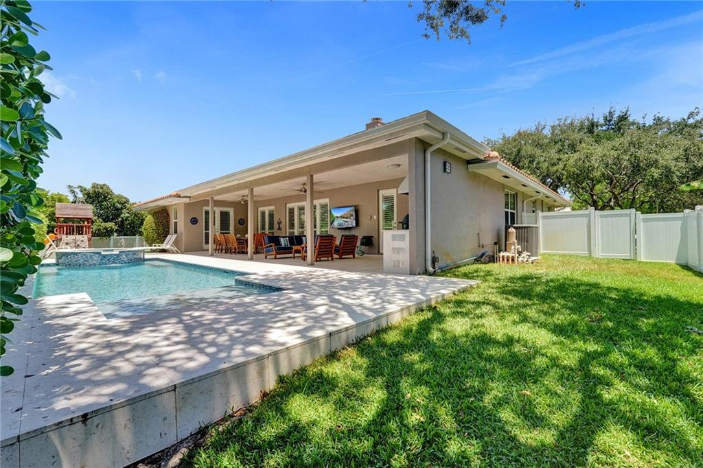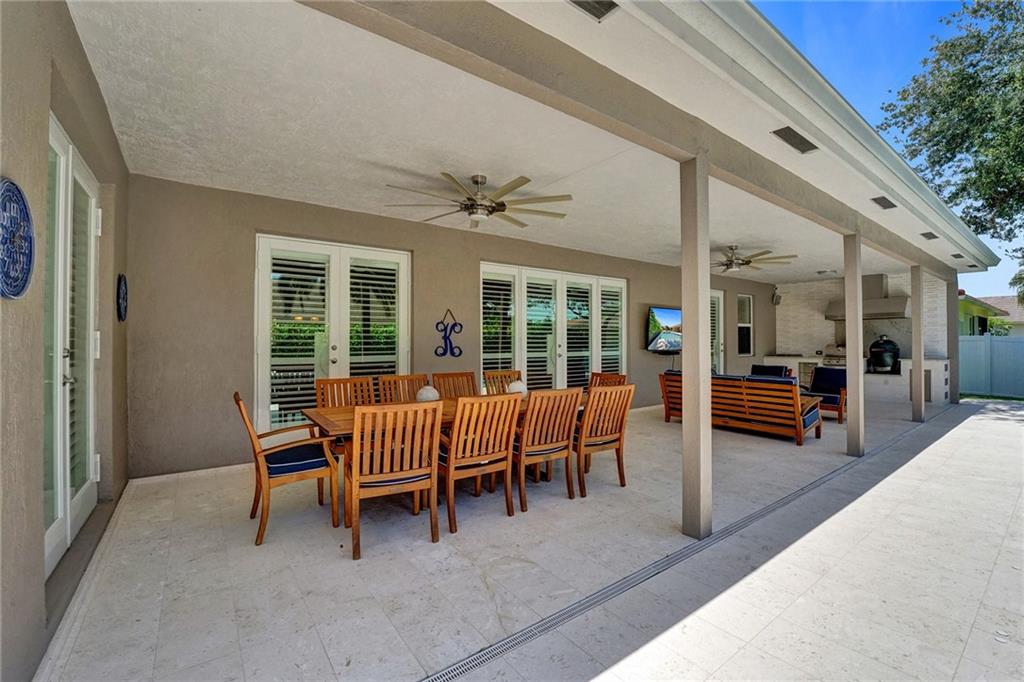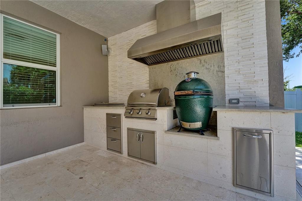 Come enjoy high-end finishes in this classic 4-bedroom, 3-bathroom one-story rancher in Davie Country Estates. Cross the threshold into an impressive entryway, plantation shutters throughout, and a gas fireplace in the living room. Fresh updates, two built-in ovens, and an attractive island layout make for an inspiring kitchen. The primary bedroom includes two walk-in closets and an ensuite bath. In this split floor plan, two bedrooms have large walk-in closets, and the fourth bedroom is currently an office. The piece de resistance is the backyard which boasts a heated pool with a hot tub, a beautiful outdoor kitchen with a built-in gas grill, and a charcoal egg. This home is a safe haven during storms with plumbed gas, impact windows, an impact garage door, and a new roof (2020).