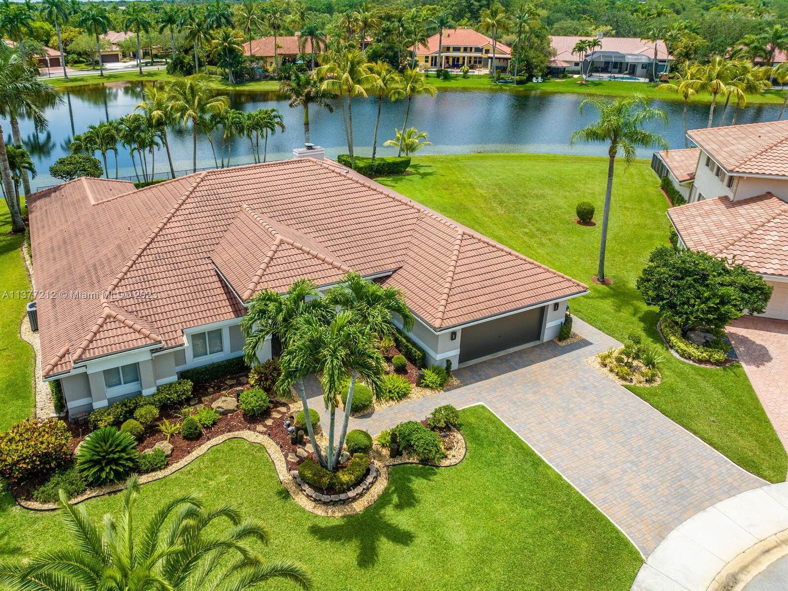 SELLER RELOCATION PRICE REDUCED FOR FAST SALE/NEWLY REMODELED PERFECT BEAUTIFUL 5/4 BUILDER'S MODEL CONTEMPORARY SHOWPLACE/ HUGE 21,244 SQ. FT. LAKEFRONT CUL DE SAC LOT/ POOL & SPA NEWLY RESURFACED & TILED ON OPEN AIR FENCED & ROOFED PATIO/CHILD GUARD FENCE/REPLACED ROOF/STORM IMPACT WINDOWS, NEW FRONT DOOR & GARAGE DOOR/SHUTTERS/UPDATED STATE-OF-THE-ART EAT IN GRANITE & WOOD ISLAND KITCHEN/ FAMILY ROOM HAS FIREPLACE, TV ENTERTAINMENT CENTER & WET BAR/ THREE MODERN UPDATED BATHROOMS/SPA IN PRIMARY BATH MARBLE & WOOD FLOORS/NEWER AC SYSTEM & WATER HEATERS/LED LIGHTS/ PLANTATION SHUTTERS/BUILT IN SHELVING/TONS OF CLOSET STORAGE SPACE/INTERIOR UTILITY ROOM/ELECTRIC CAR GARAGE CHARGER/24 HOUR MANNED GUARDHOUSE SECURITY/WALK TO A RATED SCHOOLS, PEACE MOUND PARK, TOWN CENTER SHOPS & RESTAURANTS.