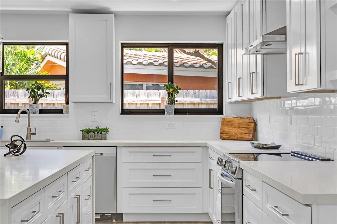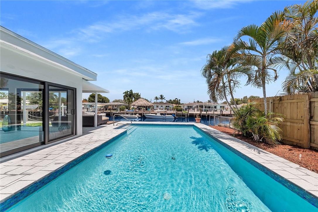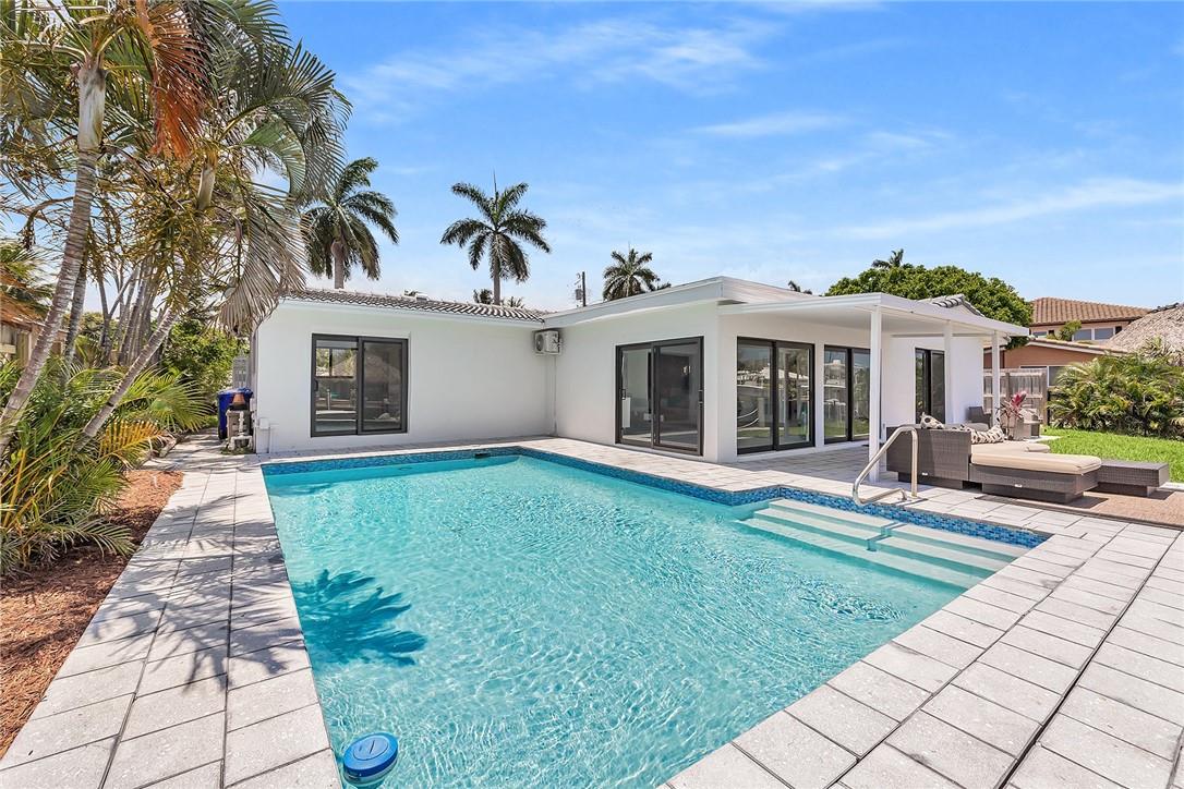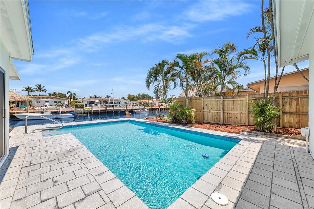 Unbeatable ocean access home with L-Shaped sparkling pool overlooking the water. The home sits on a private cul-de-sac. Brand new roof 2023, high impact windows, all remodeled chef's kitchen with center island for entertaining. New bathrooms. New paver driveway. New paver patio. Nothing left to do but move in.