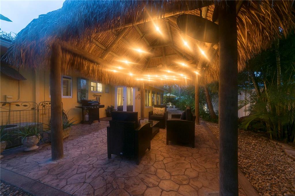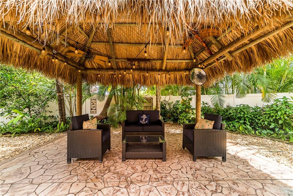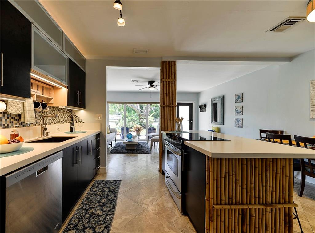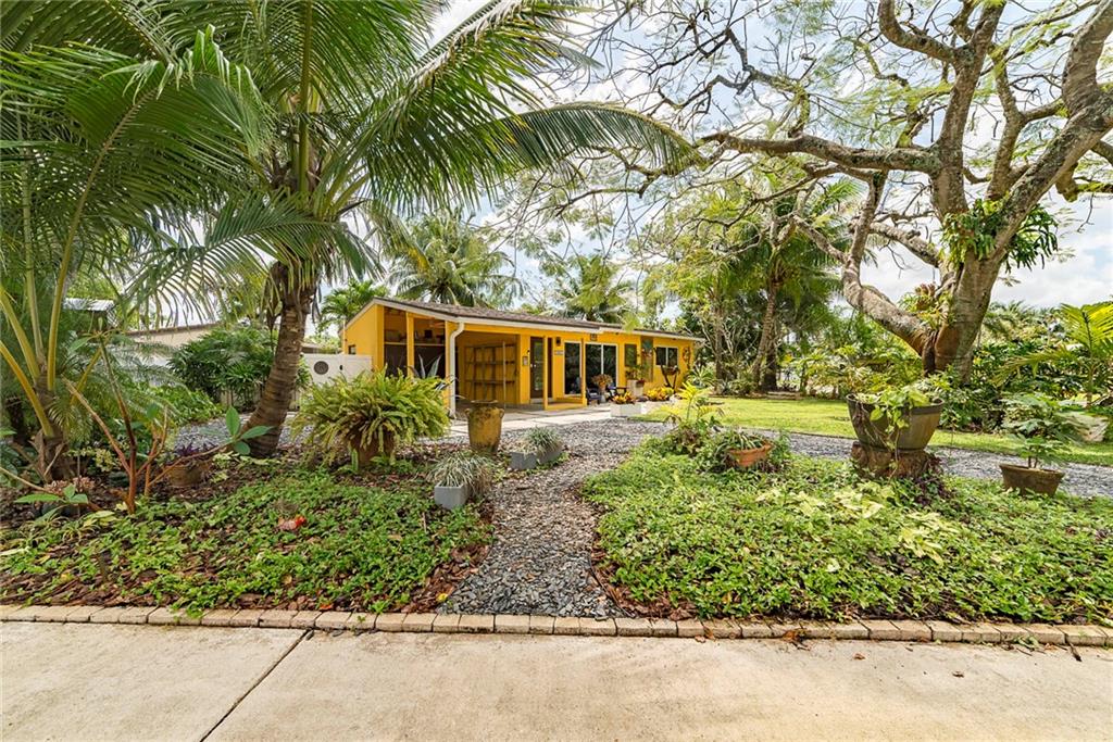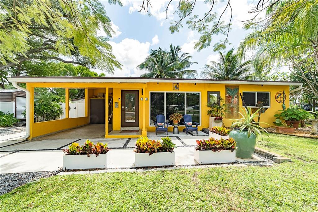 Tropical paradise home! Makes you feel like you are on vacation everyday! Live the Florida lifestyle with this remodeled home. Located on a corner lot, this property boasts of lush landscaping and many fruit trees and exotic plants. Kitchen has modern black cabinetry, stainless steel appliance package, and quartz counters, along with a large center island. Tiled throughout and has full impact windows and doors for protection. The piping under the home has been replaced with PVC pipe. So many extras: gas tankless water heater, gas dryer, custom closets, water filtration throughout the home. The yard is so inviting---a 10x15 Tiki hut sits amid a 20x 20 stamped concrete patio, with outdoor lighting. The yard is fully fenced and has a 10 x 10 hurricane approved shed, electric ready.
