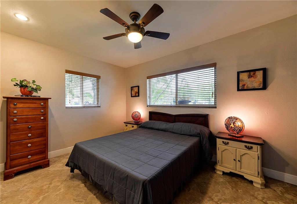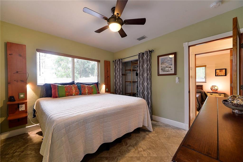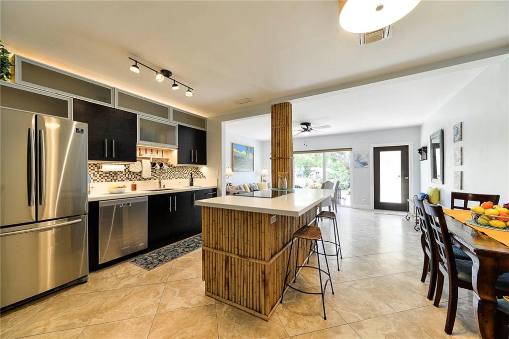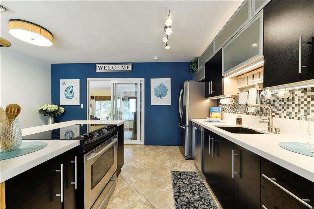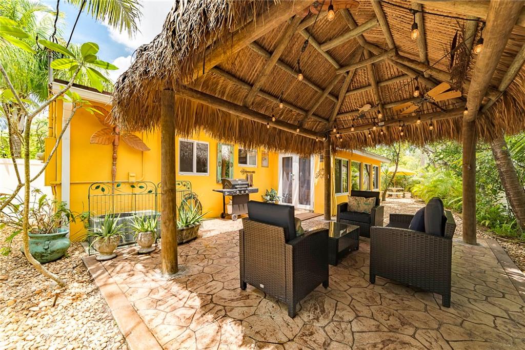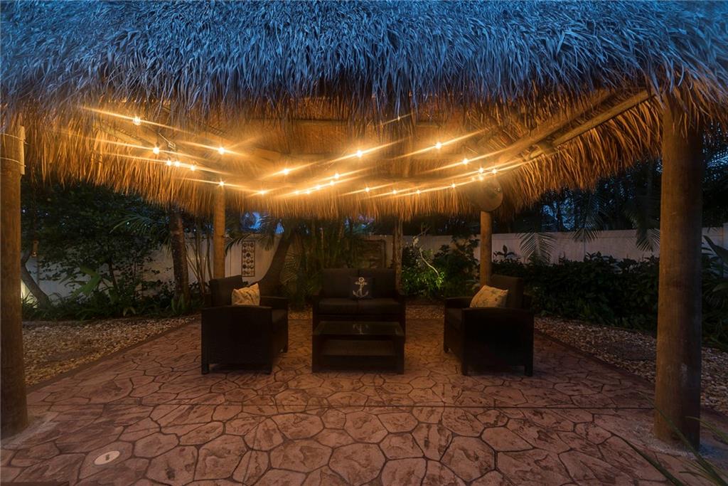 Tropical paradise home! Makes you feel like you are on vacation everyday! Live the Florida lifestyle with this remodeled home. Located on a corner lot, this property boasts of lush landscaping and many fruit trees and exotic plants. Kitchen has modern black cabinetry, stainless steel appliance package, and quartz counters, along with a large center island. Tiled throughout and has full impact windows and doors for protection. The piping under the home has been replaced with PVC pipe. So many extras: gas tankless water heater, gas dryer, custom closets, water filtration throughout the home. The yard is so inviting---a 10x15 Tiki hut sits amid a 20x 20 stamped concrete patio, with outdoor lighting. The yard is fully fenced and has a 10 x 10 hurricane approved shed, electric ready.