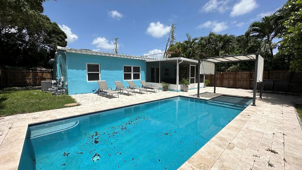Completely Renovated, Stylish Pool Home is on a large fenced lot. Enter Hurricane French Doors, to Main Living area w/Large Tile Floors, enjoy the Sleek Kitchen w/High Gloss White cabinetry w/ Deco countertops, Stainless Steel Appliances & waterfall edge. Then Walk out to the large Screen enclosed Patio & large private fence backyard w/pool. Home boosts 3 Bed / 2 Full baths. Main bath has Walk in Glass enclosed shower with stylish finishes & vanity. Home includes Impact Hurricane Windows & French Doors. Carport has Utility Storage Room with Laundry Hook Up and Tankless water Heater. City has just put in new Sewer and Drainage throughout the neighborhood. Located Central Lauderdale, just minutes to Airport & Downtown Fort Lauderdale.