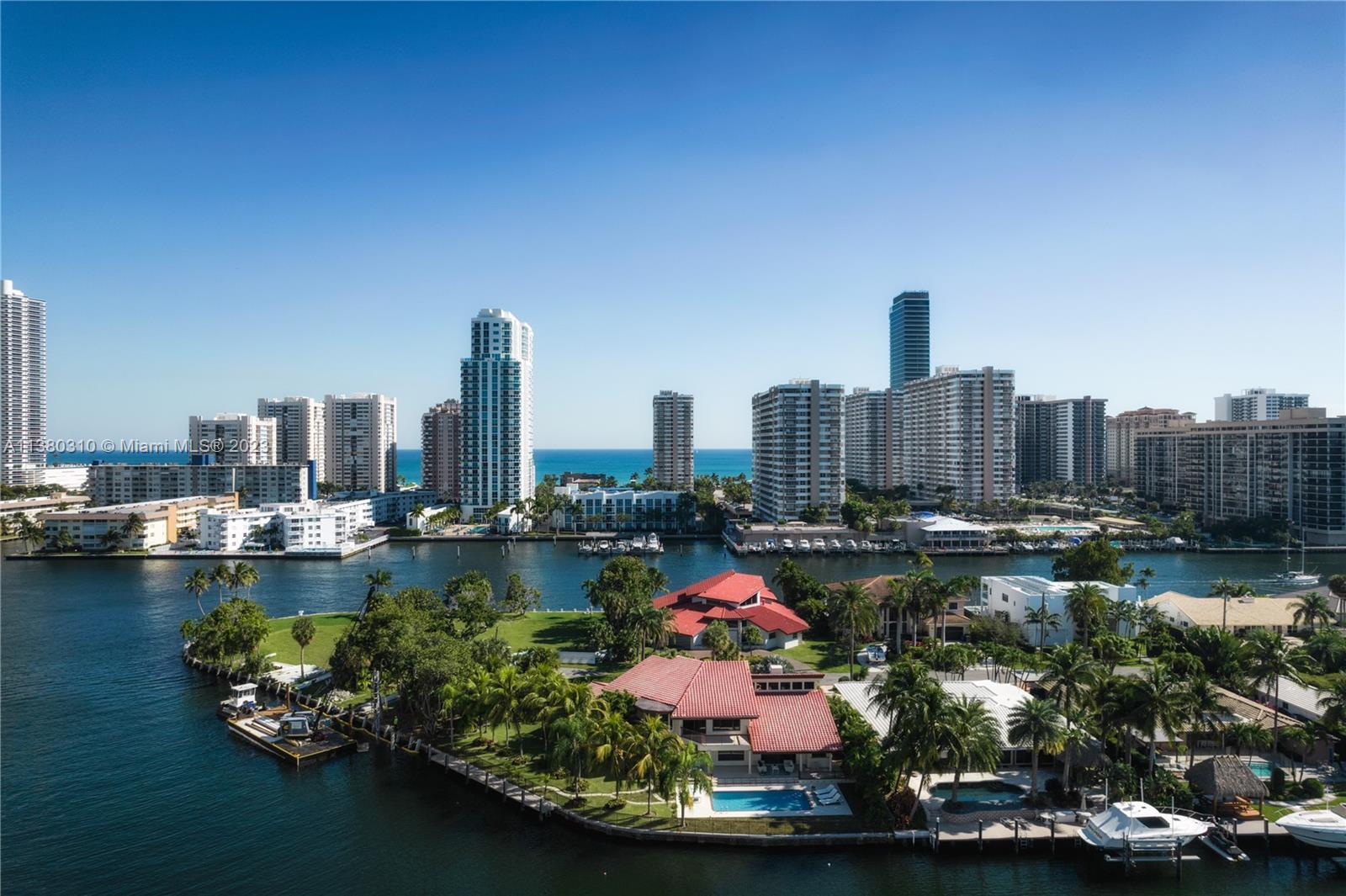 Welcome to a one of a kind waterfront POINT LOT estate in the exclusive gated community of Golden Isles located in the heart of Hallandale Beach. This property features an oversized 16.100 SF of land and over 180 FT of water frontage! The residence consists of 5,200 SF of living space with 4 Bedrooms, 4 Full bathrooms, several family rooms, wet bar, 2 car garage and a 100 FT dock for Yacht enthusiast. This unique property allows you to park your yacht over 100 FT without blocking your western sunset views!! No fixed bridges, open sea in 15 minutes!