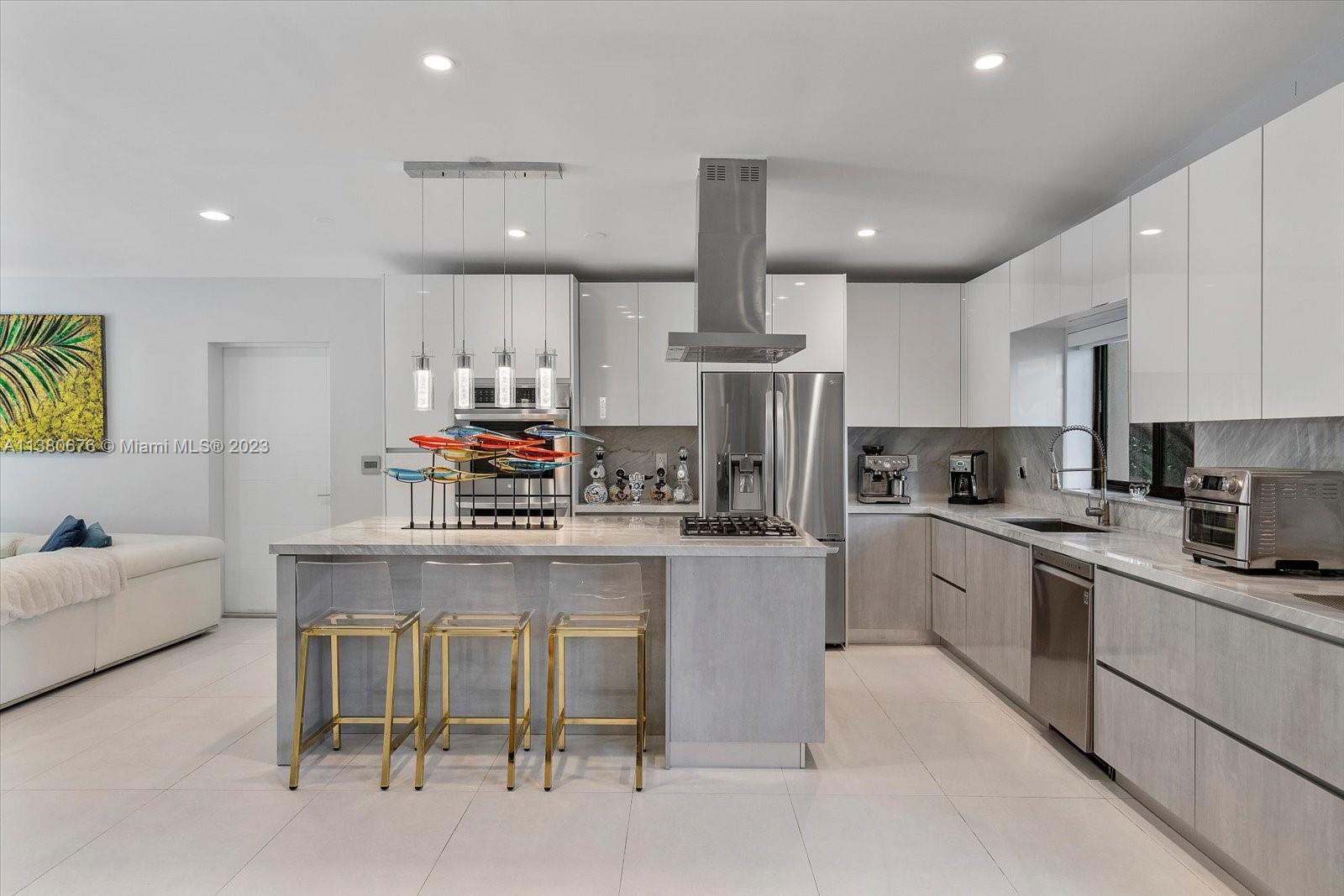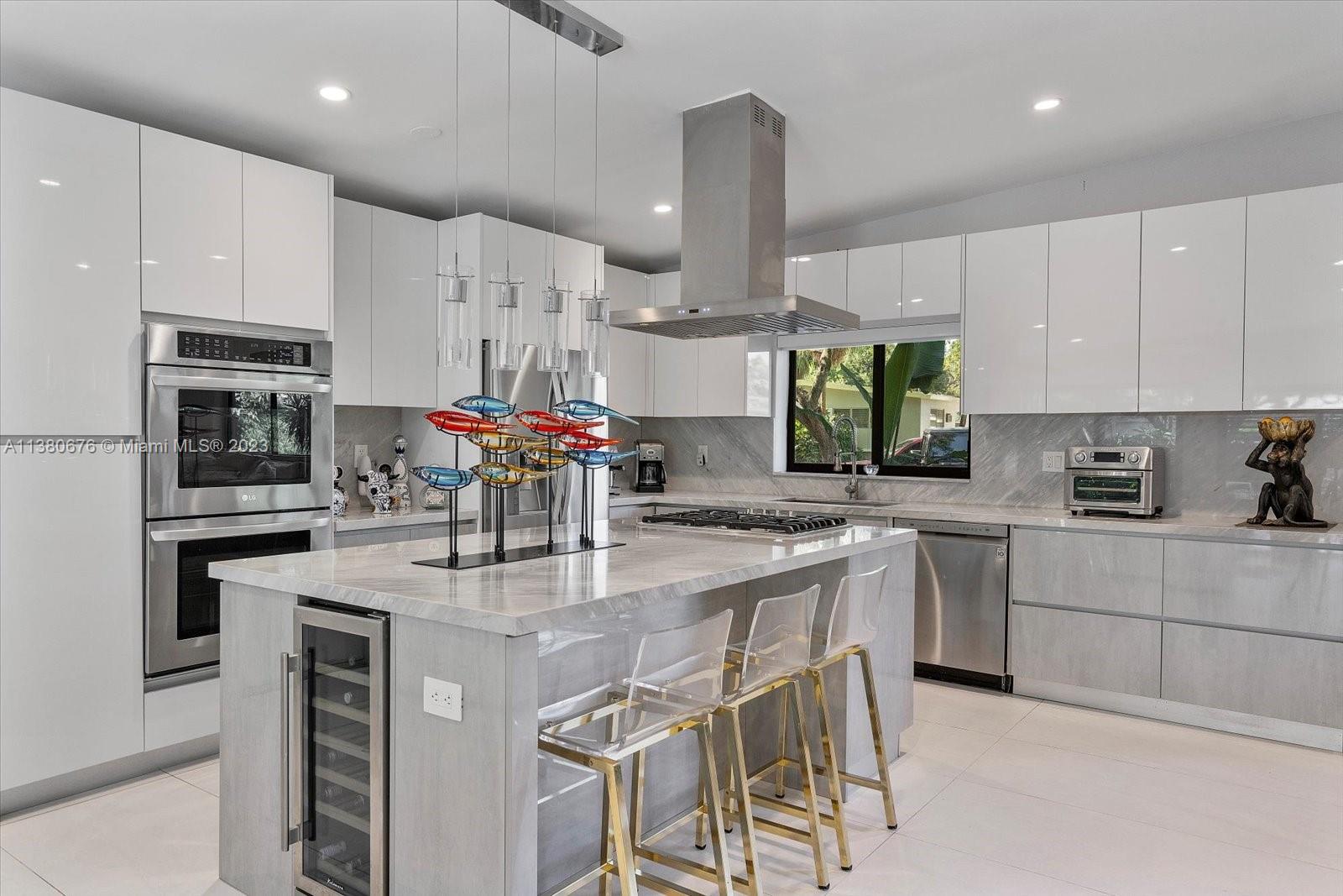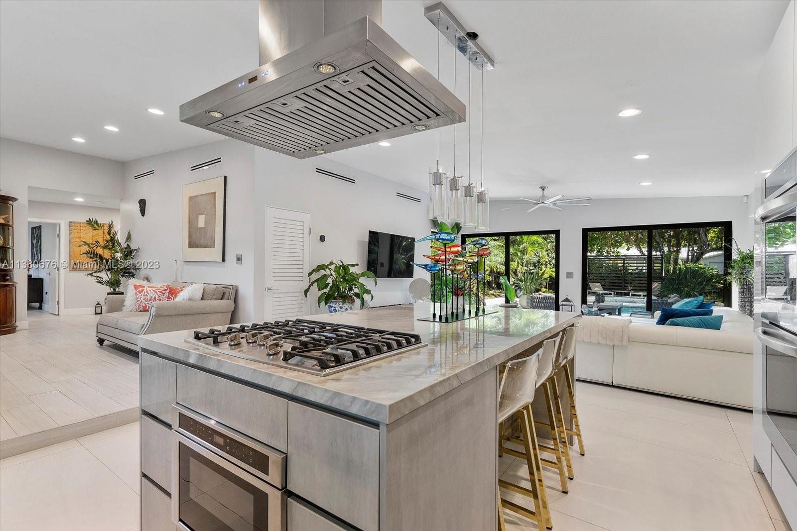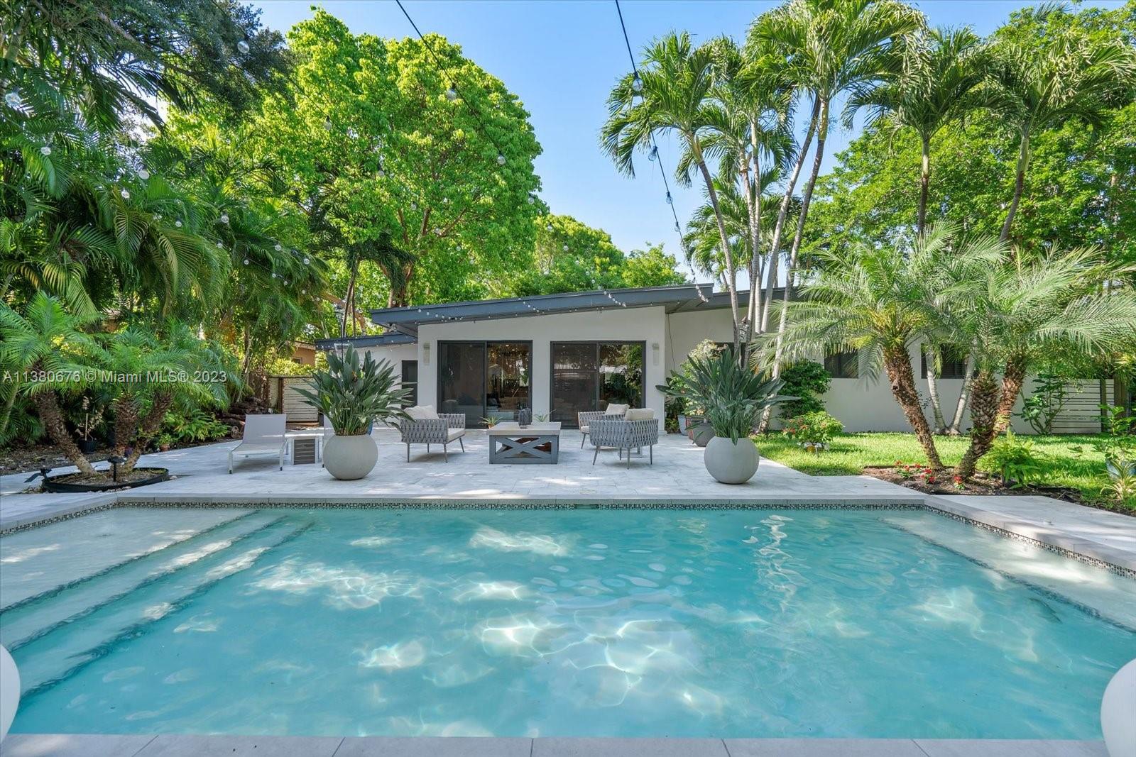 Welcome home to this tastefully newly remodeled tropical oasis located in Miami Shores just steps away from the bay. Featuring 3 spacious bedrooms and 2 bathrooms with an open layout showcasing incredible views of the pool and lush backyard (perfect for entertaining & family gatherings), a large family room, ample living room, open chef’s kitchen with marble countertops, newer appliances, double wall oven, gas stove, large kitchen island with seating, built in wine cooler, plenty of counter space & cabinetry, high impact windows & doors and oversized Italian ceramic tile throughout. This home sits on a 10,625 SF lot and includes an attached single car garage. Miami Shores is one of the most desirable neighborhoods in Miami, centrally located with easy access to major streets and highways.