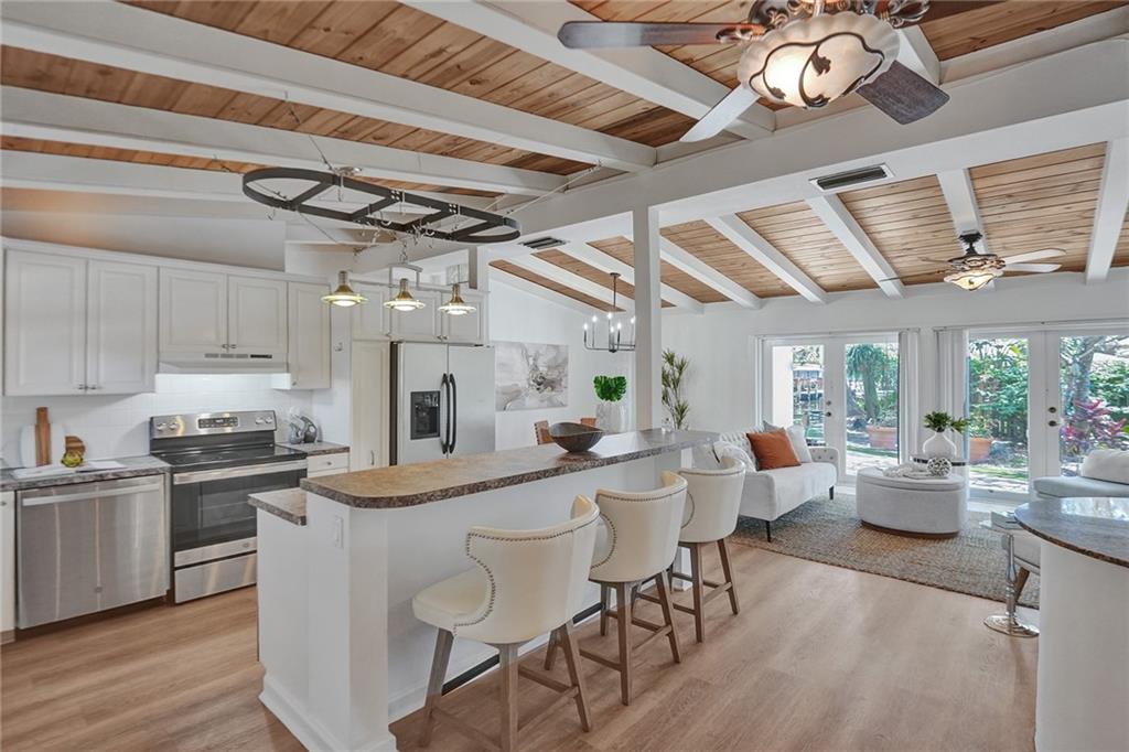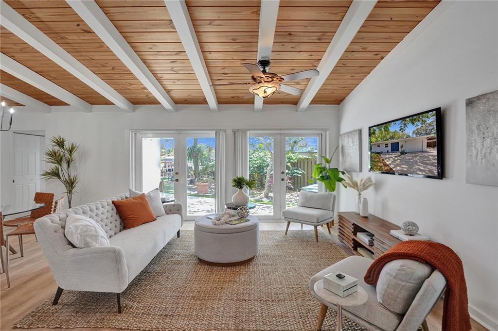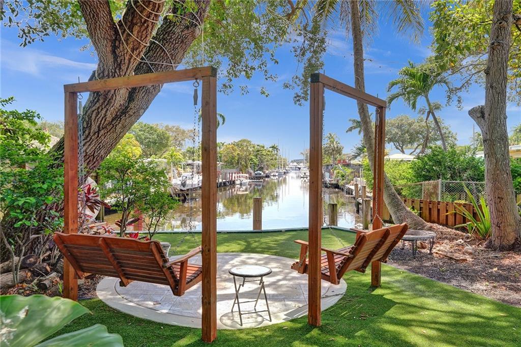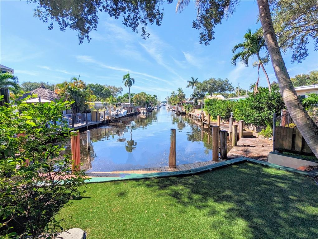 Mid Century 2 Bed 2 Bath Waterfront Home in Sought After Shady Banks. Long Tranquil Water views down the Canal to the New River. Open Floor Plan, Vaulted Exposed Beam Ceilings. Freshly Painted Inside & Out. Large Primary Bedroom with Walk in Closet, Bath w/ Spa Tub, Separate Shower. 21 ft Dock, No Fixed Bridges, Ocean Access. Beautiful Mature Oak Tree, Impact Windows/Doors. French Doors provide Natural Light & Water Views from Living & Primary Bedroom. Enjoy Water Views while having your Morning Coffee & Afternoon Cocktails on the Patio Swings. Stamped Concrete Drive w/ Plenty of Parking & 1 Car Garage w/Separate Utility/Laundry Room. Down the street from 6 Acre Hortt Park w/ Tennis, Volleyball Walking Paths. Secluded Neighborhood Surrounded by the New River with One Way In/Out. A Must See