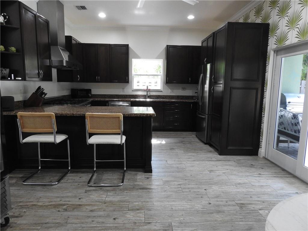 IMMACULATE, SPACIOUS, OPEN FLOOR PLAN. LOTS OF NATURAL LIGHT, VAULTED CEILINGS. PORCELAIN FLOORS. LOCATED IN THE HEART OF POINSETTIA HEIGHTS. 3 BEDROOMS, 2 FULL BATHS. SPACIOUS PRIMARY BEDROOM W/11 FT. TRAY CEILING, OVERSIZED WALK-IN SHOWER, ITALIAN MARBLE COUNTERTOPS. WALK IN CUSTOM CLOSET & CEDAR CLOSETS. LARGE EAT IN KITCHEN W/ COMMERCIAL THERMADOR 6 BURNER GAS RANGE, DOUBLE OVEN. NEW SAMSUNG REFRIGERATOR, CUSTOM CABINETRY. COVERED LANAI W/ OUTDOOR KITCHEN, SEATING & DINING AREA. INCLUDES GRILL & PIZZA OVEN. LARGE FENCED YARD,W/MATURE PLANTINGS. HEATED SALTWATER POOL, SPA, SUN SHELF. WHOLE HOUSE GENERATOR, IMPACT WINDOWS,DOORS. 1 CAR GARAGE, LOTS OF STORAGE & WASHER, DRYER. NEWER AC, GAS TANKLESS WATER HEATER, POOL HEATER. NEW ROOF TO BE INSTALLED PRIOR TO CLOSING.