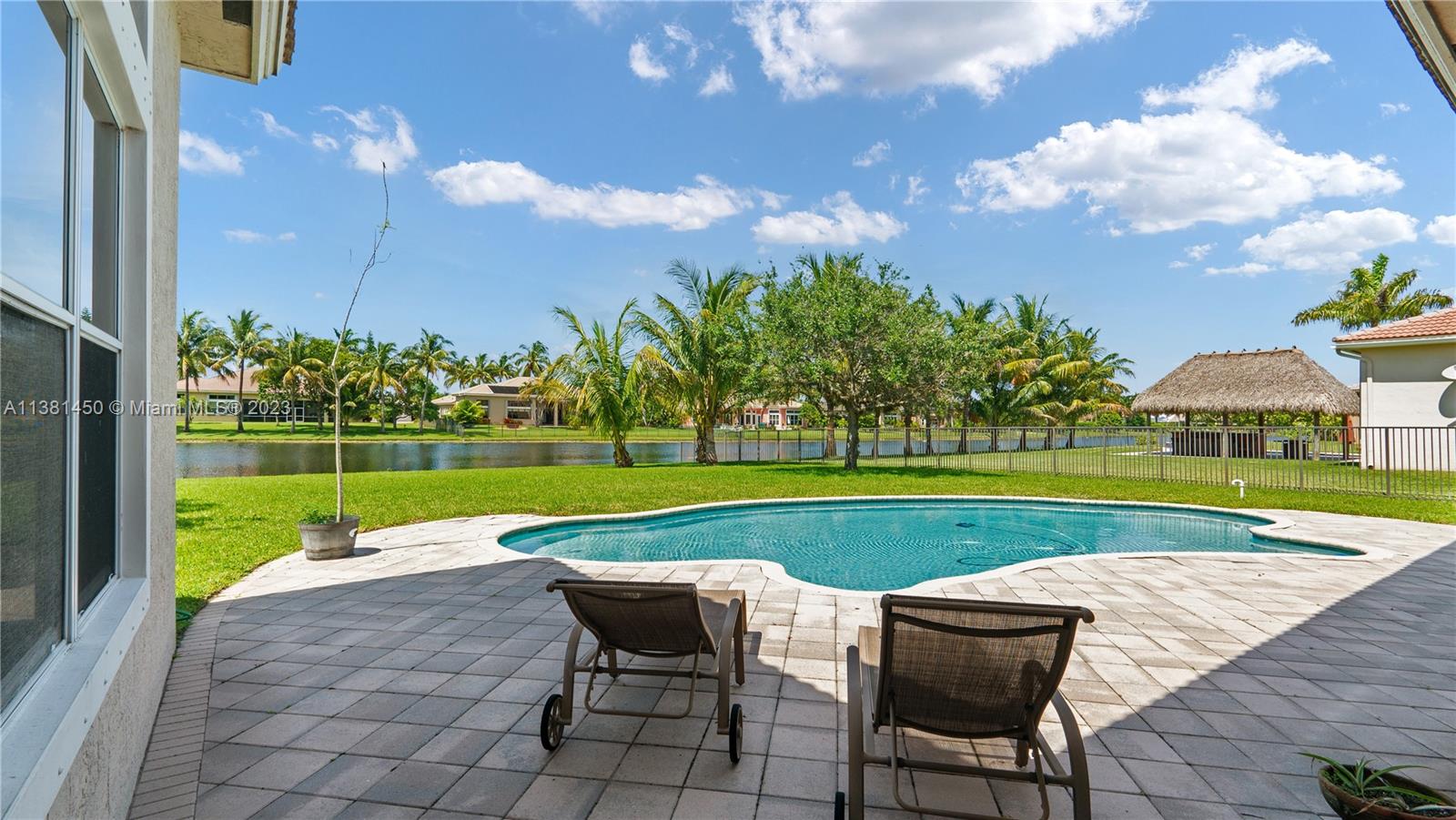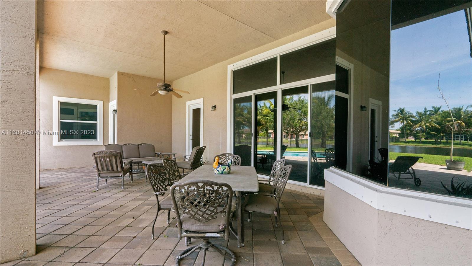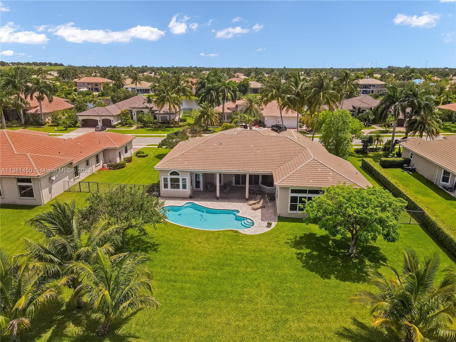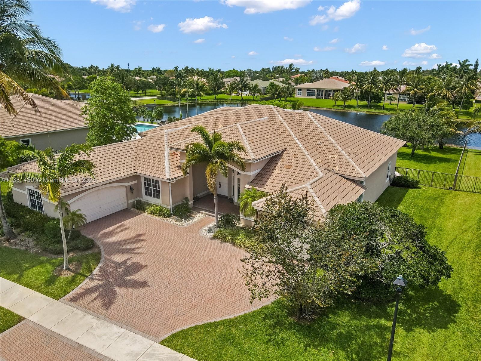 Stunning home in Davie! This 5 bedroom, 4.5 bath knockout features soaring ceilings, multiple living spaces, study with regal built-in bookshelves, and a formal dining room - perfect for entertaining! The kitchen is light, bright, and boasts sparkling granite counters, pantry, oversized island, serving bar, and built-in double oven - any chef's dream! Relax in the luxurious primary suite featuring tray ceiling, sitting area, patio access, dual vanity with Hollywood lighting, two walk-in closets, and garden tub with separate oversized shower stall. Located in the highly coveted neighborhood of Riverstone on nearly an acre, enjoy all the community has to offer just moments from tennis courts, playgrounds, clubhouse, and so much more! This one is a must see!