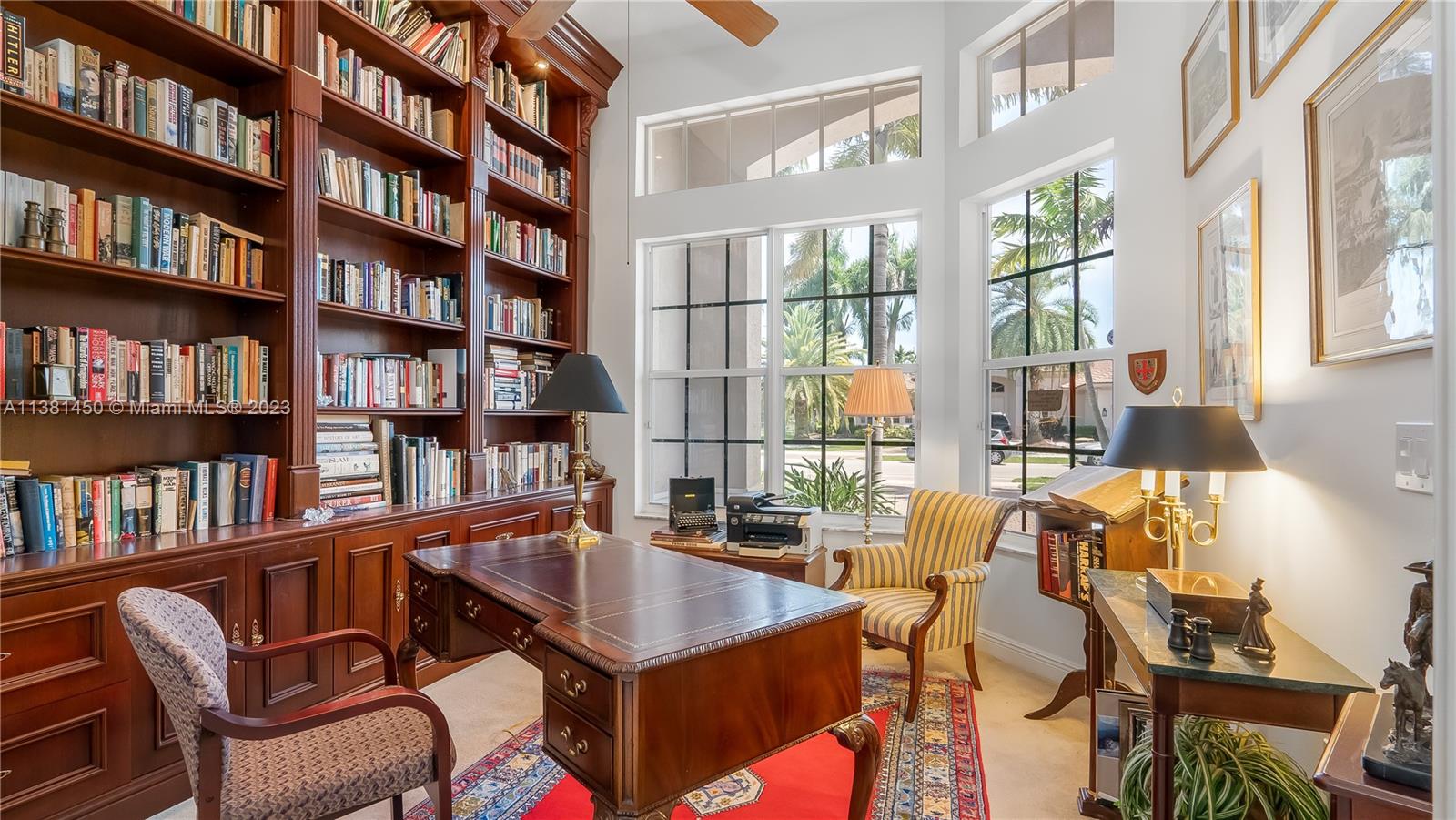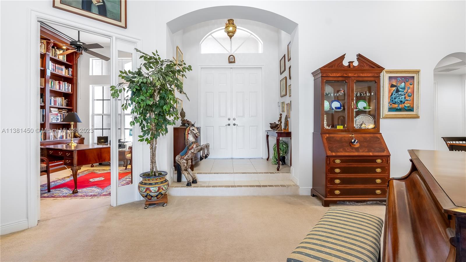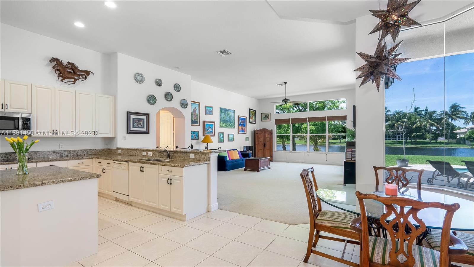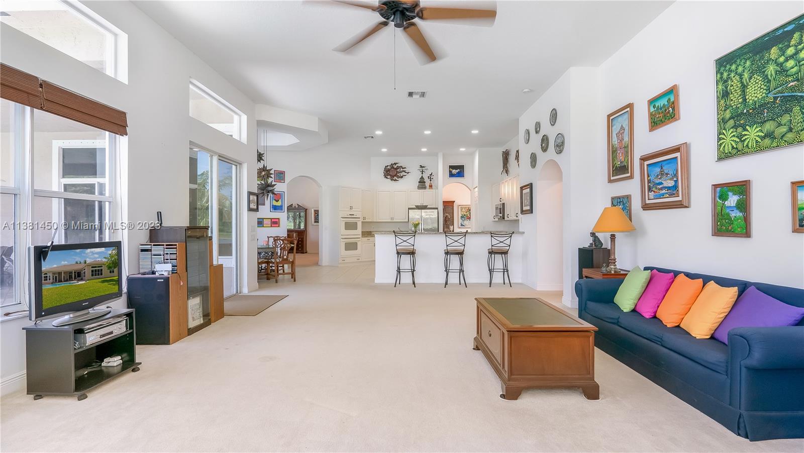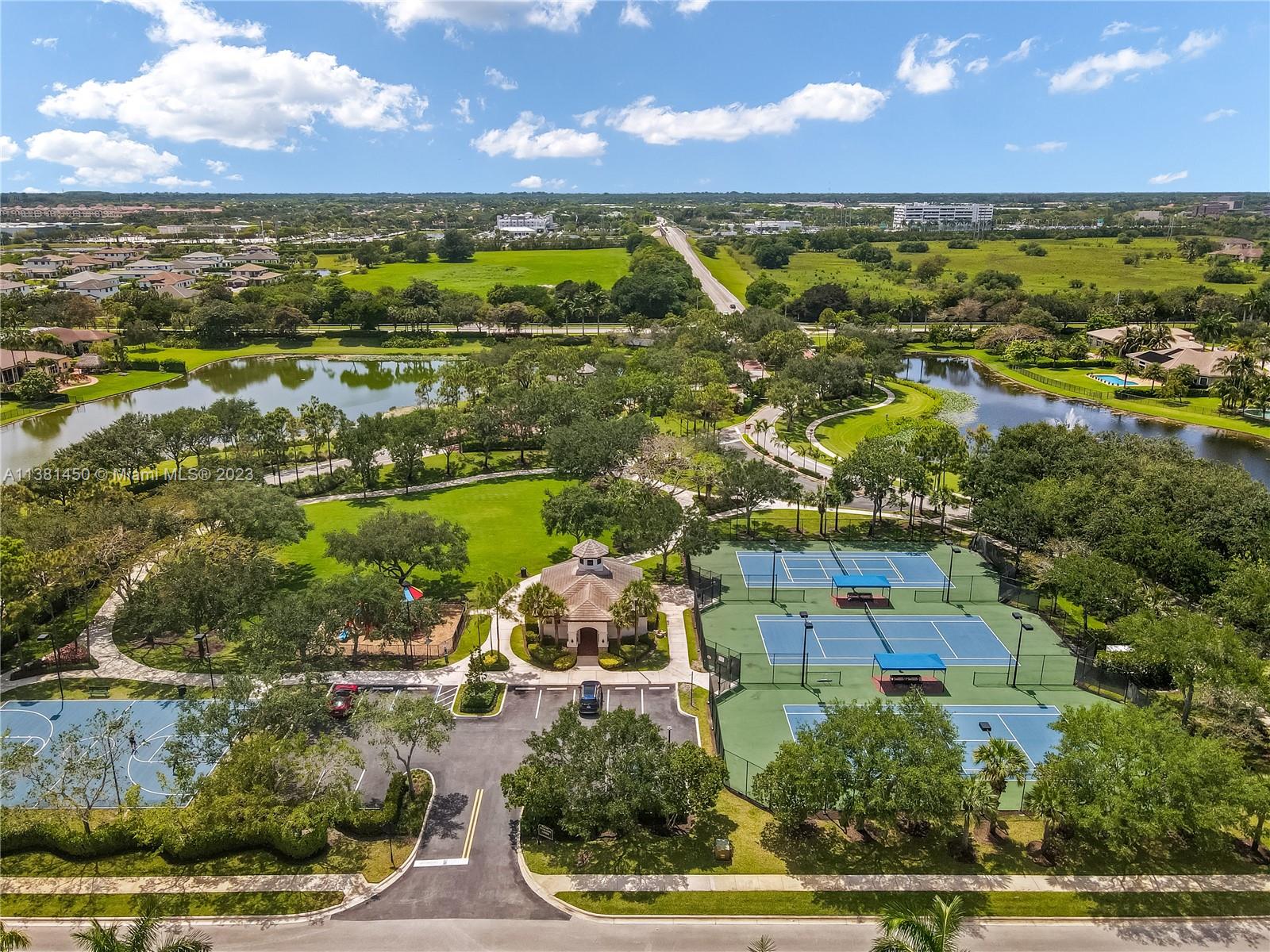 Stunning home in Davie! This 5 bedroom, 4.5 bath knockout features soaring ceilings, multiple living spaces, study with regal built-in bookshelves, and a formal dining room - perfect for entertaining! The kitchen is light, bright, and boasts sparkling granite counters, pantry, oversized island, serving bar, and built-in double oven - any chef's dream! Relax in the luxurious primary suite featuring tray ceiling, sitting area, patio access, dual vanity with Hollywood lighting, two walk-in closets, and garden tub with separate oversized shower stall. Located in the highly coveted neighborhood of Riverstone on nearly an acre, enjoy all the community has to offer just moments from tennis courts, playgrounds, clubhouse, and so much more! This one is a must see!