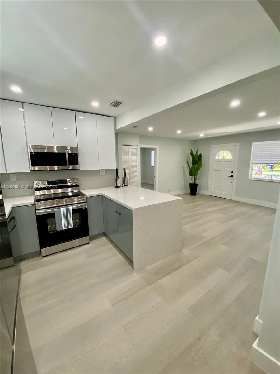 Welcome Home! Stunning 3 beds 2 baths, 1250 Sqft. One-story house. Open concept with great natural light, a huge fully fenced back yard with enough space for a swimmig pool. Modern style kitchen with quartz counter tops, Top-Of-The-Line SS Samsung appliances, touchless faucet and oversized modern sink. Water efficient bathroom in beautiful porcelain tile, the house is energy efficient with LED lightin, tankless water heater and a set W/D. Great location! close to The famous Hard Rock Casino-hotel, Close to I-95 .NO Rental Restrictions and No HOA!!
