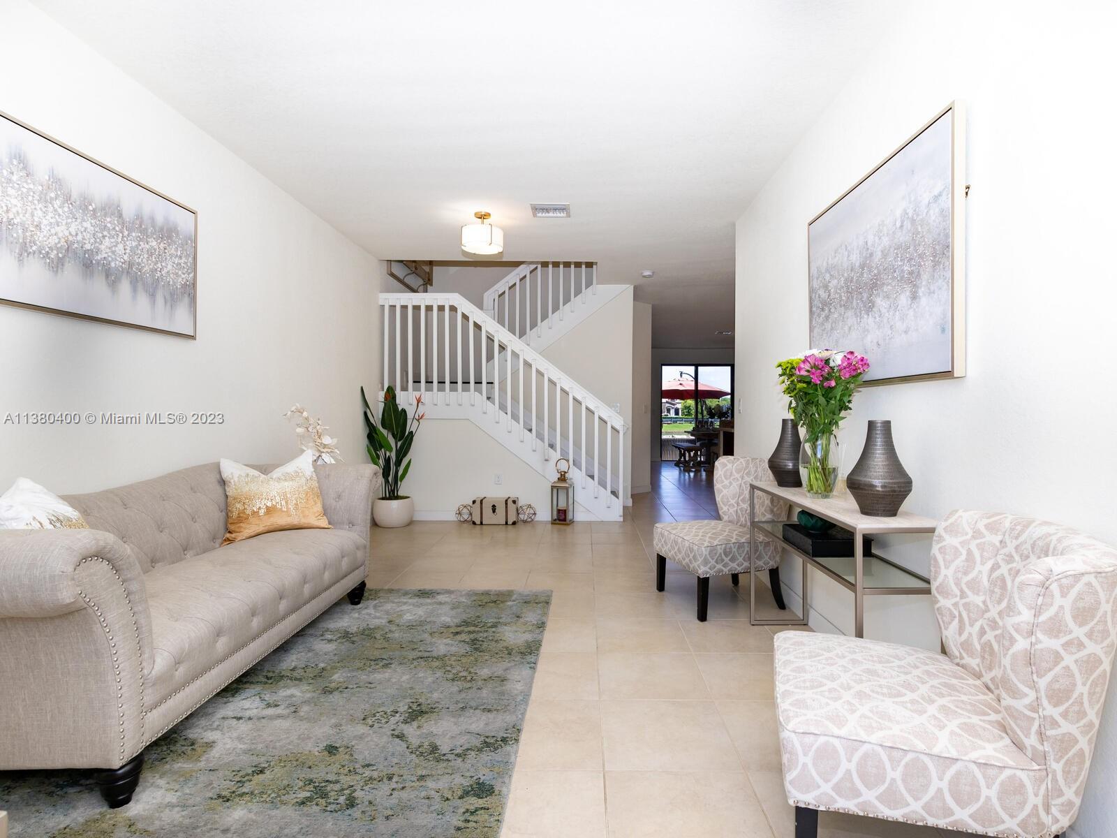 This immaculate lakefront townhome is a true gem located in the boutique community of Turquesa by Lennar. Its inviting atmosphere is evident from the moment you step through the door. Home features tile flooring, wood laminate flooring in staircase, spacious kitchen, refrigerator, dishwasher, disposal, microwave, range, tankless water heater, smart technology thermostat, accordion shutters, security cameras, large closets, washer & dryer conveniently located on second floor, ceiling storage in garage and paved backyard. Tranquil master suite boasts an ensuite bathroom with separate shower. Outdoor area is perfect for morning coffee and enjoying stunning views of the peaceful lake. This rare opportunity to own a lakefront home in a boutique community won’t last long!