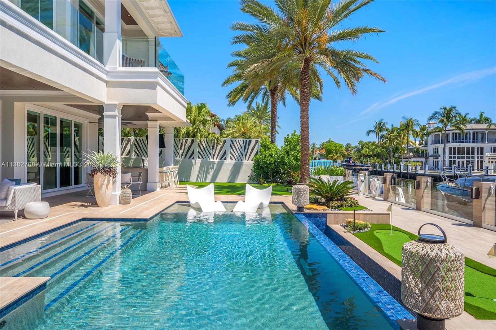 Discover unmatched luxury in this Michael Grey interior designed estate, a turnkey gem in the yacht capital of the world. A prime location within walking distance to Las Olas Blvd, boasting dual master bathrooms/closets, flawless design, and thoughtful spaces. Recent upgrades: Allini water filtration, Toto toilets, full home automation, Lutron lighting/blinds, and more. The estate features a gourmet kitchen w/Wolf & Sub Zero appliances, club room, office, bar, wine room, summer kitchen, air-conditioned 4-car garage, infinity saltwater pool, elevator, fireplace, 48kw generator, commercial-grade gym, & sauna. Enjoy 100' of waterfront, deep water dockage for a yacht, & great boat turnaround space on a desirable wide, deep canal. A truly exceptional property with unparalleled elegance.