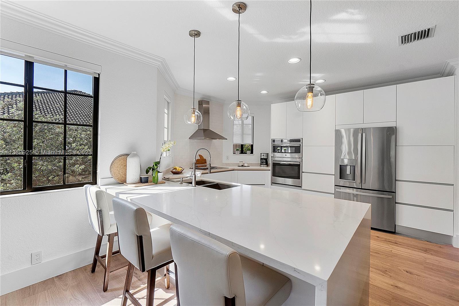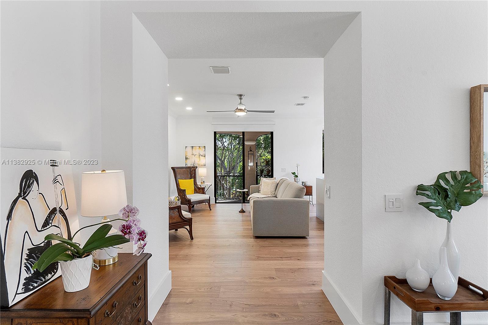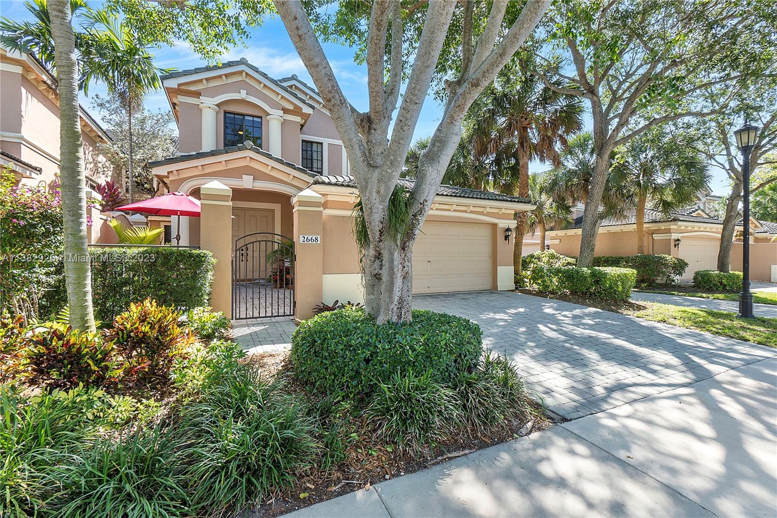 This stunning residence boasts a Modern-style garden and a private gated courtyard. Featuring 3 Bedrooms + Office/Den, 2 1/2 Bathrooms, 2 Car Garage, situated within the prestigious Weston Hills Country Club. This home has been tastefully renovated to include modern upgrades such as new flooring, stylishly updated bathrooms, and an open concept kitchen featuring elegant white quartz countertops and stainless steel appliances.