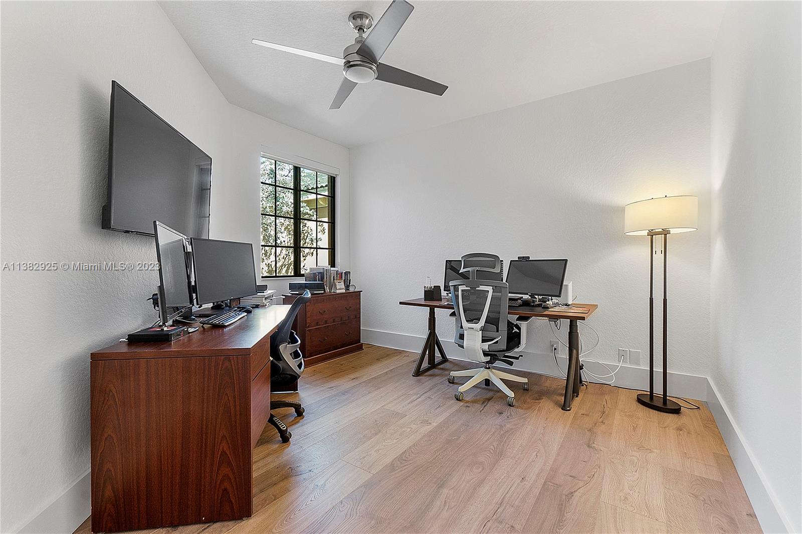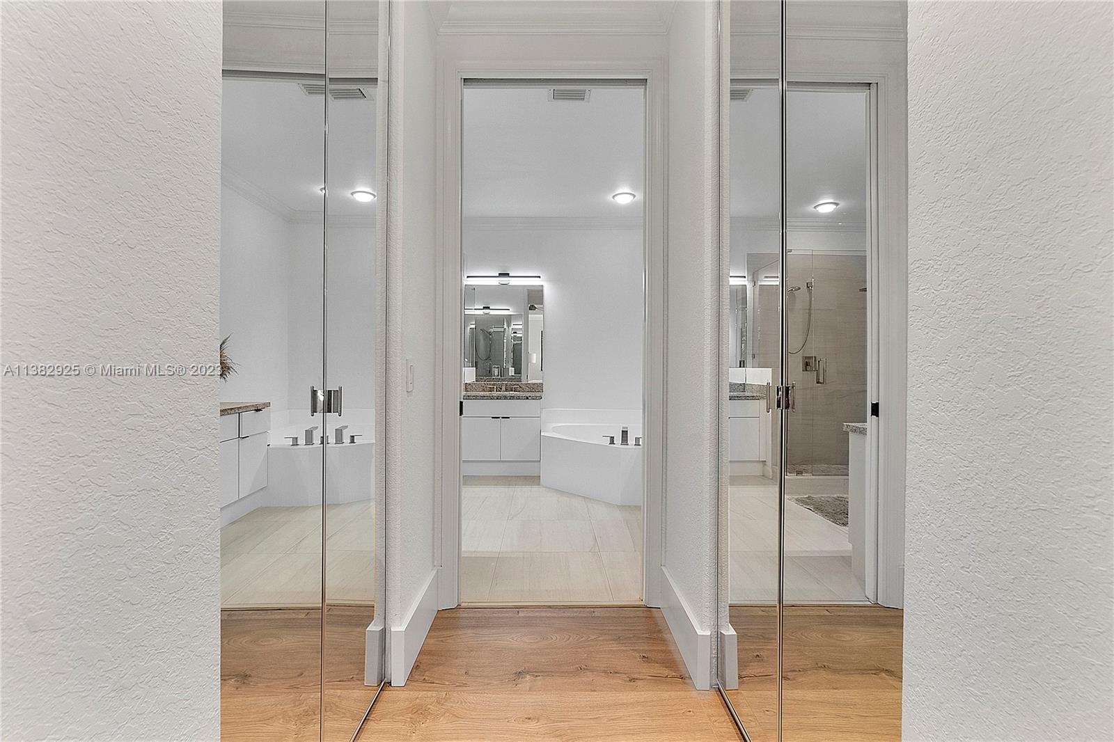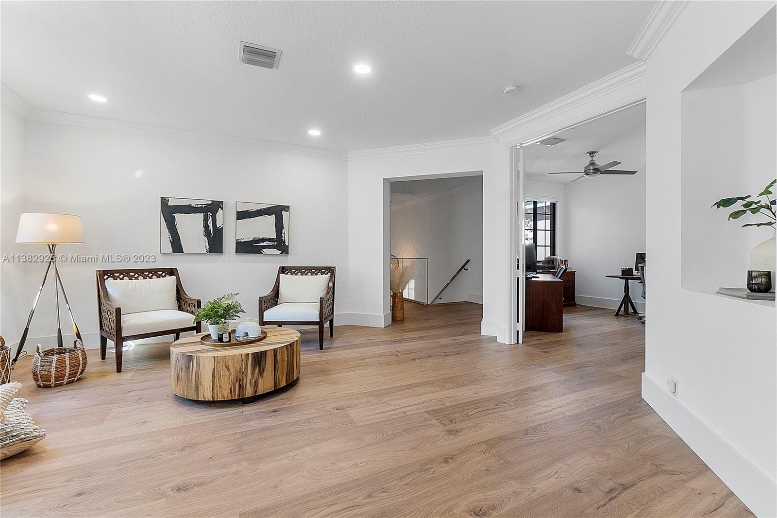 This stunning residence boasts a Modern-style garden and a private gated courtyard. Featuring 3 Bedrooms + Office/Den, 2 1/2 Bathrooms, 2 Car Garage, situated within the prestigious Weston Hills Country Club. This home has been tastefully renovated to include modern upgrades such as new flooring, stylishly updated bathrooms, and an open concept kitchen featuring elegant white quartz countertops and stainless steel appliances.