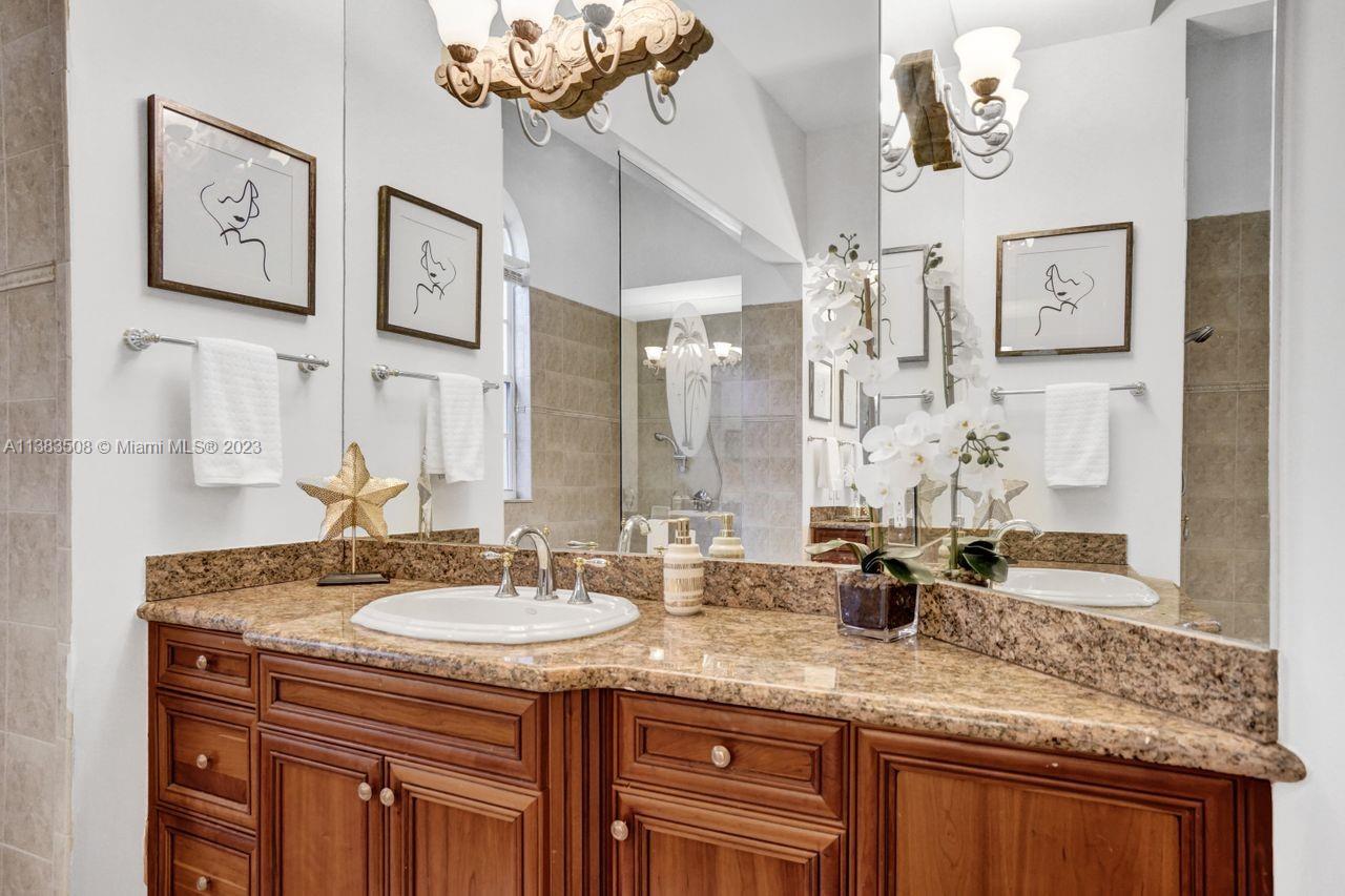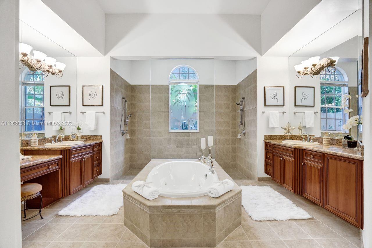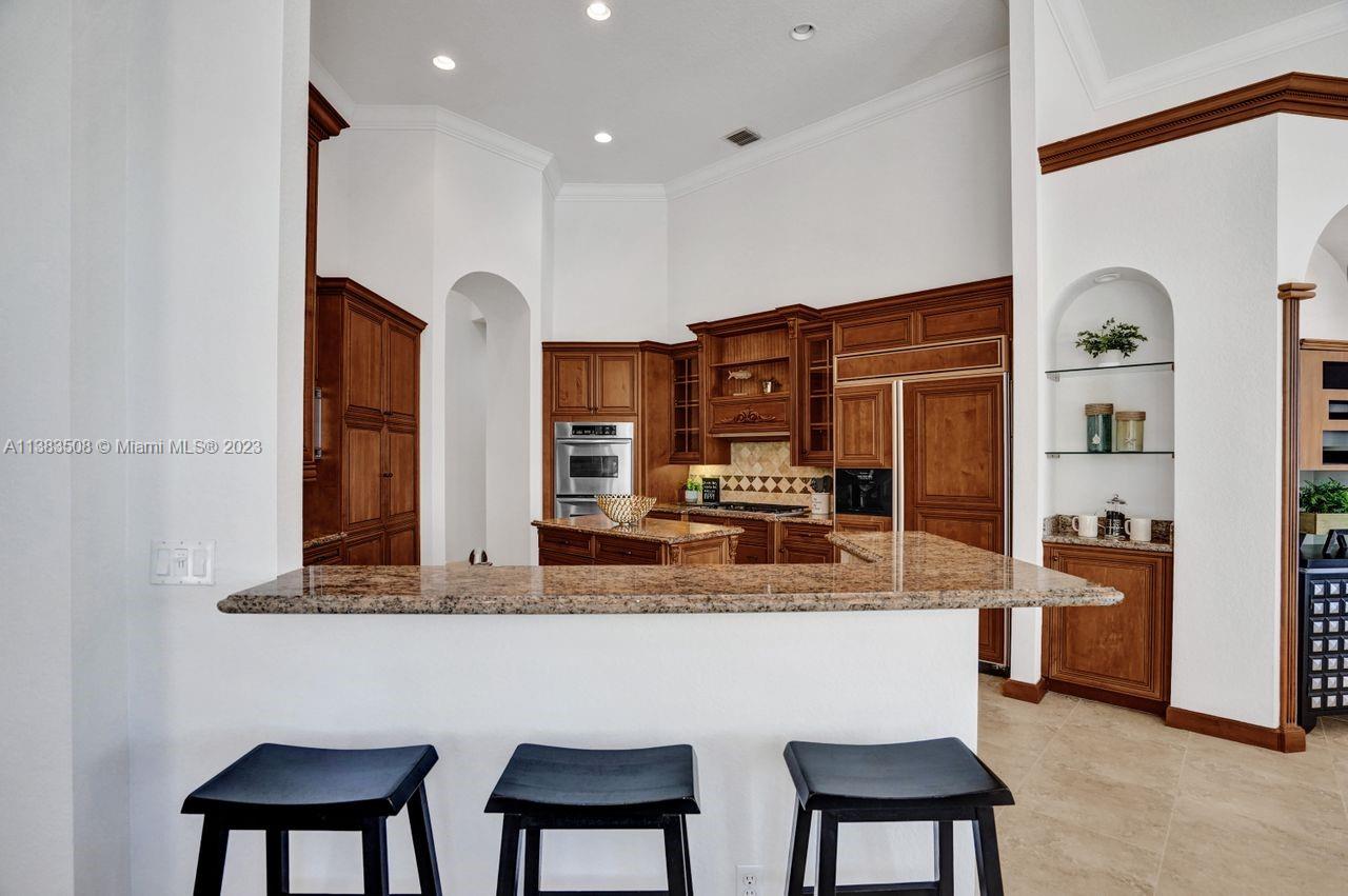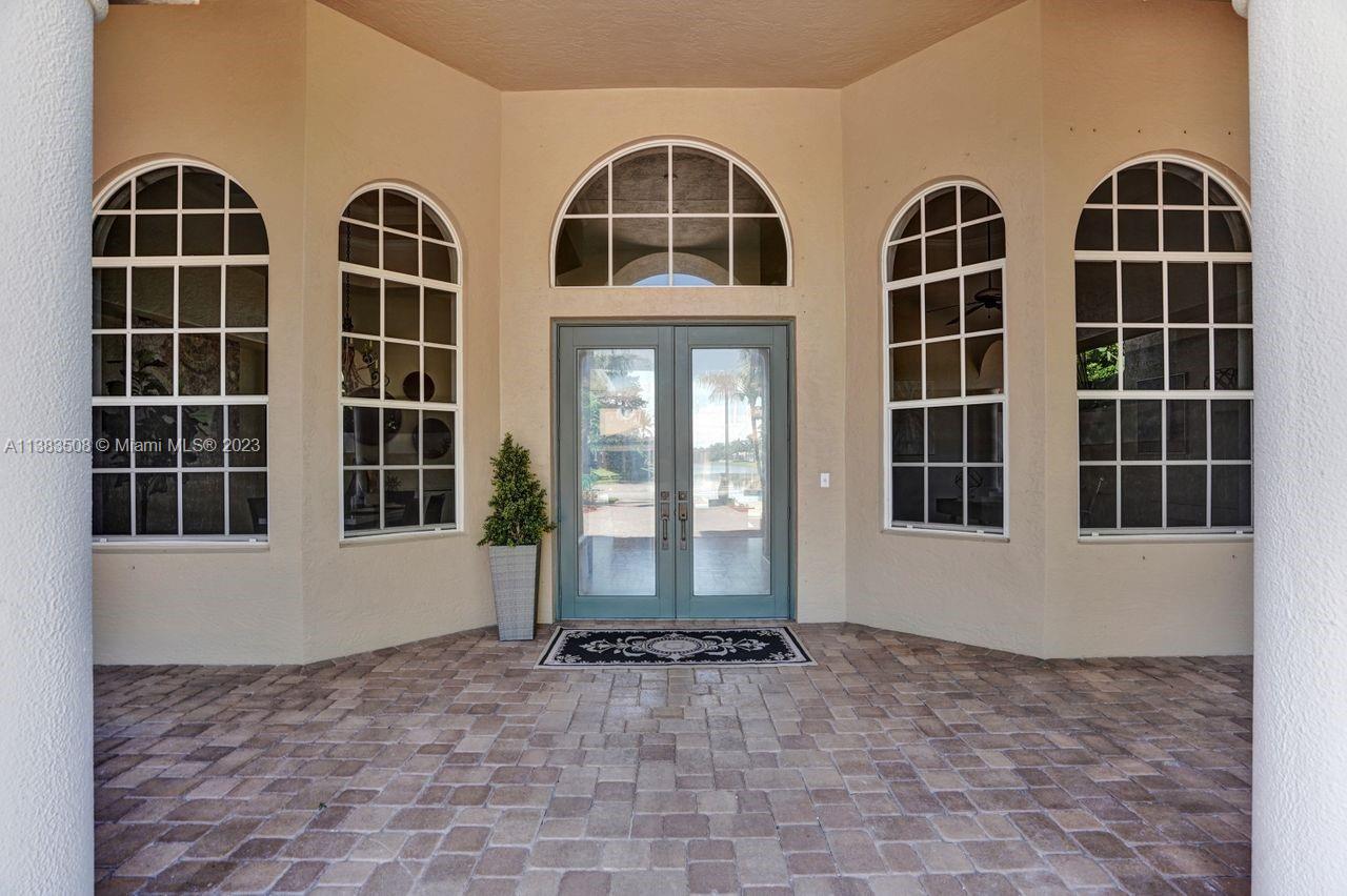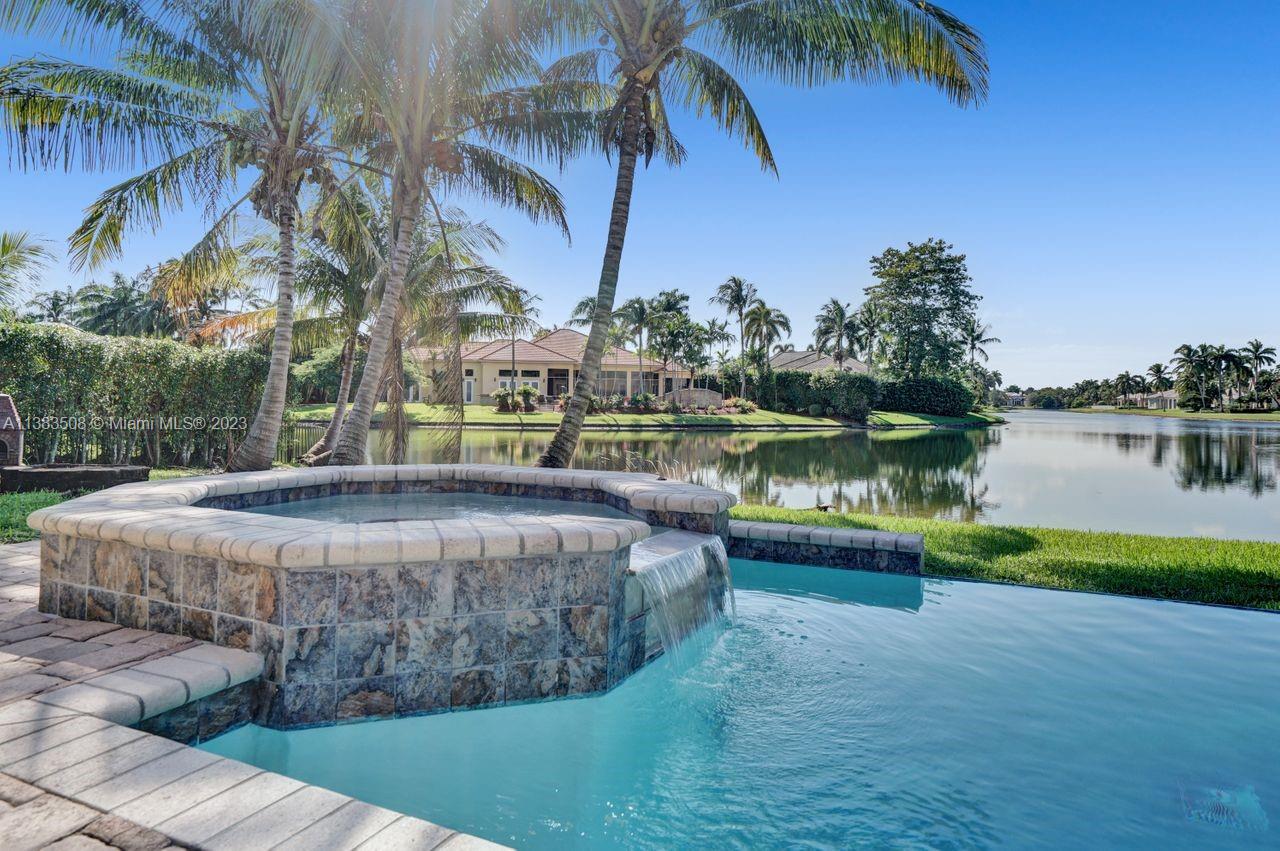 Simply stunning half acre waterfront lot in Exclusive Stonebrook Estates community in the equestrian Town of Davie. Home is located on the best lakefront lpoint ot in the community with long tranquil lakeviews from the moment you enter home with gorgeous remodeled infinity edge pool and jacuzzi. Fantastic one-story split floor plan with 5 bedrooms PLUS office,4 bathrooms,3 car garage and 18 foot ceilings. Beautiful chef's kitchen with Sub Zero refrigerator, gas stove, wood cabinets and granite counter tops. Huge master suite with adjacent sitting/gym area and large walk-in closets. Grand master bath with granite and double shower heads. Freshly painted inside and outside. Solar water heater. Accordion shutters.True pleasure to show and you will be impressed!
