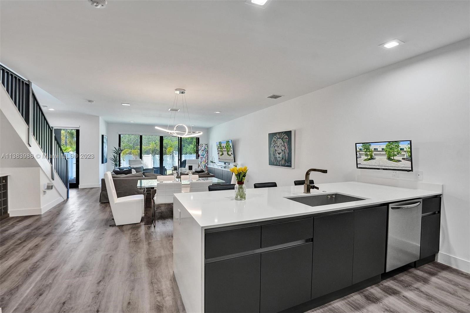 Looking for a home in heart of Croissant Park? Luxurious 2-level townhouse boasts 3BR/2.5BA&2-car garage & 1745SF. Inside you'll be struck by attention to detail & custom updates unlike others. 1stFLr has open-concept living/dining area, perfect for entertaining guests. Chef's kitchen w/SS appliances, white quartz counters & big pantry. Living room has custom built-in cabinet & DR has built-in bar w/wine fridge, shelves & cabinets. All BRs on 2ndFL. Spacious primary suite w/stunning astroturf balcony & sunset views, custom walk-in closet & en-suite bath w/2-sinks, water closet & frameless shower. Impact windows-porcelain tile-motorized blinds-custom lights-SmartHome features-high ceilings-fenced & gated. Say yes to this serene oasis-Portofino Townhomes-quaint complex of 12, built in 2019