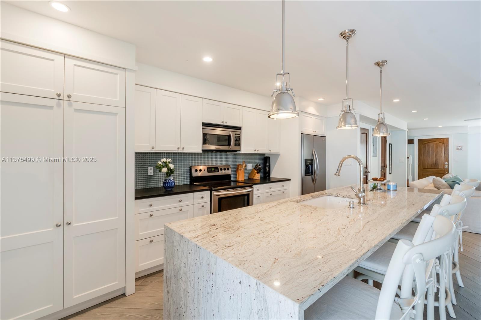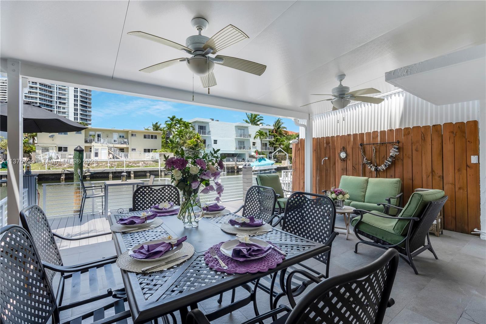 Boat Lovers!!! An amazing townhouse in the canal with a dock for boat up to 25 feet right behind the unit, with a beautiful and ample deck for entertaining, is a dream! There is open access to the ocean without fixed bridges. This townhouse is very spacious and was substantially remodeled leaving a cozy and contemporary look, with an open floor plan, 1st level with tiles on the floor, stainless steel appliances and large quartz countertop in the kitchen. There are 2 master suites in the upper level(vinyl floor), plenty of storage spaces, 2 assigned parking spaces and the location is prime. Close to the beach, restaurants, Aventura Mall, and much more. VACANT!