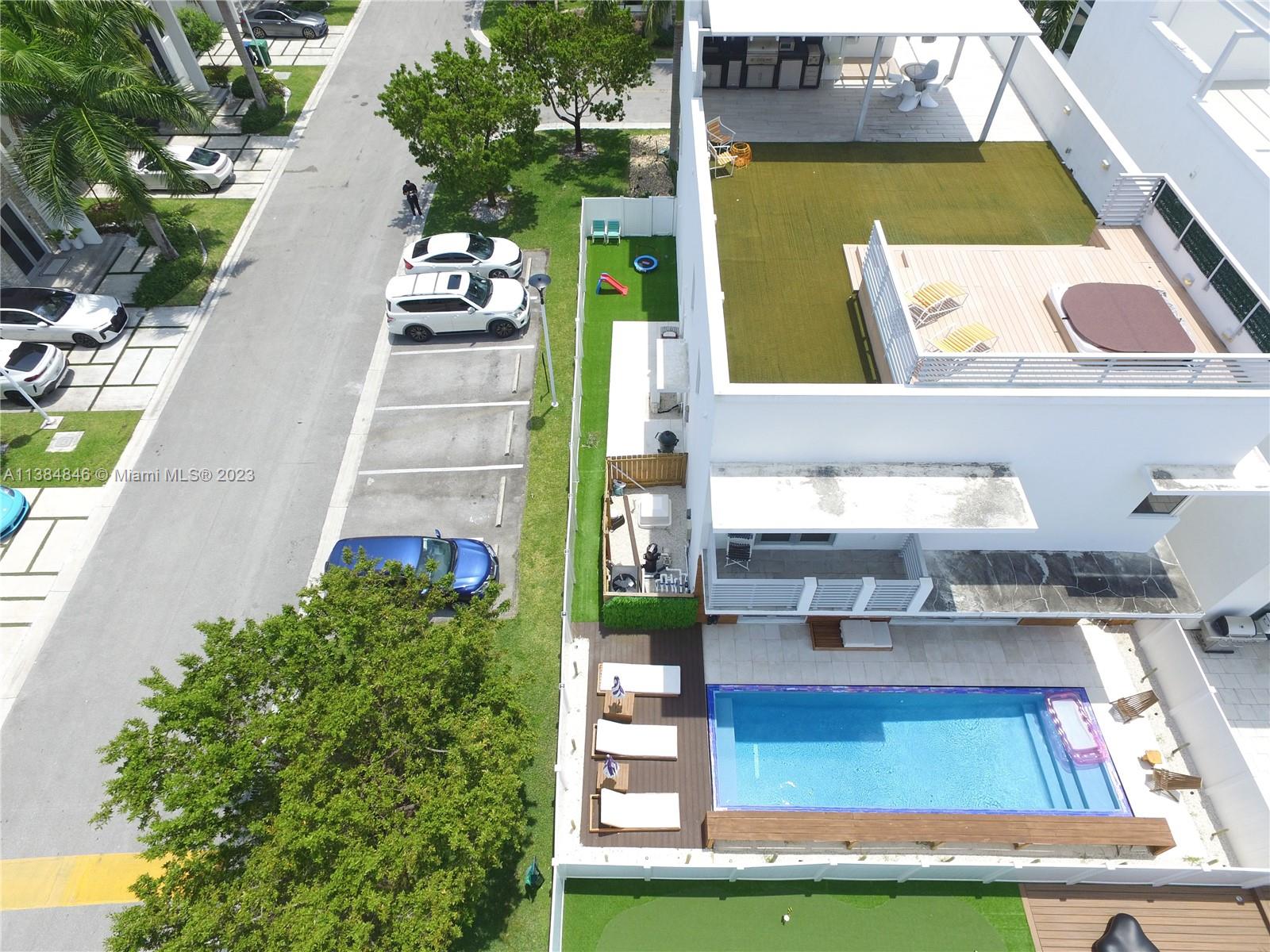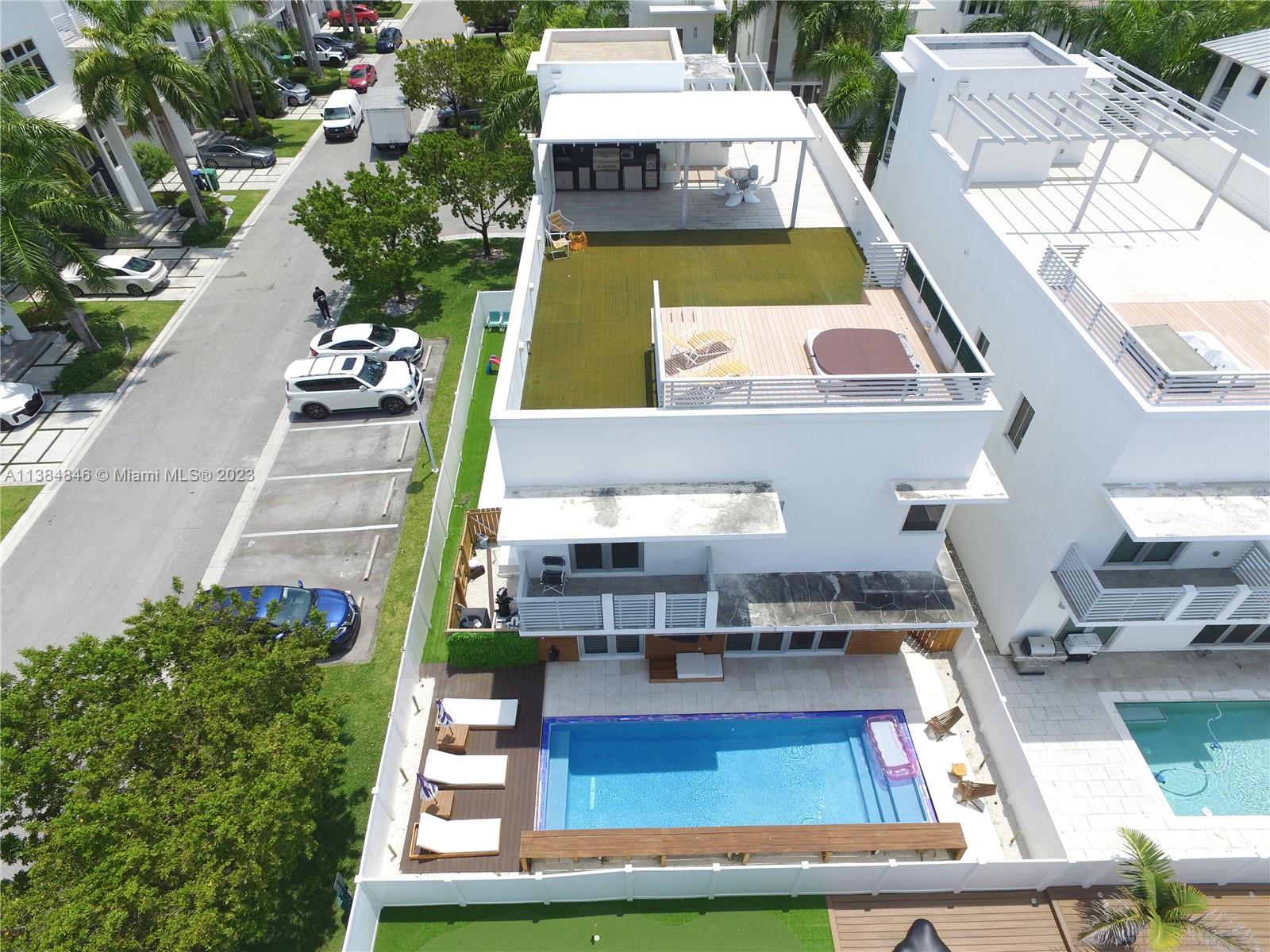 A one of a kind Must SEE : Experience this luxurious, modern home in Oasis at Doral a gated 24 hour patrolled community .Situated on a premium corner lot , featuring a private elevator , heated Jacuzzi on a rooftop terrace with full bathroom and summer kitchen .This 5 bedroom 6 bathroom house features modern Kitchen cabinetry , premium appliances , refrigerated wine cellar , two car garage and 2 car driveway equipped with EV charger . Last but not least, the amazing resort-style yard with custom 9 by 30 zero edge heated slat water pool with premiun tiling and cascades , THIS HOUSE WILL GO FAST .