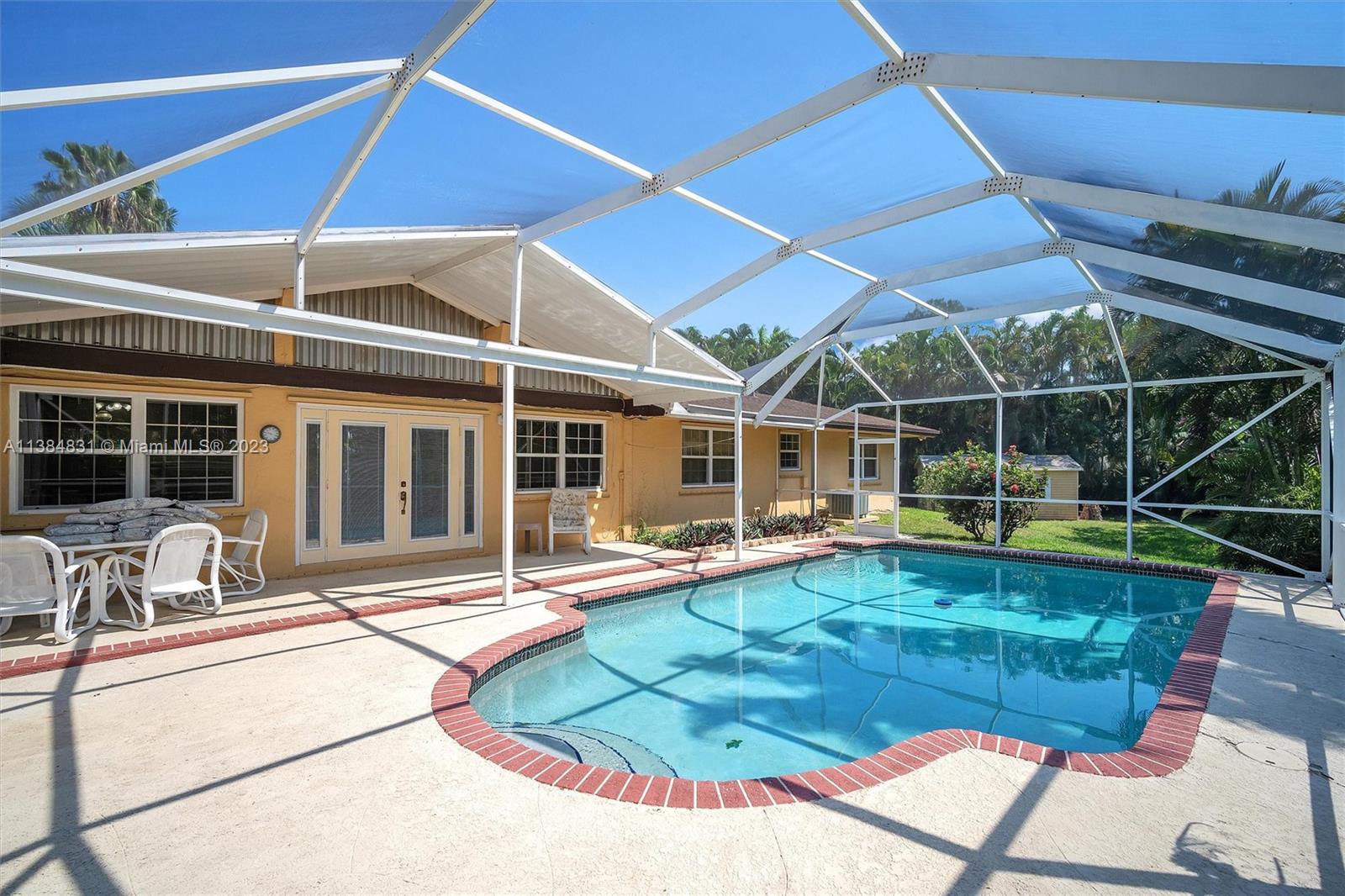 Location, Location! Great 3 Bedroom, 2 Bath Davie Pool Home that sits on a .79 acre lot. Fully fenced lushly landscaped private property with a large circular paver driveway and a one-car garage, Screened front porch and screened patio pool enclosure, tile thru-out the living space, wood floors in the dining area, wood burning fireplace and three sets of French doors, Kitchen with granite countertops, Hurricane impact garage door, Whole house hurricane shutters, Roof 2017, new water heater, pool pump 1 yr., A/C 6 months. Great schools and no HOA.