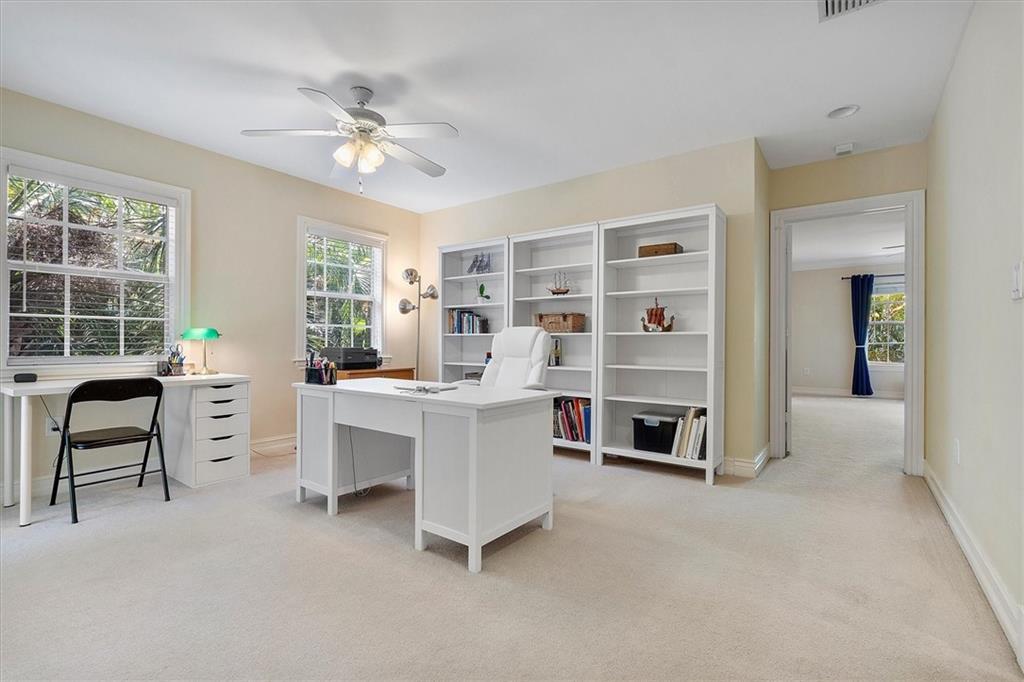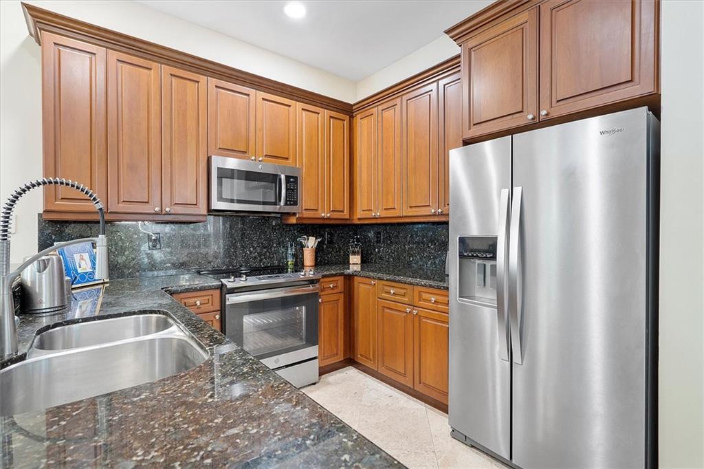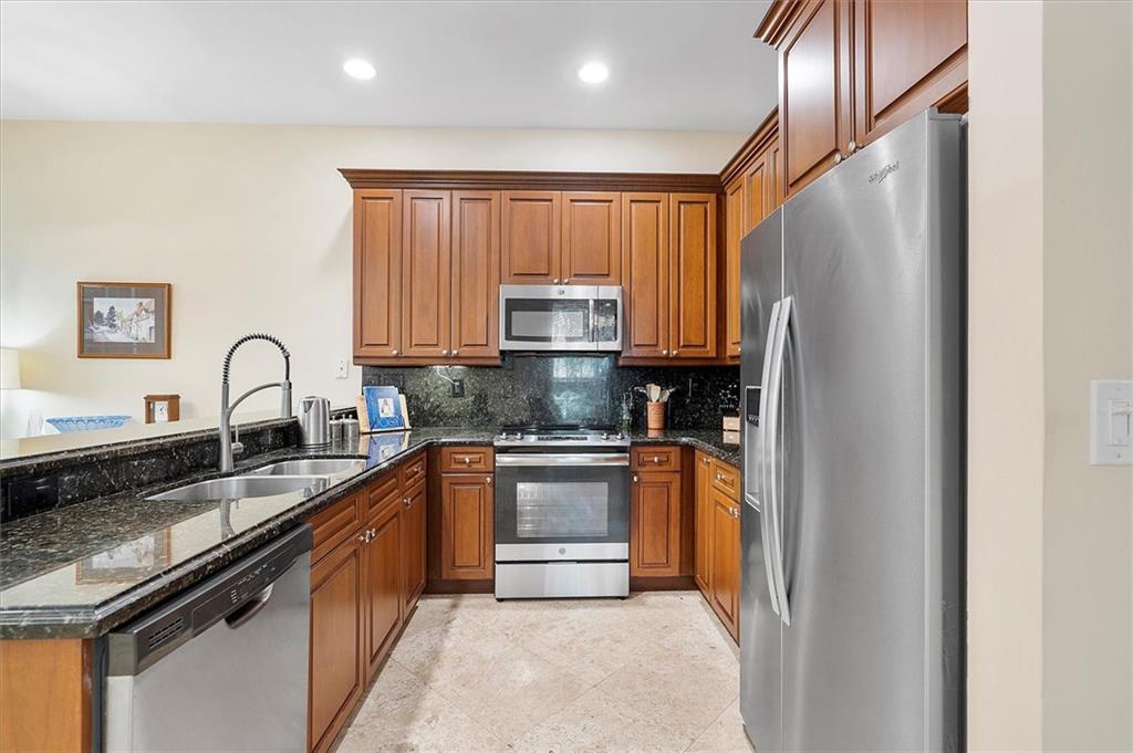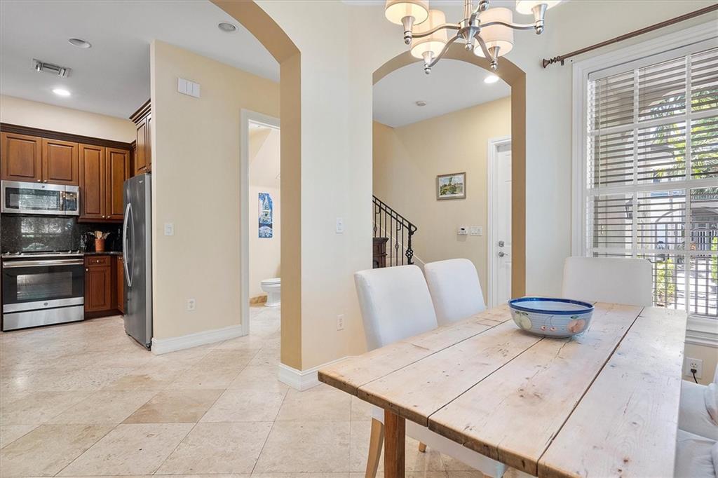 3 Bedroom 2 1/2 Bathroom End Unit in the highly sought-after Lakeridge area. This spacious move-in ready townhouse features an open floor plan, travertine floors, and a huge private courtyard. While the dining room is open to the kitchen for ease of use, it's separated from the living room which allows for formal entertaining. The kitchen offers solid wood cabinets, granite countertops, & stainless steel appliances. An extra large Primary suite with 2 walk-in closets and an ensuite awaits you upstairs where the other 2 bedrooms are. Laundry is also upstairs. This small well-maintained community offers a low HOA & is very close to the Beach, Holiday Park, Galleria Mall, Restaurants, & shops. 3rd bedroom is currently an open office loft with a Juliet balcony but, can easily convert back.