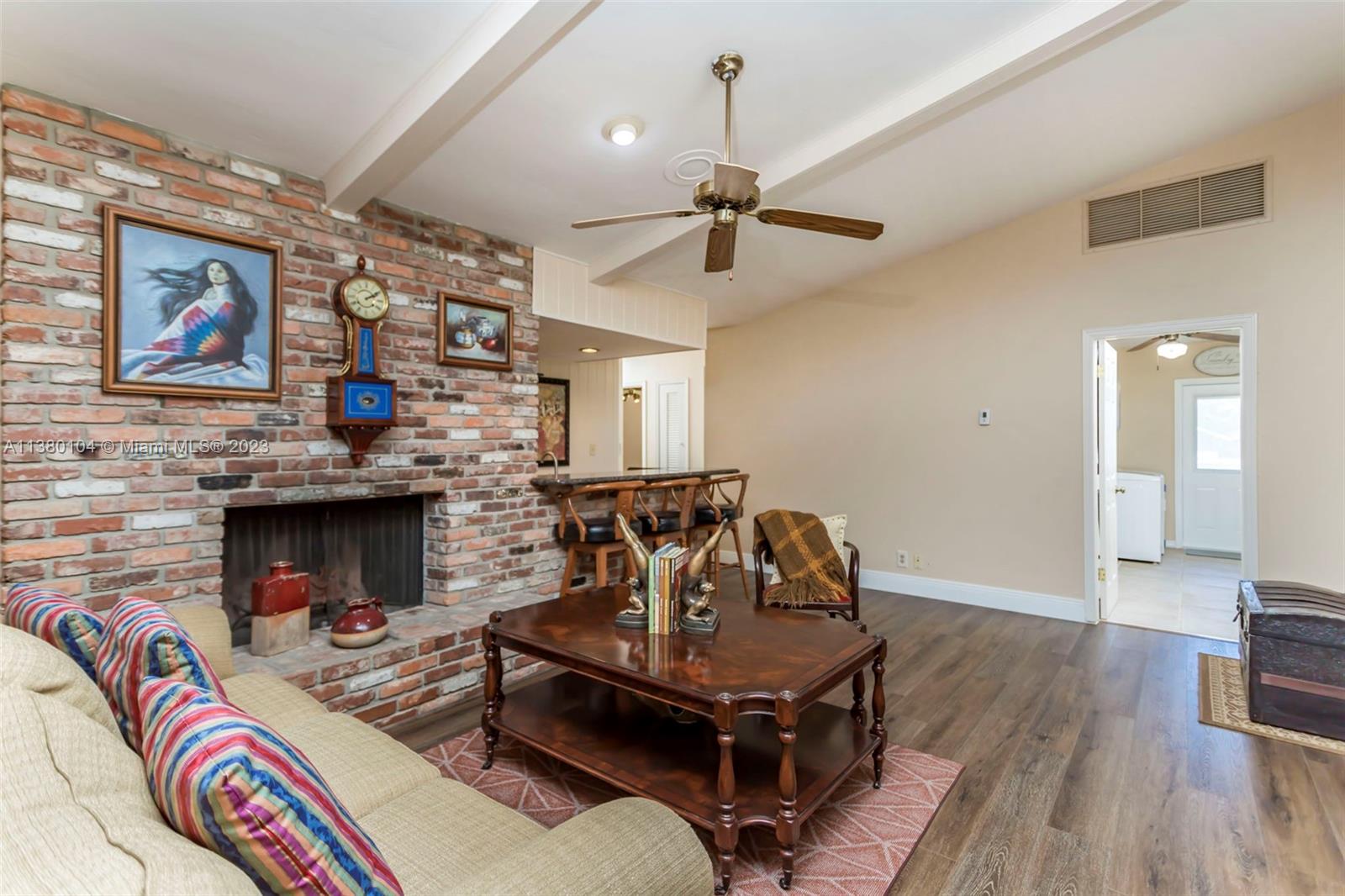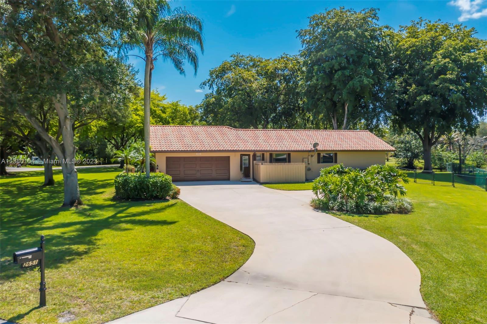 Immaculate one story home on nearly a full acre corner lot, with four bedrooms, three bathrooms, pool & lake located in Davie West! This home features HURRICANE IMPACT WINDOWS, IMPACT GARAGE DOOR & NEW UPGRADED FLOORING! The updated kitchen is complete with corian countertops, wood cabinetry & new stainless steel dishwasher, range & microwave. Family room has a beautiful fireplace and custom wet bar. This split floor plan has a private primary suite with 2 oversized walk-in closets with custom shelving and an updated bathroom. The backyard is the perfect place to relax or entertain with an oversized wrap around covered patio, screen enclosed pool, overlooking the peaceful lake with an oversized fenced in grassy yard.