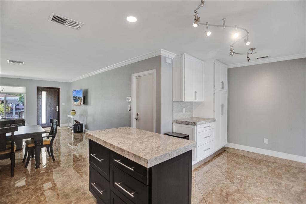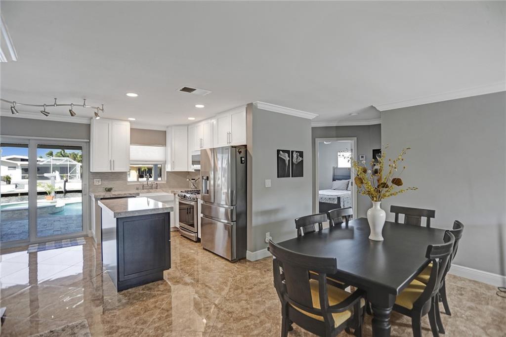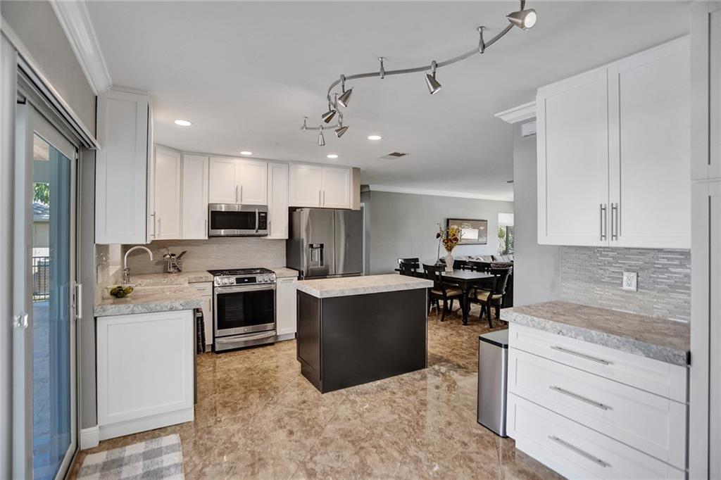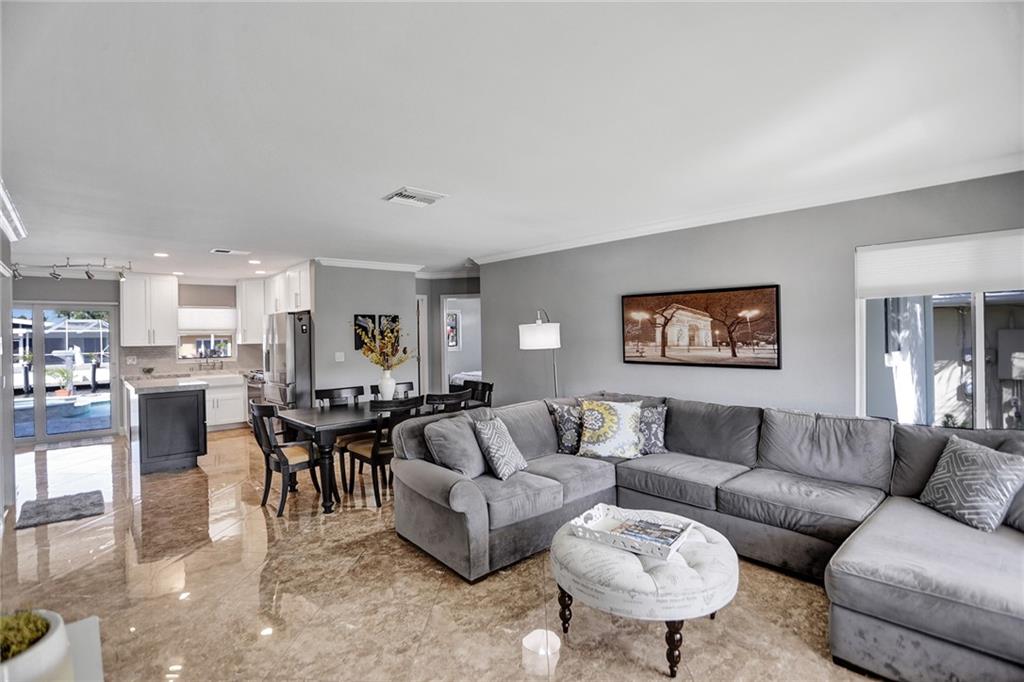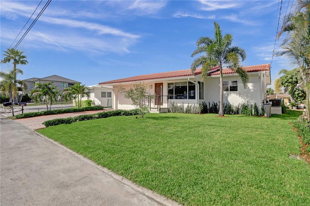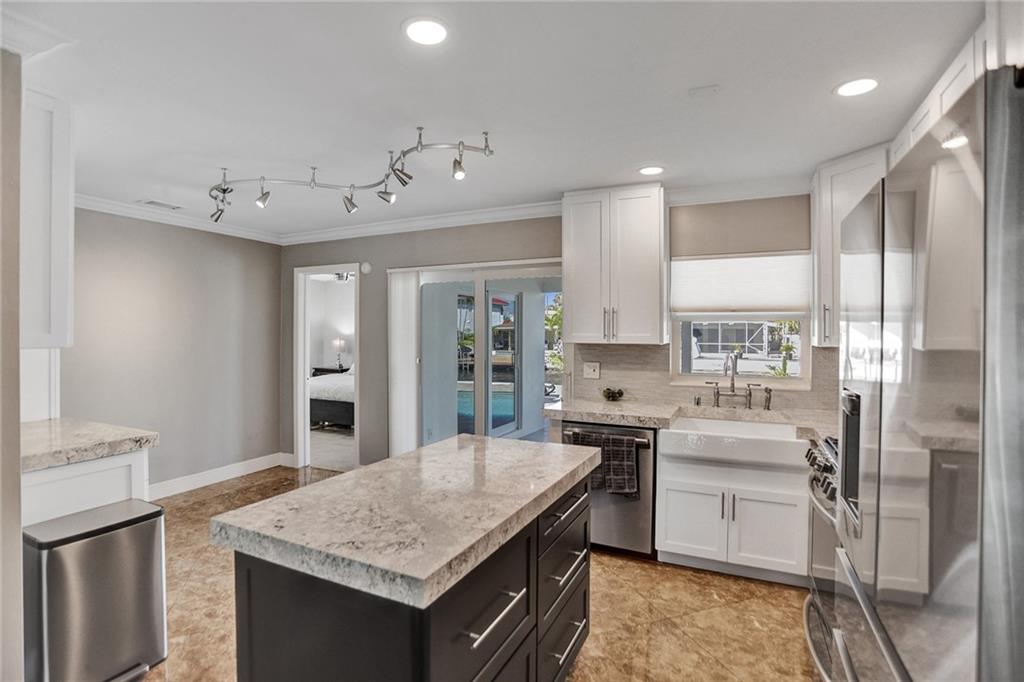 Paradise for boating enthusiasts! This fully remodeled 3-bed, 2-bath home in Pompano Isles is just 3 houses from the intracoastal, easy access to the Hillsboro inlet w/no fixed bridges. Open floor plan creates a seamless flow, Newly marble-paved and well-lit outdoor space. Unwind in new resort-style saltwater heated pool with a 6-jet spa and sun shelf, views of the deep water canal from your outdoor oasis. 60 ft seawall, 50 ft dock, and a 13,000 lb. boat lift, ensuring an ideal boating experience. With new impact windows, doors, irrigation, lighting, gas appliances include Tankless hot water heater, Dryer, Range, pool/spa, Great drainage, This home guarantees safety and efficiency. Open concept white designer kitchen showcases solid wood cabinets, 3'' countertops, and a spacious pantry.