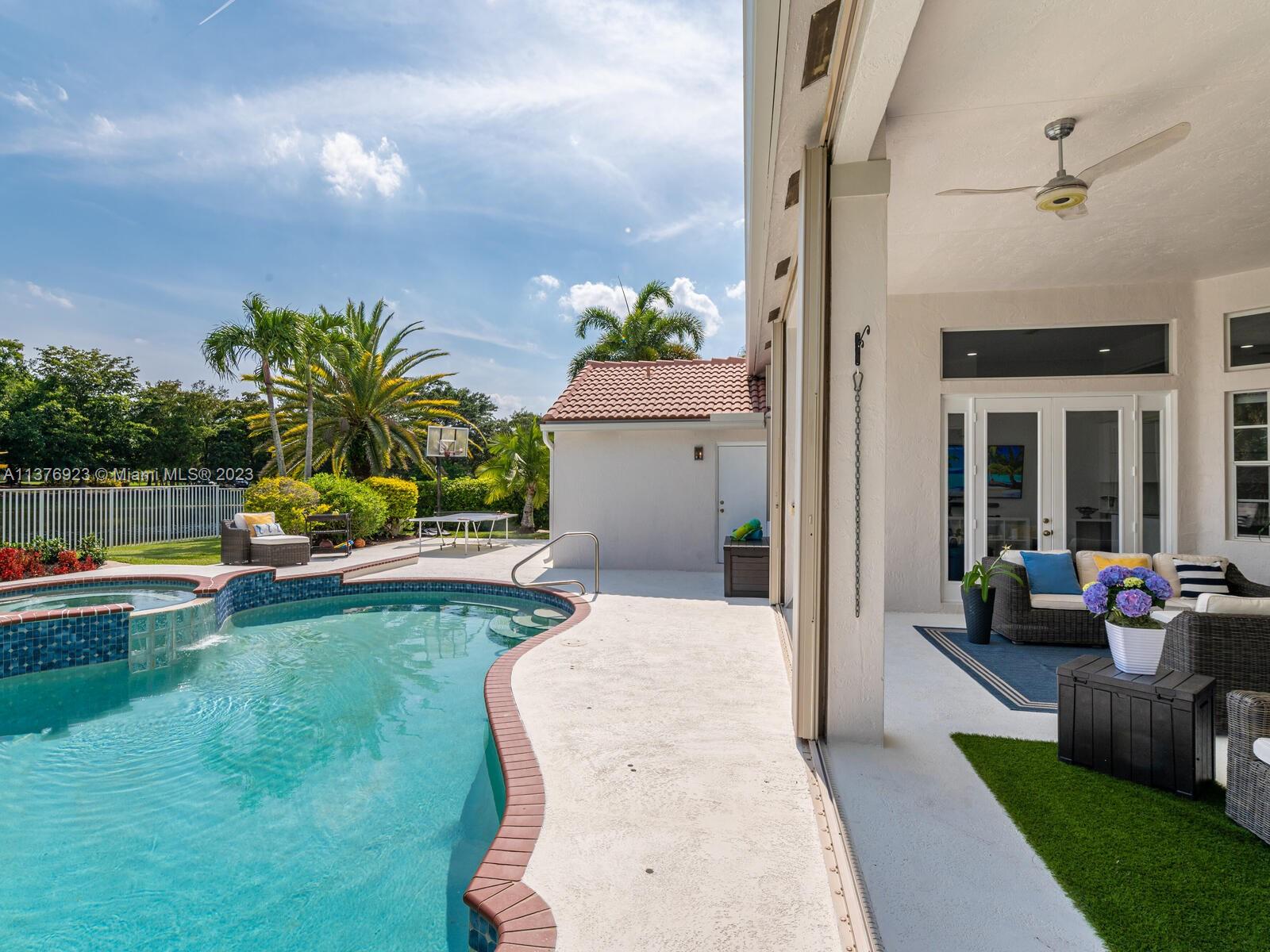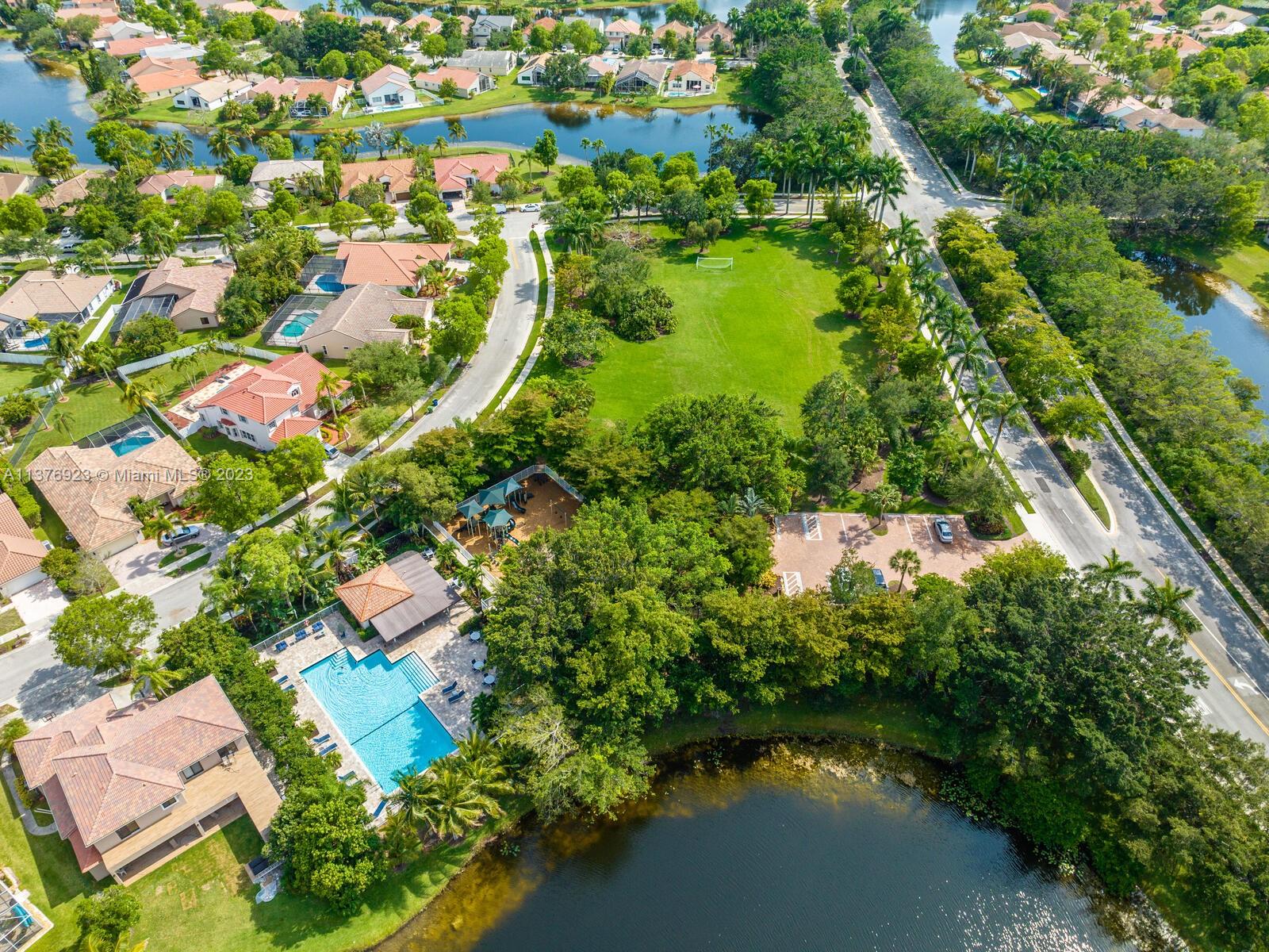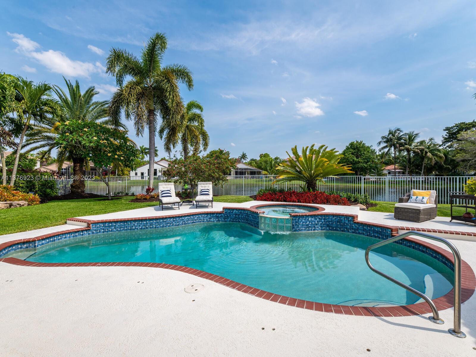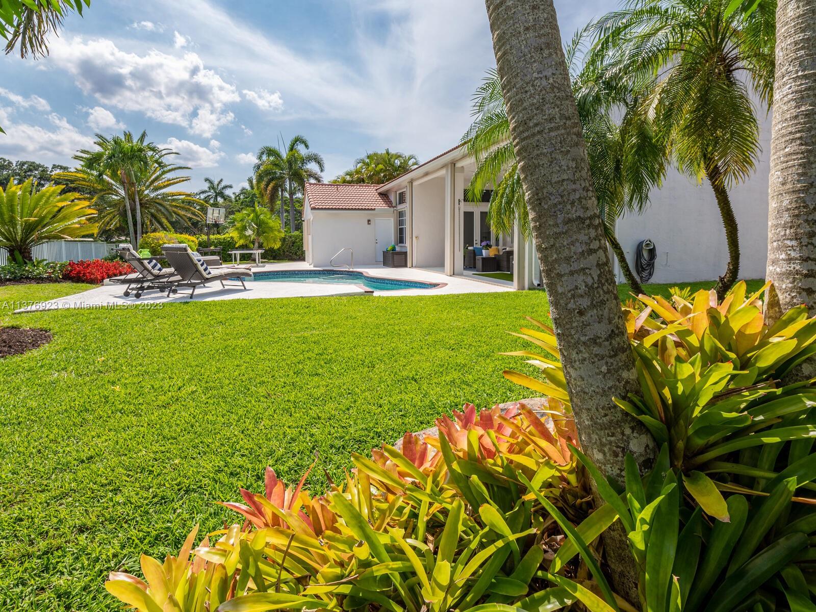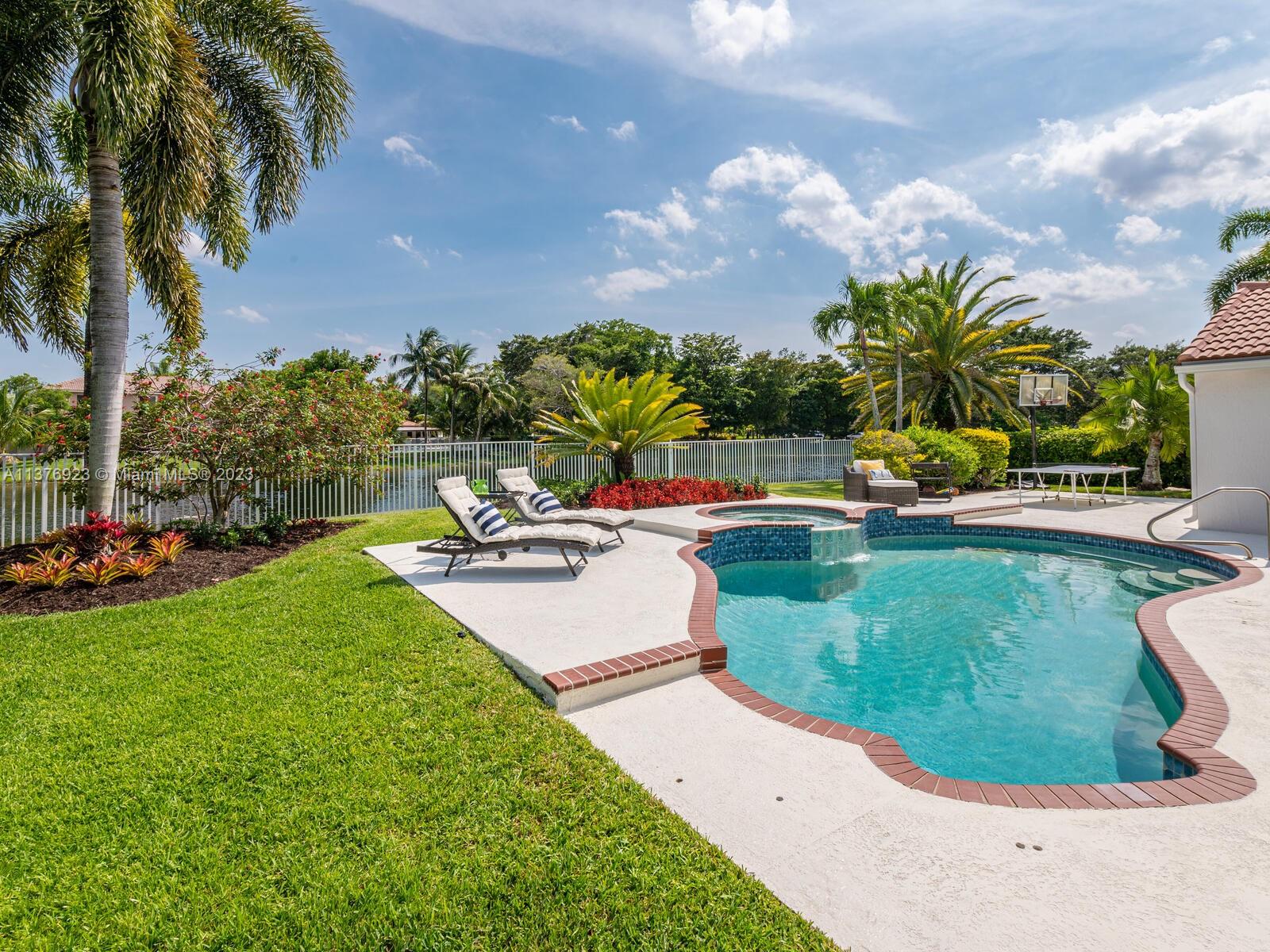 This exquisite, one-story single family home in Weston-Lakes features 4 beds, 3.5 baths, and sits on a cul-de-sac pie-shaped lot, and more than 1/3 Acre of land. This prime location offers a quiet environment, with a long driveway for up to 6 cars. Enjoy the stunning lake view, community pool, kids' playground, and soccer field across the backyard. Recently updated with new plumbing, AC, tankless water heater, kitchen, floors, bathrooms, recess lights, garage and main entrance hurricane doors, freshly painted inside-outside, and stunning landscaping. Accordion hurricane shutters and 2007 roof. Situated near A+ schools, parks, shopping centers and more. Airport and beach only 20-30 min away. Don't miss your chance to own this spectacular home in Weston's most desirable community!