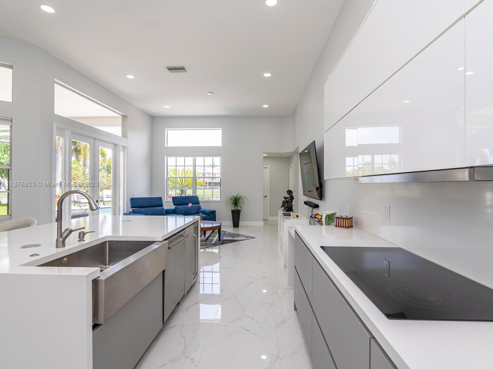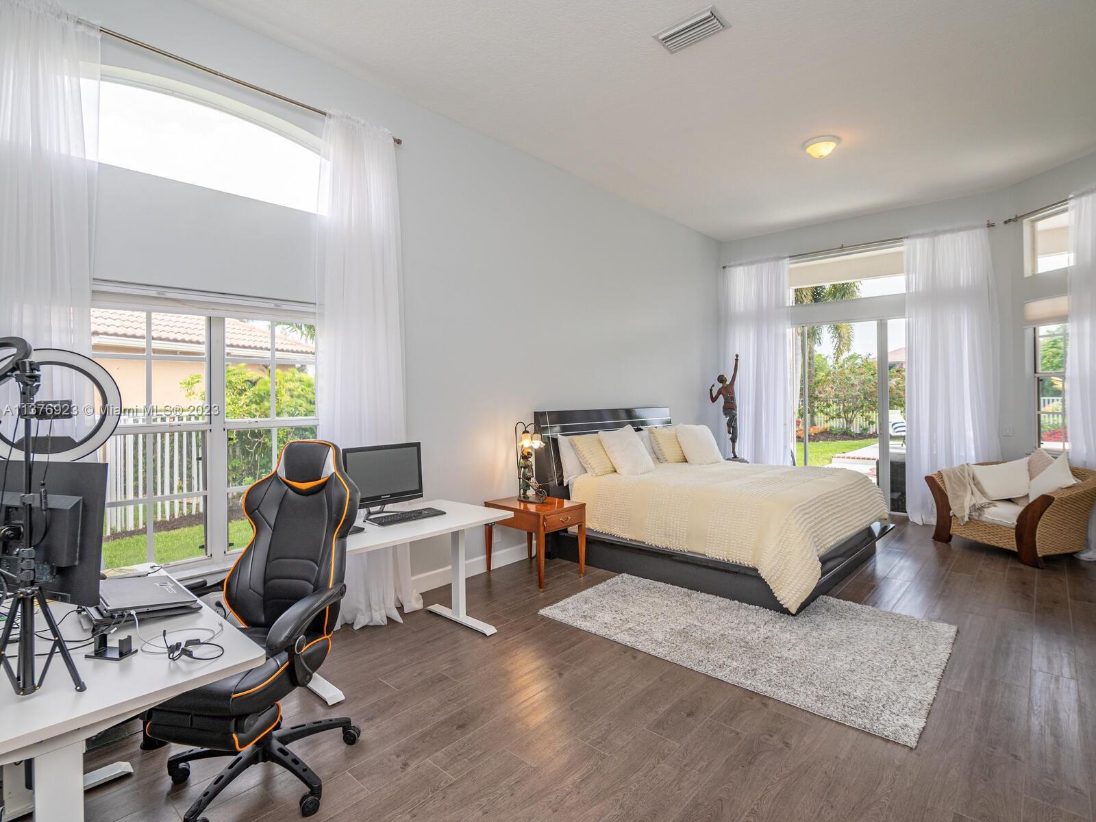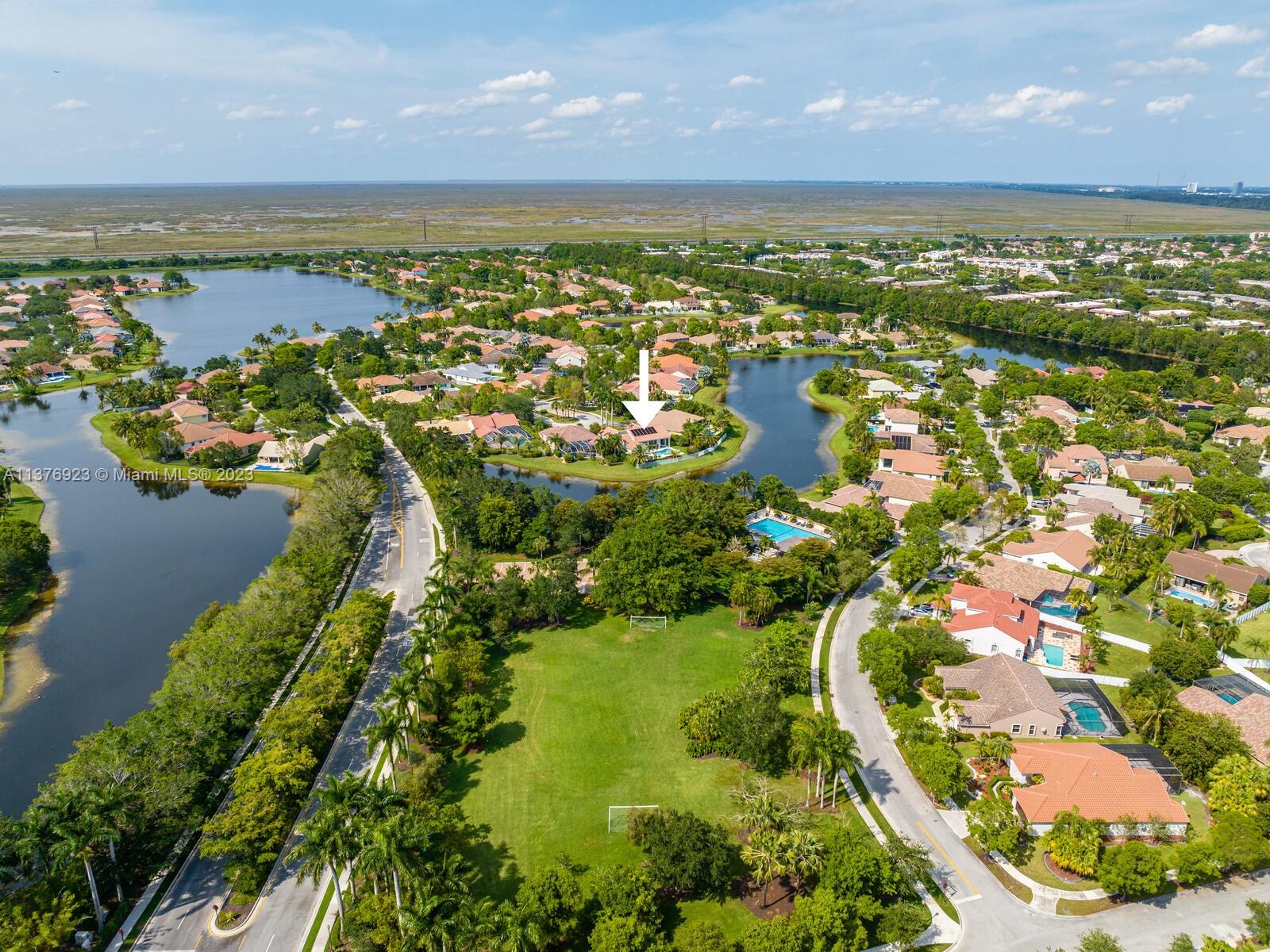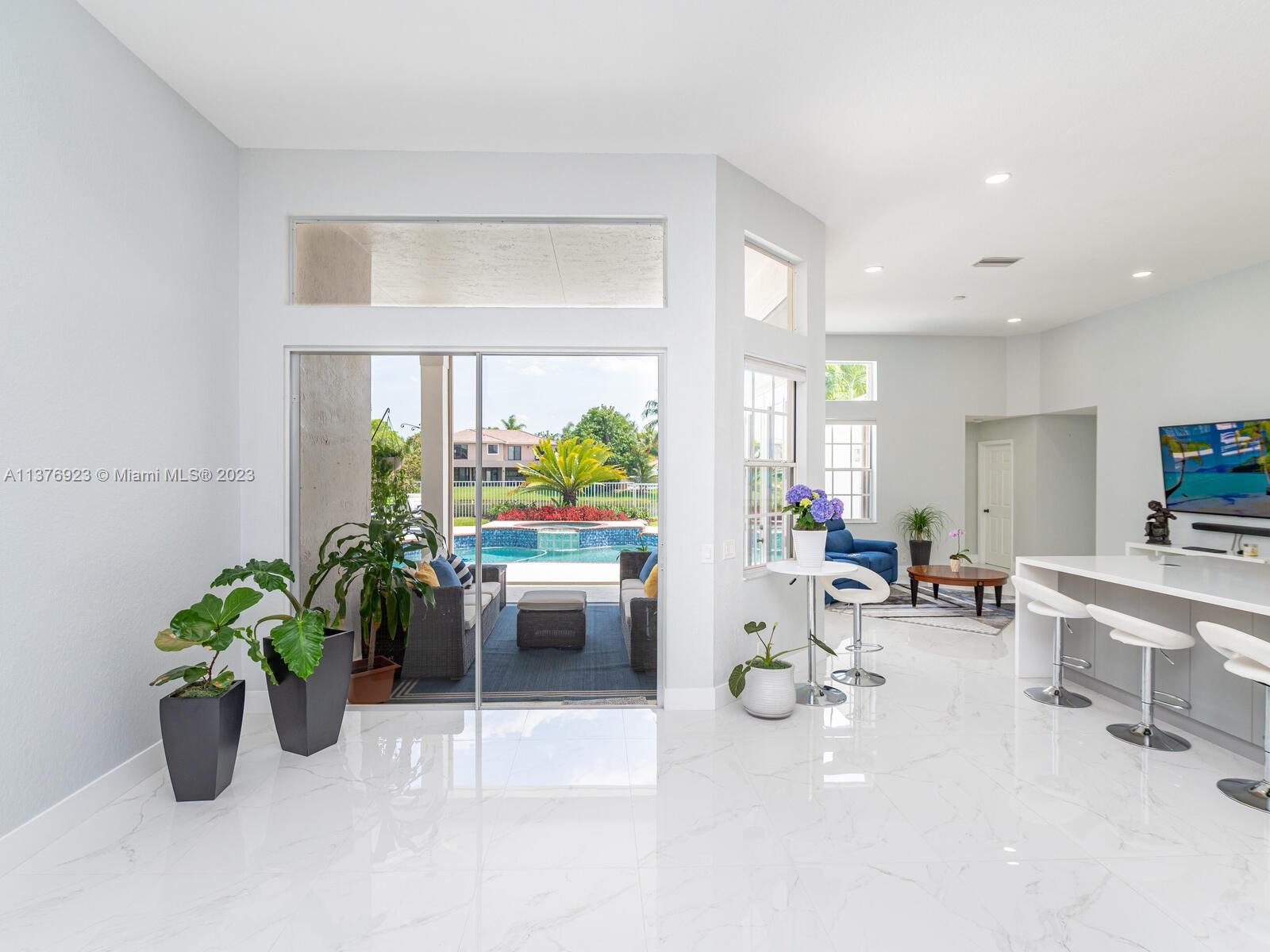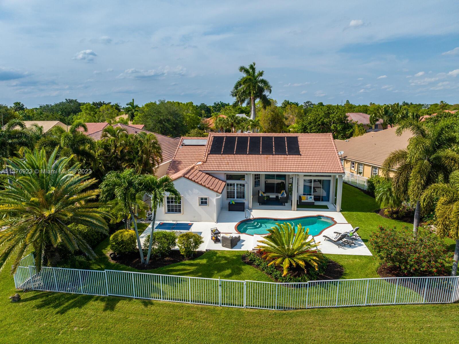 This exquisite, one-story single family home in Weston-Lakes features 4 beds, 3.5 baths, and sits on a cul-de-sac pie-shaped lot, and more than 1/3 Acre of land. This prime location offers a quiet environment, with a long driveway for up to 6 cars. Enjoy the stunning lake view, community pool, kids' playground, and soccer field across the backyard. Recently updated with new plumbing, AC, tankless water heater, kitchen, floors, bathrooms, recess lights, garage and main entrance hurricane doors, freshly painted inside-outside, and stunning landscaping. Accordion hurricane shutters and 2007 roof. Situated near A+ schools, parks, shopping centers and more. Airport and beach only 20-30 min away. Don't miss your chance to own this spectacular home in Weston's most desirable community!