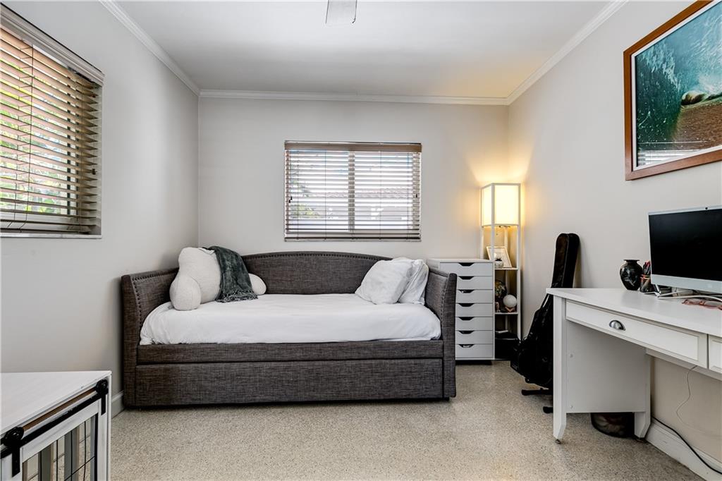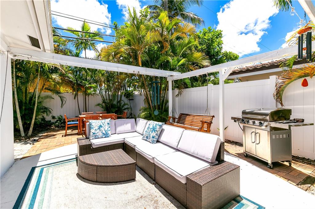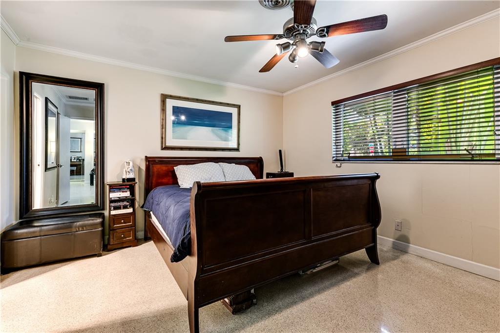 Move-in Ready 3 bed/ 2 bath home in Coral Ridge Isles. This charming home greets you with classic terrazzo floors that continue throughout the house. Beautiful kitchen updated in 2022 with quartz counters, large island with under-mount sink, stainless appliances and even a wine fridge. The split floor plan gives privacy while the open living area makes the home great for entertaining. Covered patio is perfect for the outdoor living we enjoy yearlong in South Florida. Large 1.5 car tandem garage with plenty of storage. Yard is fully enclosed with new PVC fence and room for boat storage. Impact windows and doors throughout and new roof in 2016! Great location right by Pine Crest School. Easy access to major highways and just minutes to the beach!