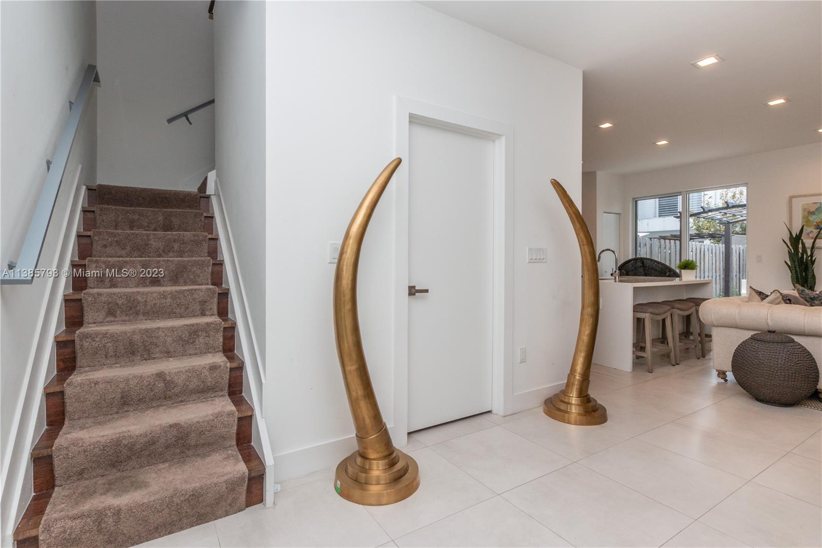 Exclusive corner Unit. **One of only 5 units with this layout**. Boutique complex home to just 142 residences. Open concept floor plan communicates kitchen, living, dining and half bathroom while offering a private room with complete bathroom in first floor. Second floor hosts 3 bedrooms and 2 bathrooms with wood flooring. Primary suite features: two walk-in closets, spacious bathroom with dual vanity and separate bathtub-shower. Enjoy custom finishes throughout, high ceilings and abundant natural light. Amenities includes fitness center, pool and social areas. Doral neighborhood is home to public and private schools rated A, restaurants, shops and more. Close to Miami International Airport