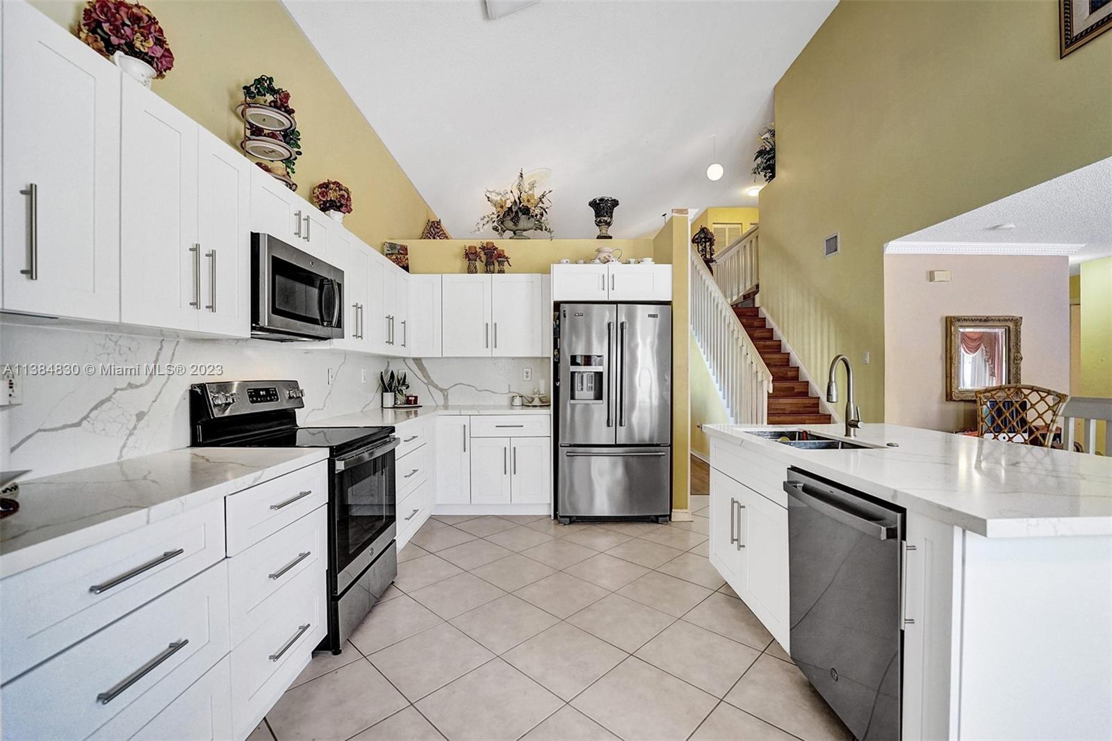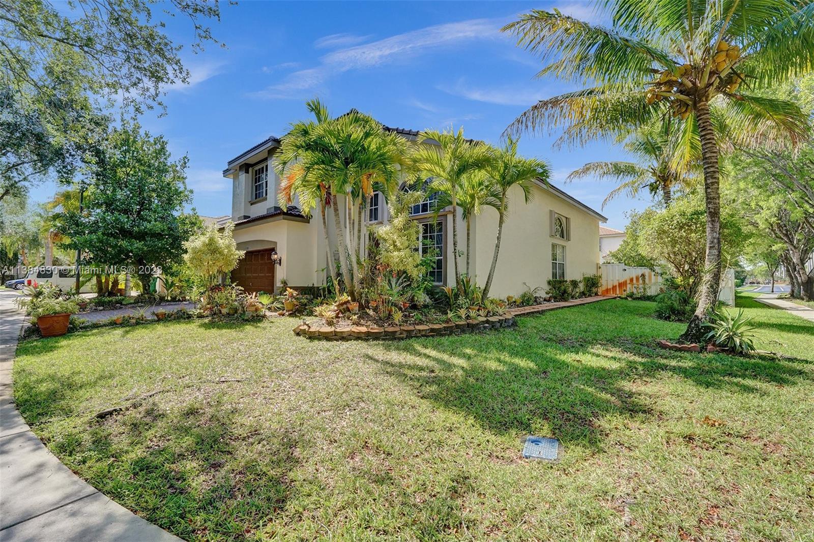 Spacious, bright, beautiful 2 story, high ceiling 4B/4b home ready for new family! Brand new kitchen with quartz countertops island. One full bedroom/bathroom downstairs. Master Bedroom Suite offers sitting area, 2 complete Master Bathrooms with separate soaking tub, dual door shower, and walk in closets. Spacious family room, separate laundry room. Two car garage. Panels on the 1st floor and accordion shutters on the 2nd Floor. Fenced backyard with fruit trees. Gated community with security, amenities include, 2 pools, tennis courts, basketball court, gym, playground, and much more! Close to Schools, Shopping, Dining and Highways! Price to sell! Easy to show.