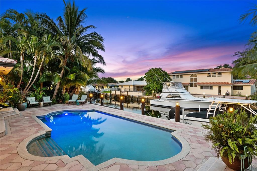 Calling all anglers and boating enthusiasts! 1012 NE 26th Ave is new to the market, offering 80' of unrestricted ocean access and no fixed bridges—only a short idle to the Lighthouse boat inlet, marinas, and eateries nearby. After a fun day on the water, splash into the oversized heated pool with built-in seating ledges for ultimate relaxation. The backyard faces east which is the preferred exposure for most. Inside features Brazilian teak wood floors, generous guest rooms, an updated kitchen, a dreamy primary suite with a newly renovated spa-like bath, and a proper walk-in closet. Impact doors and large windows allow in tons of natural light. Store the cars and gear in the oversized two-car garage when the day ends. NO HOA or restrictions! See it today before this one gets hooked.