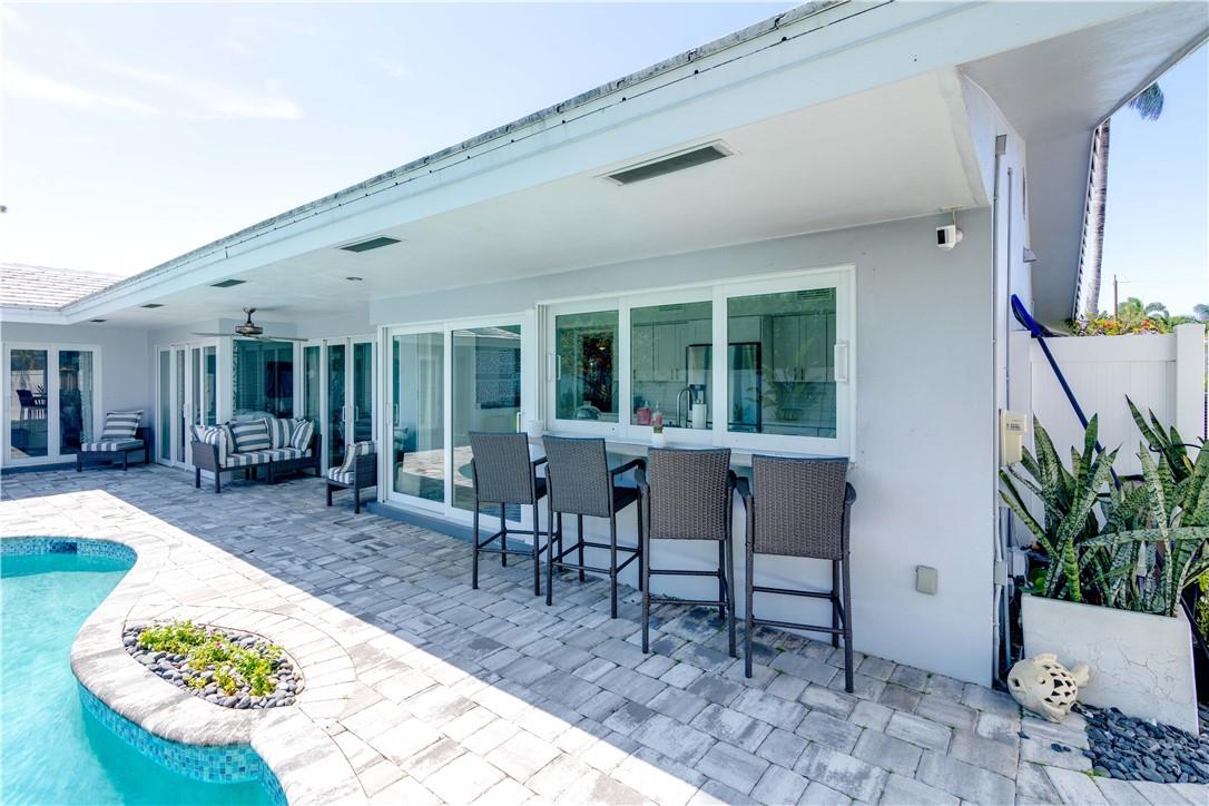 Come explore this elegantly remodeled home located in the beautiful Imperial Point neighborhood. This home, nestled in a lush tropical oasis, features an expansive open floor plan. The living space is ideal for entertaining, and the glass doors allow for lots of natural light to fill the room. The kitchen merges sophistication and comfort with stainless appliances, solid surface counter tops and white cabinetry. Enjoy a seamless transition of indoor & outdoor living from the kitchen and living space to your covered patio, pool and back yard. The elegant floors flow throughout the home providing continuity from room to room. Other compelling details include, high impact windows, large laundry room, custom walk-in closet cabinetry, high hat lighting.