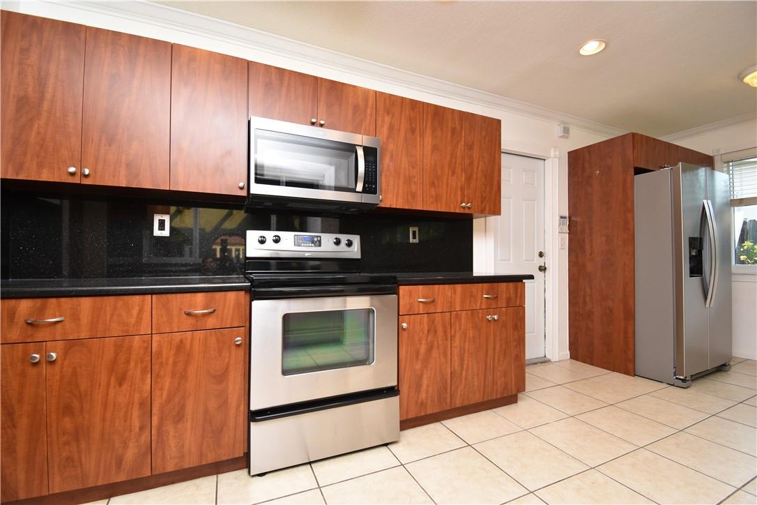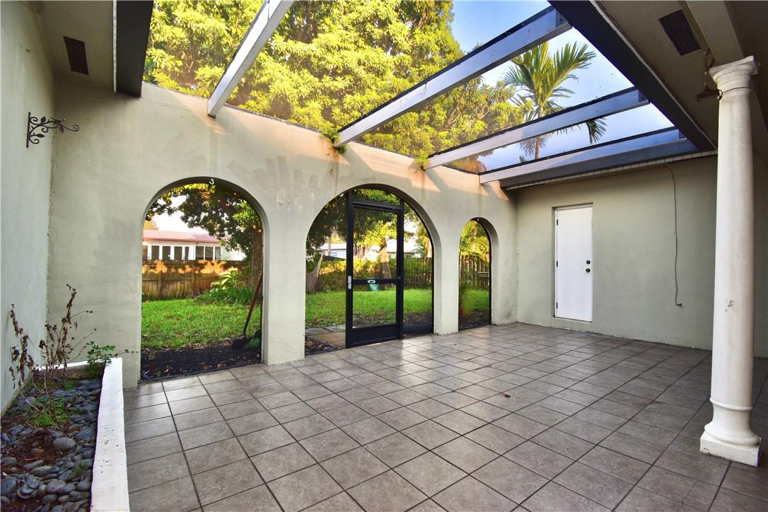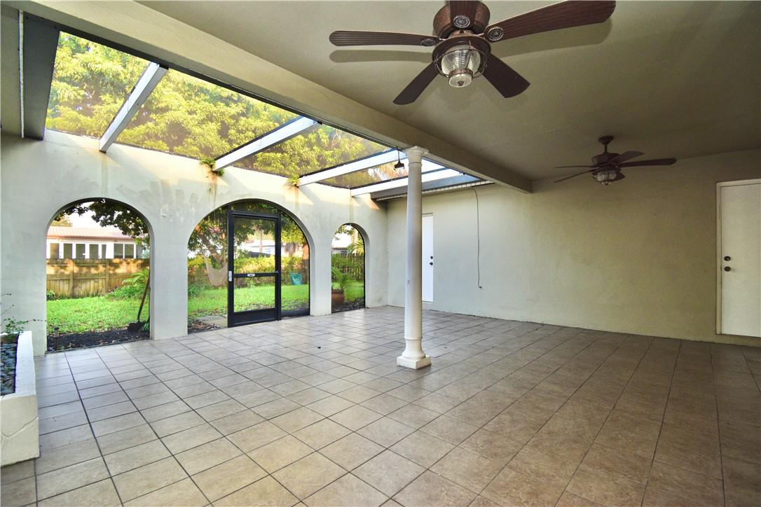 Lovely 3 br 2 bath home with a 2 car garage in the heart of Hollywood Hills. This home boasts impact windows, an upgraded kitchen and breakfast bar with granite and stainless steel appliances, brand new frig and tile floors in the living area. There are french doors to a large screened in patio leading to a serene, shaded, big back yard. Newer A/C. In addition to the 2 car garage is a spacious circular driveway that fits 4 cars. Close to major highways, shops and places of worship.