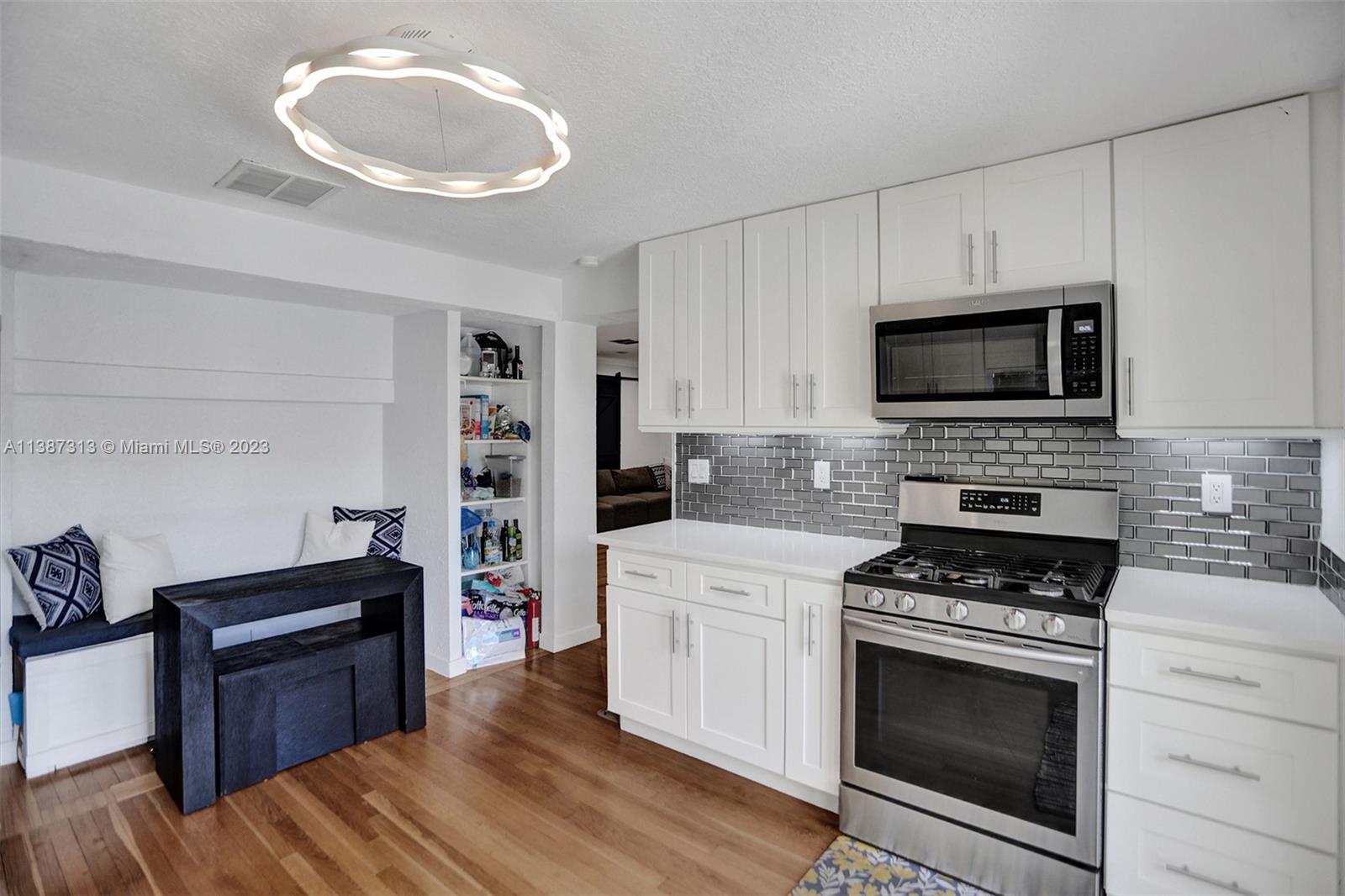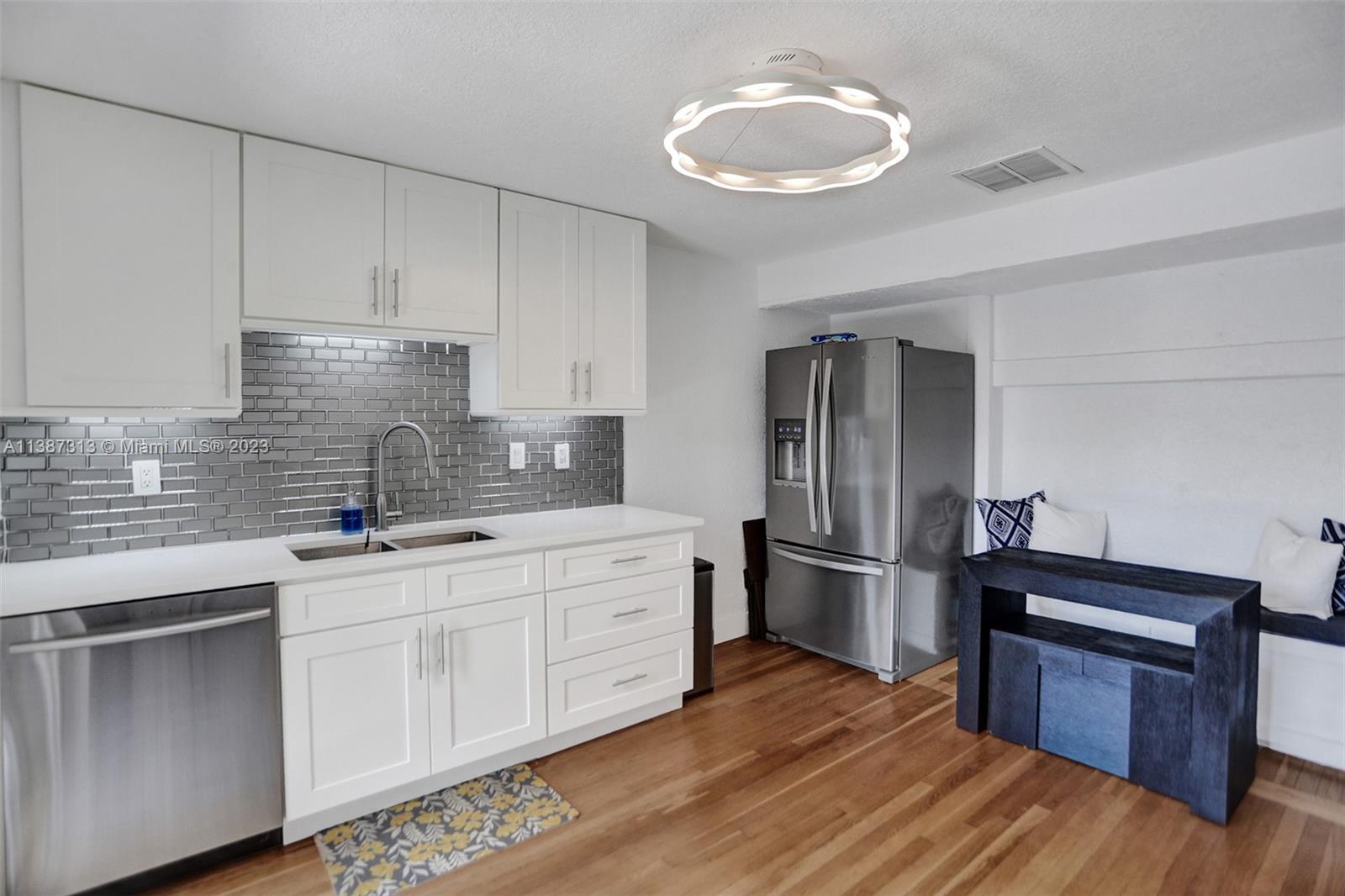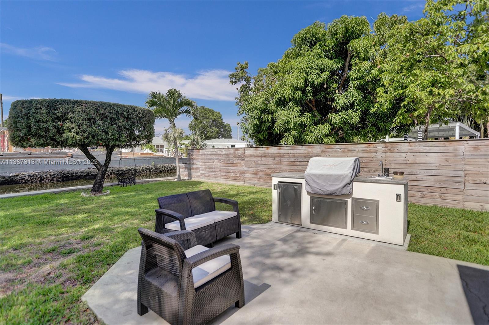 79' waterfront on Tarpon River! Beautifully updated 2 bedrooms 1 1/2 w/office/den single family home in sought after Croissant Park River! There is only 1 fixed bridge. The foyer & office/den are tiled. Real wood floors throughout the main living area, kitchen & bedrooms. Large living/dining area with gas burning fire place. Kitchen has been updated w/white shaker cabinets, white quartz countertops ,gray glass subway tiles, stainless steel appliances, gas range & eat in area. Nice size bedrooms w/walk in closets. Updated main bathroom w/spa feel. Updated 1/2 bath! Covered patio w/Chicago brick tiles. Outdoor kitchen! Firepit! Dock redone in 2016! Seawall redone 2018! Reinforced foundation 2020! New washer, dryer, gas water heater & microwave! Hurricane impact doors & windows! 1 car garage