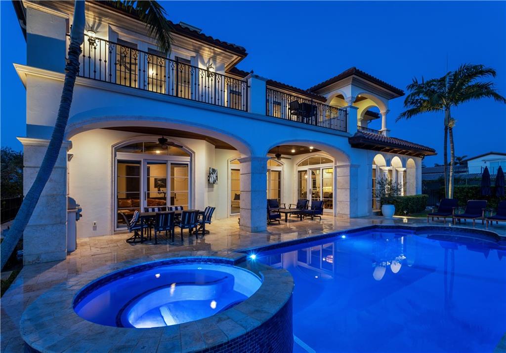 Spectacular Deepwater Estate on 80’+/- of waterfrontage only 2 lots off the intracoastal waterway. Timeless architecture reveals 5 bedrooms which include the waterfront den, 4.1 baths and 6,040+/- Total SqFt. Created in 2012 with remarkable detailing and craftsmanship throughout, this estate features an array of amenities including light-filled interiors, impressive two-story foyer, formal living room w/fireplace, & gourmet chef’s kitchen with onyx & Caesarstone countertops. Impressive 2nd level primary suite w/waterfront balcony, spa-like bath and walk in closets. Outdoor entertainment is enjoyed in the large covered loggia with summer kitchen. Resort-style pool with spill over spa & additional yard space for pets. 70' yacht dock with 16,000lbs+/- boat lift minutes to the Hillsboro Inlet