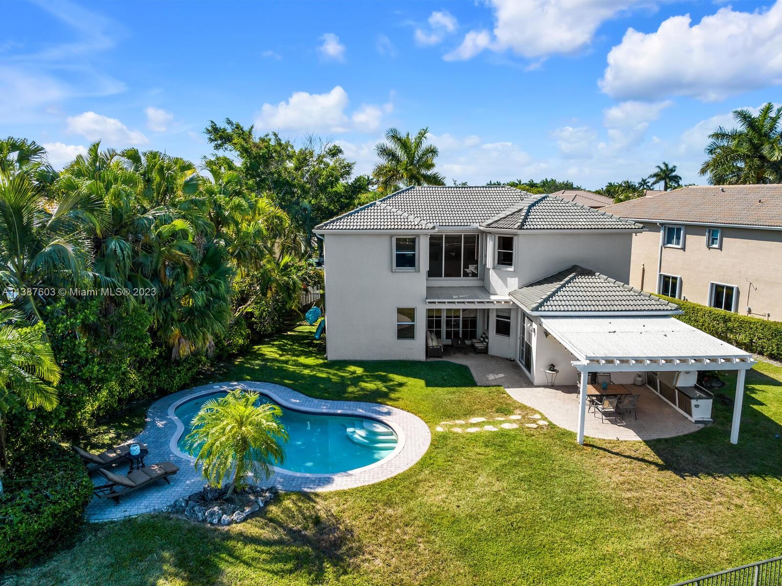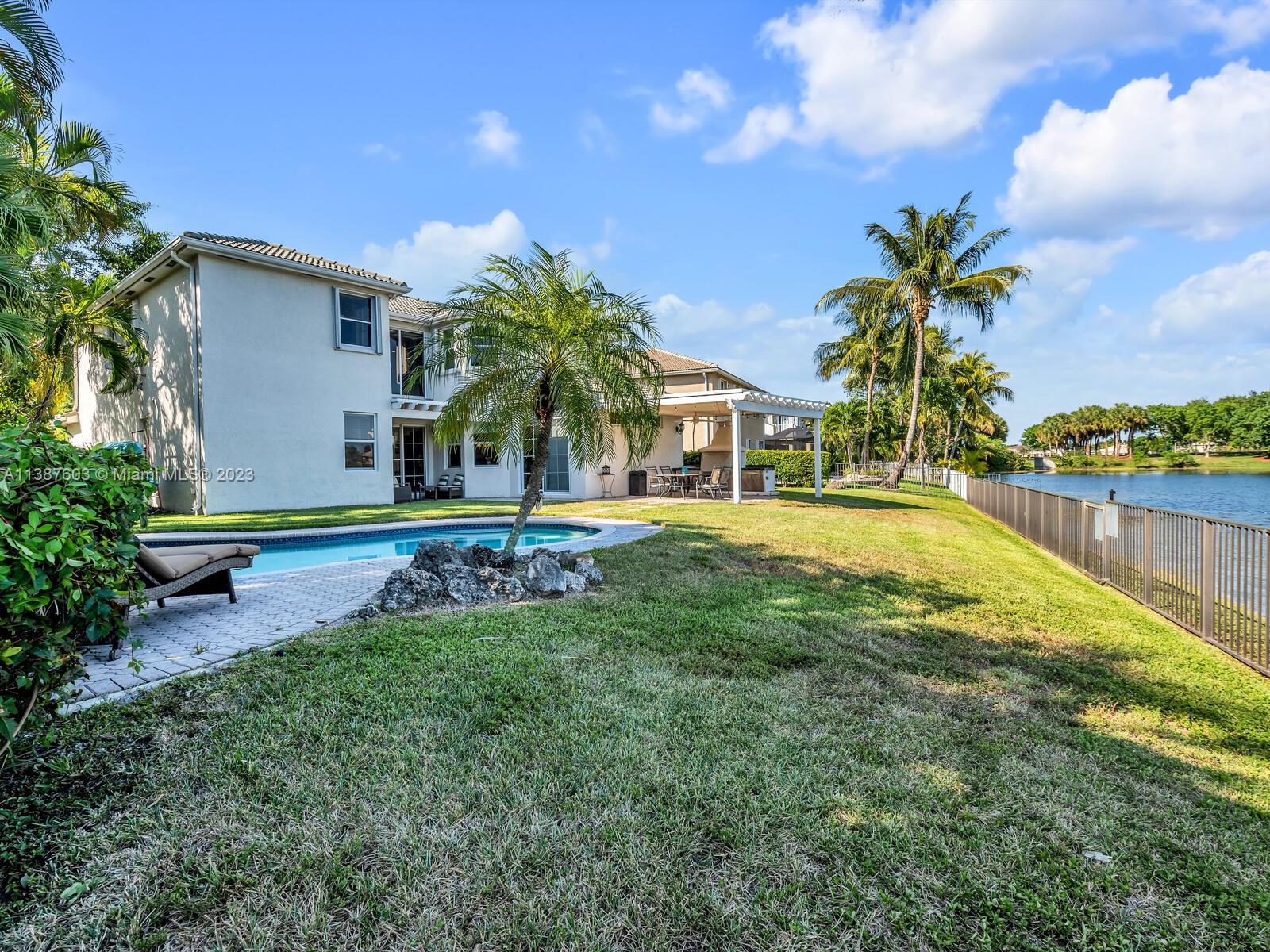 Amazing backyard with Pool and lake “No Neighbors” in the back of the house, this place is perfect for a large family who loves the outdoors and recreational activities, it has a pergola and a built- in grill. The five bedrooms, three and a half bathrooms, with a master bedroom downstairs makes it a very comfortable and convenient house. Impact windows downstairs. Gated community, great schools, close to many shopping centers, don’t miss visiting!!!