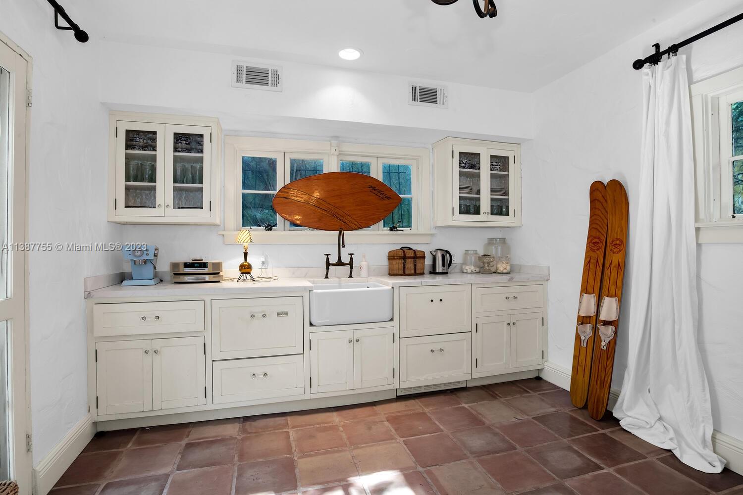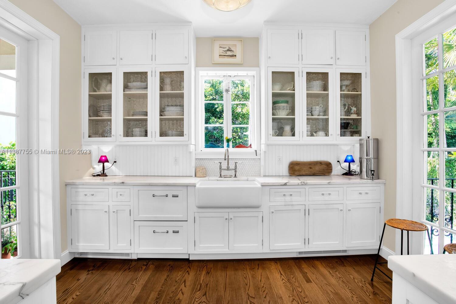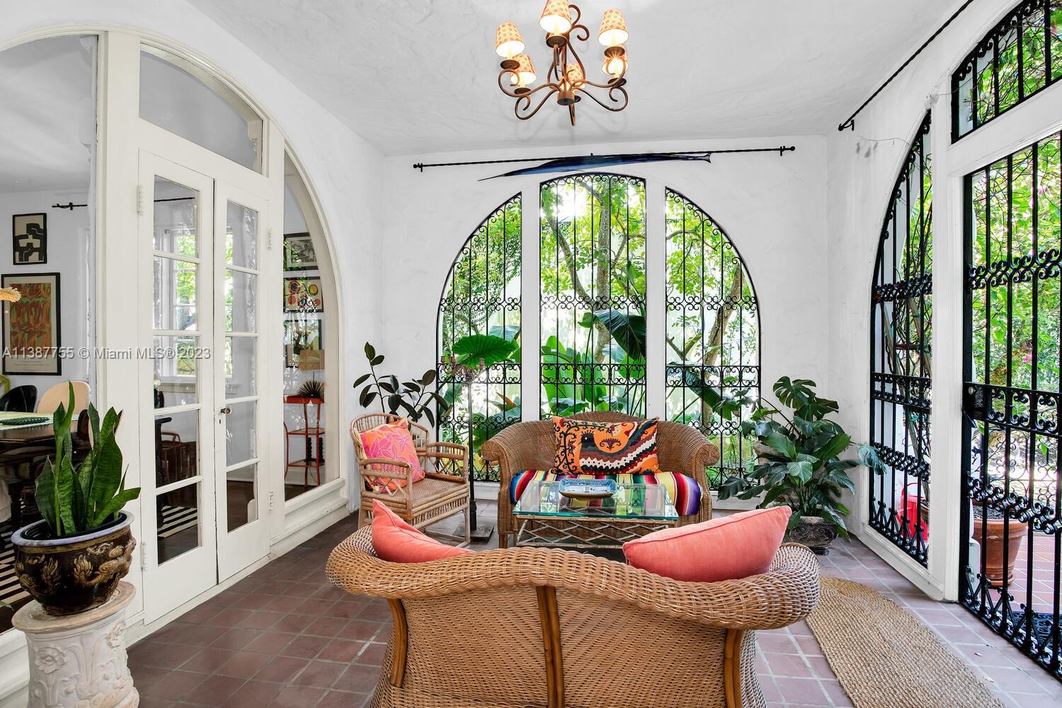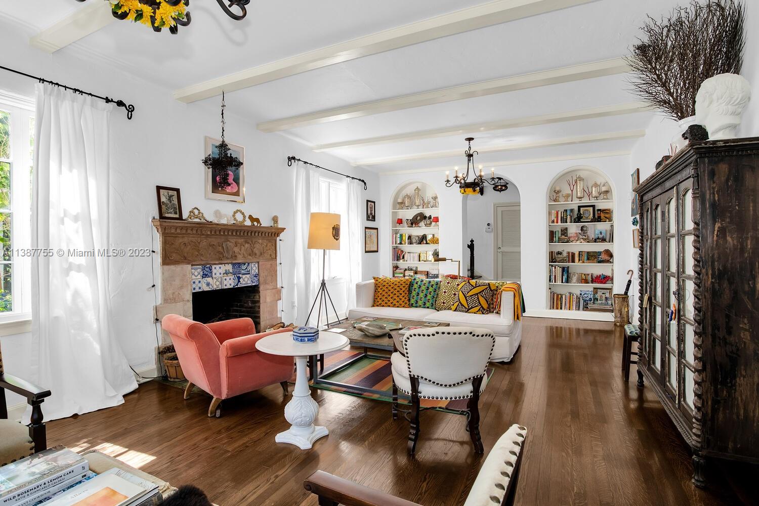 Captivating home on one of the most coveted streets in lush, tree-canopied South Coconut Grove. Walk to the Grove village center’s galleries, boutiques, cafes & bayfront parks & marinas. Light-filled interior spaces with classic architectural details including original wood flooring, 3 fireplaces & volume ceilings. Updated, high-end kitchen features statuary marble countertops, top-of-the-line appliances & separate butler’s pantry. Main house has 3BR’s/2.5BA’s - formal living & dining room + 2 inviting porches for year-round outdoor enjoyment. Two-story guest house offers living area w/mini-kitchen (ideal for poolside entertaining) + 1BR/1BA & cozy enclosed porch. The home is surrounded by an idyllic tropical garden w/vine covered walls, coral rock terraces, native palms & tranquil pool.